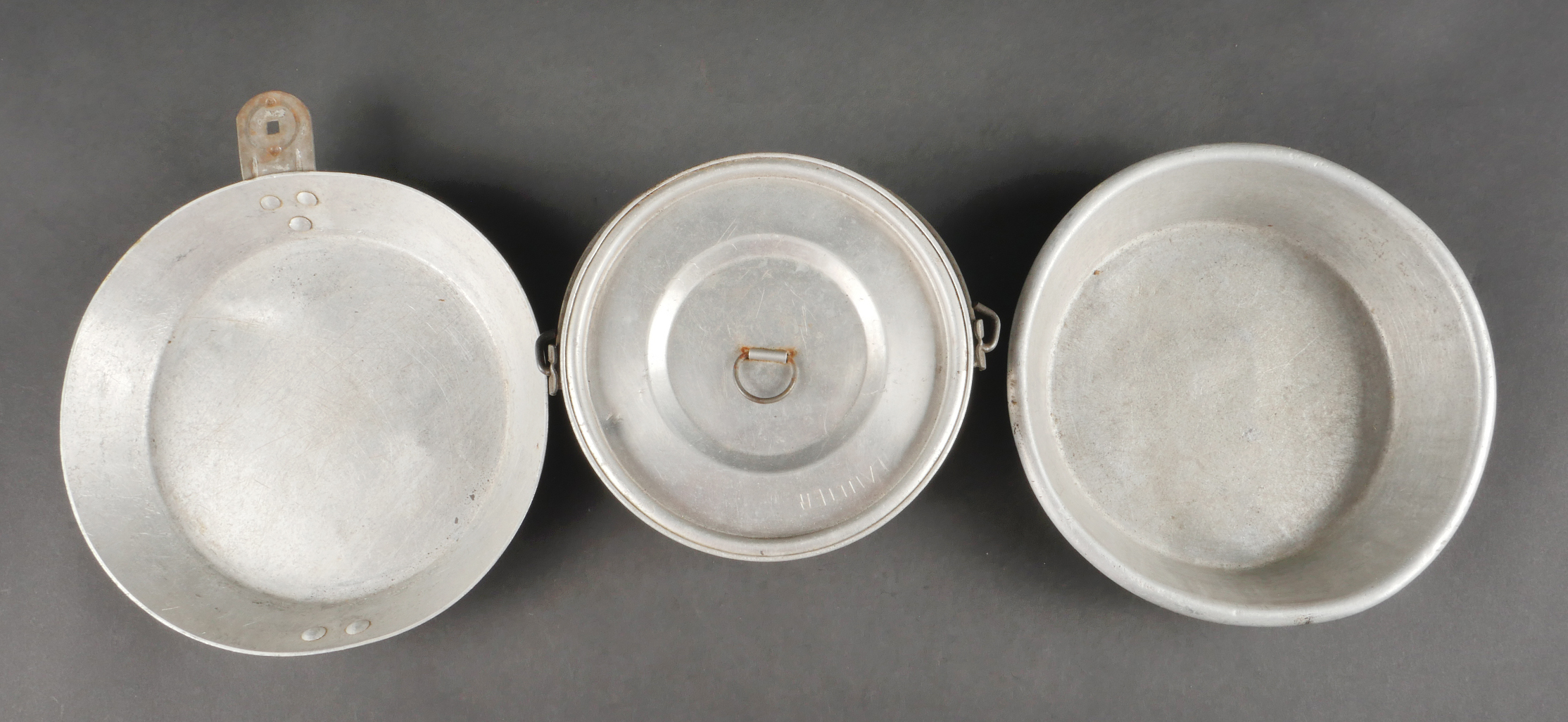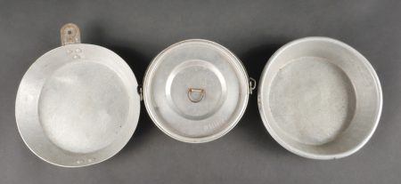 Détails de la vente >Gamelle américano-canadienne d’achat privé. Set de gamelle en aluminium de la marque Wear-Ever de N.A. Co Ltd. Ce type de gamelle a été utilisé chez les Scouts américains et Canadiens... en savoir plus