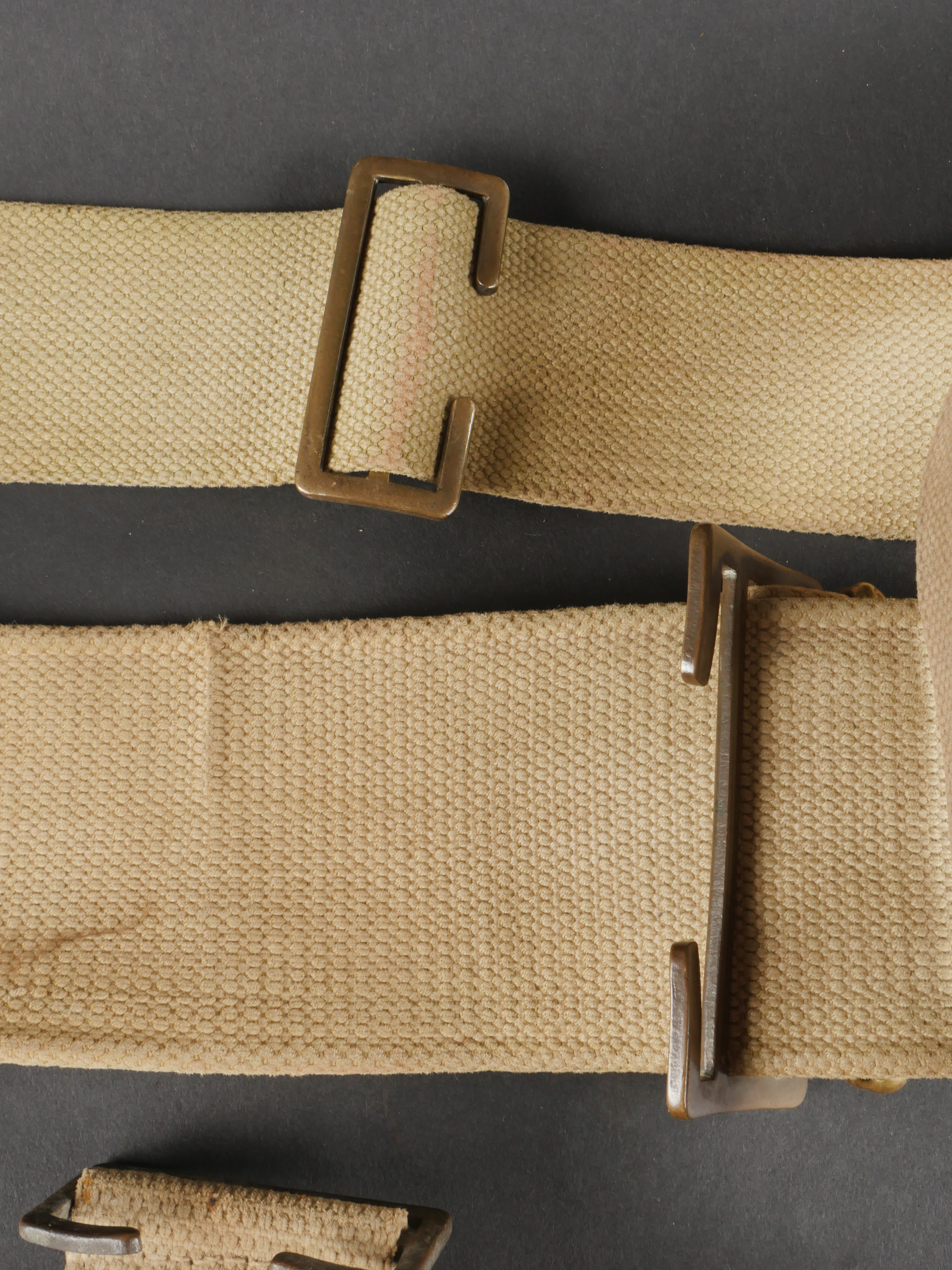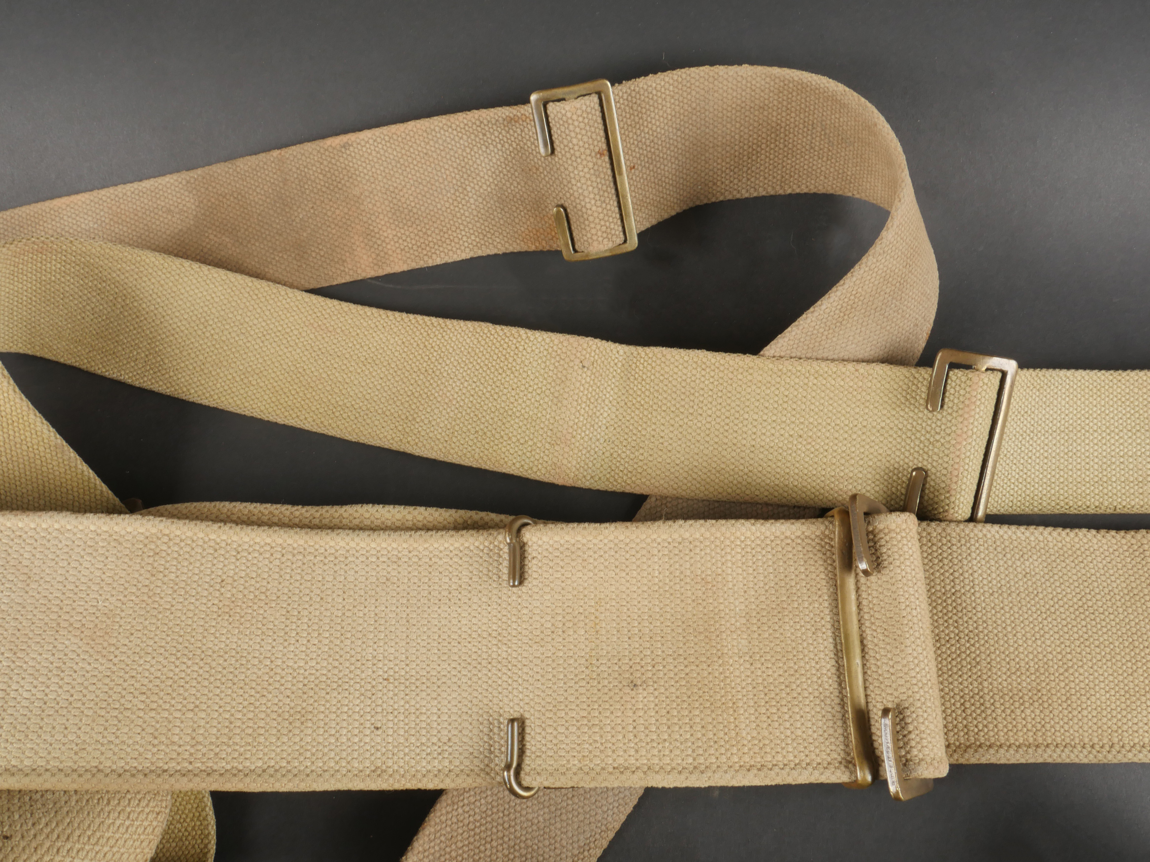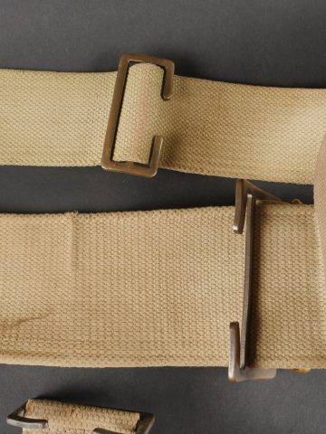 Important lot d’équipement anglais en Web. En toile de coton filé WEB modèle 1908, un ceinturon taille M bien daté 1916 avec toutes ses sangles, 2 bretelles, marquages peu lisibles, une... en savoir plus