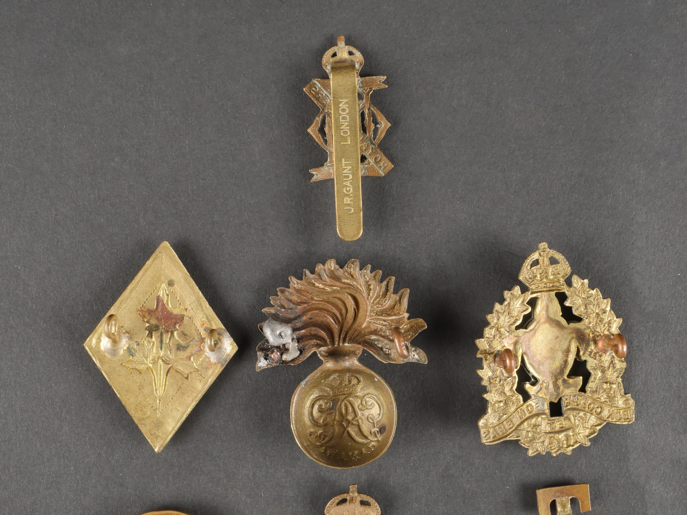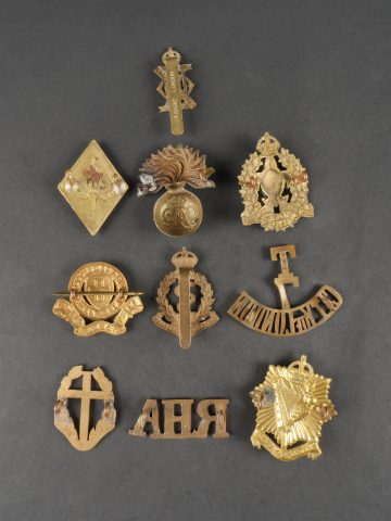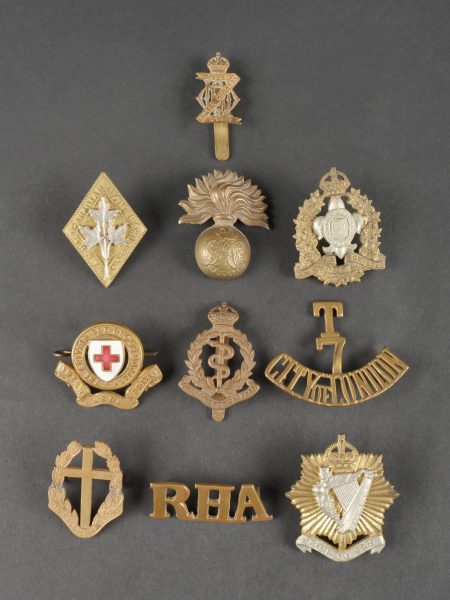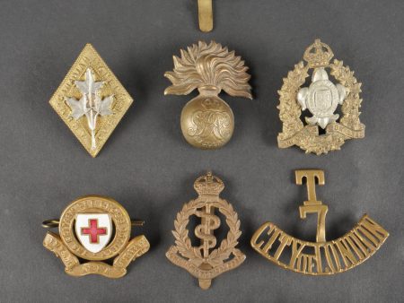 Lot d'insignes anglais et empire britannique dont le title T-7-City of London. Lot of British and Empire Insignia Including the T-7-City of London Title