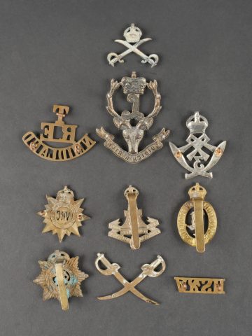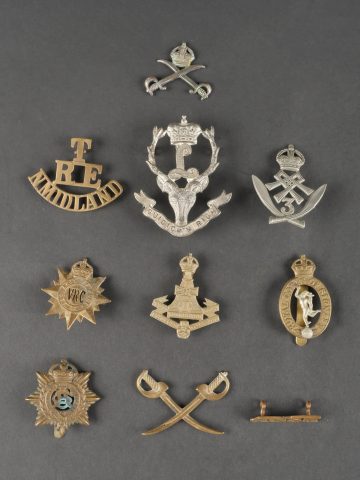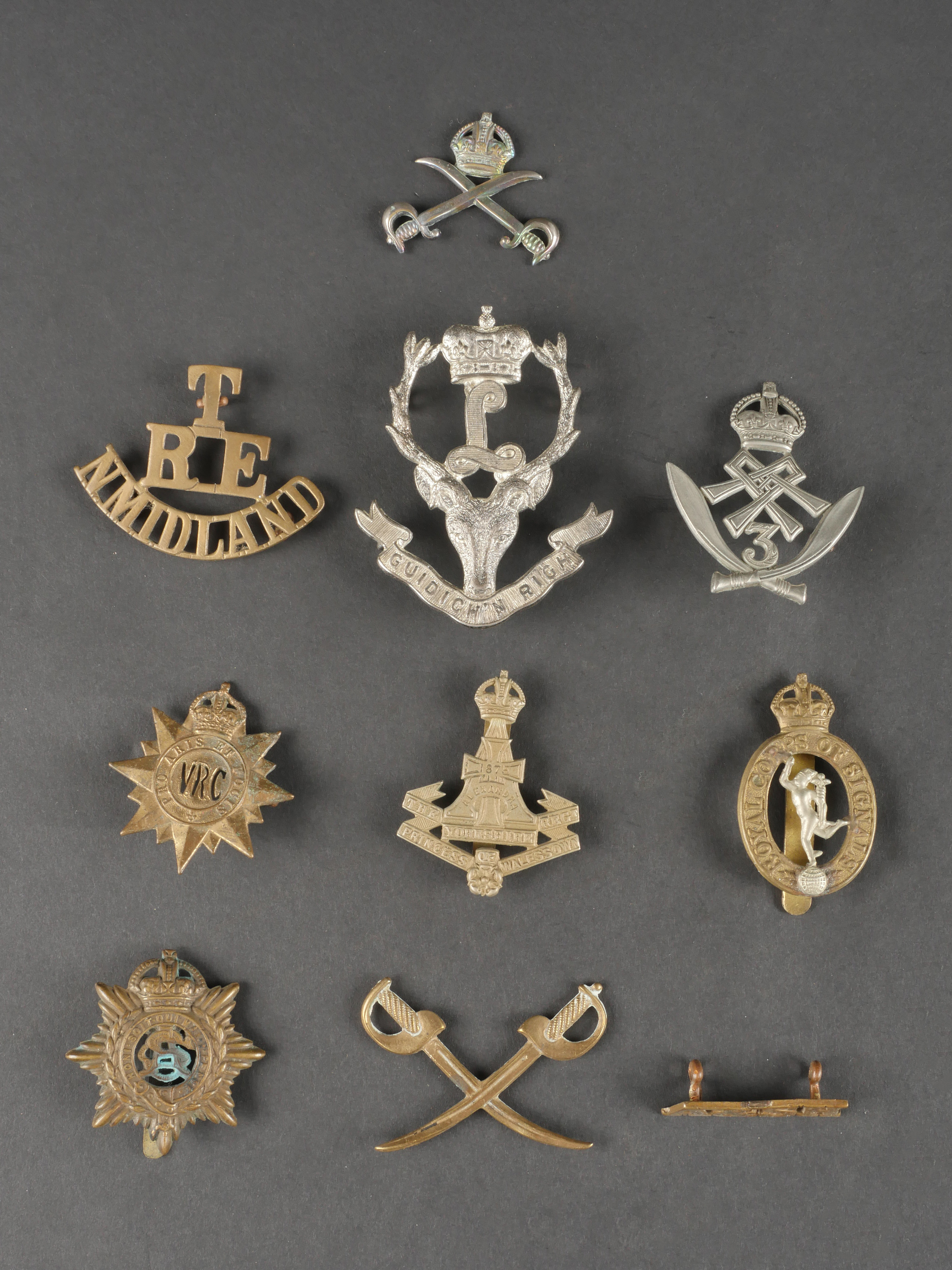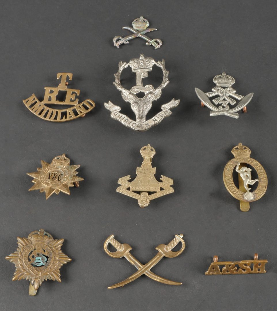 Détails de la vente >Lot d’insignes anglais et empire britannique dont le title T-RE-N.MIDLAND. Lot de 10 insignes de diverses époques dont en WW1 le rare title Territorial Royal Engineers North Midlands, un... en savoir plus