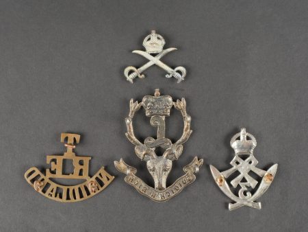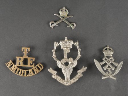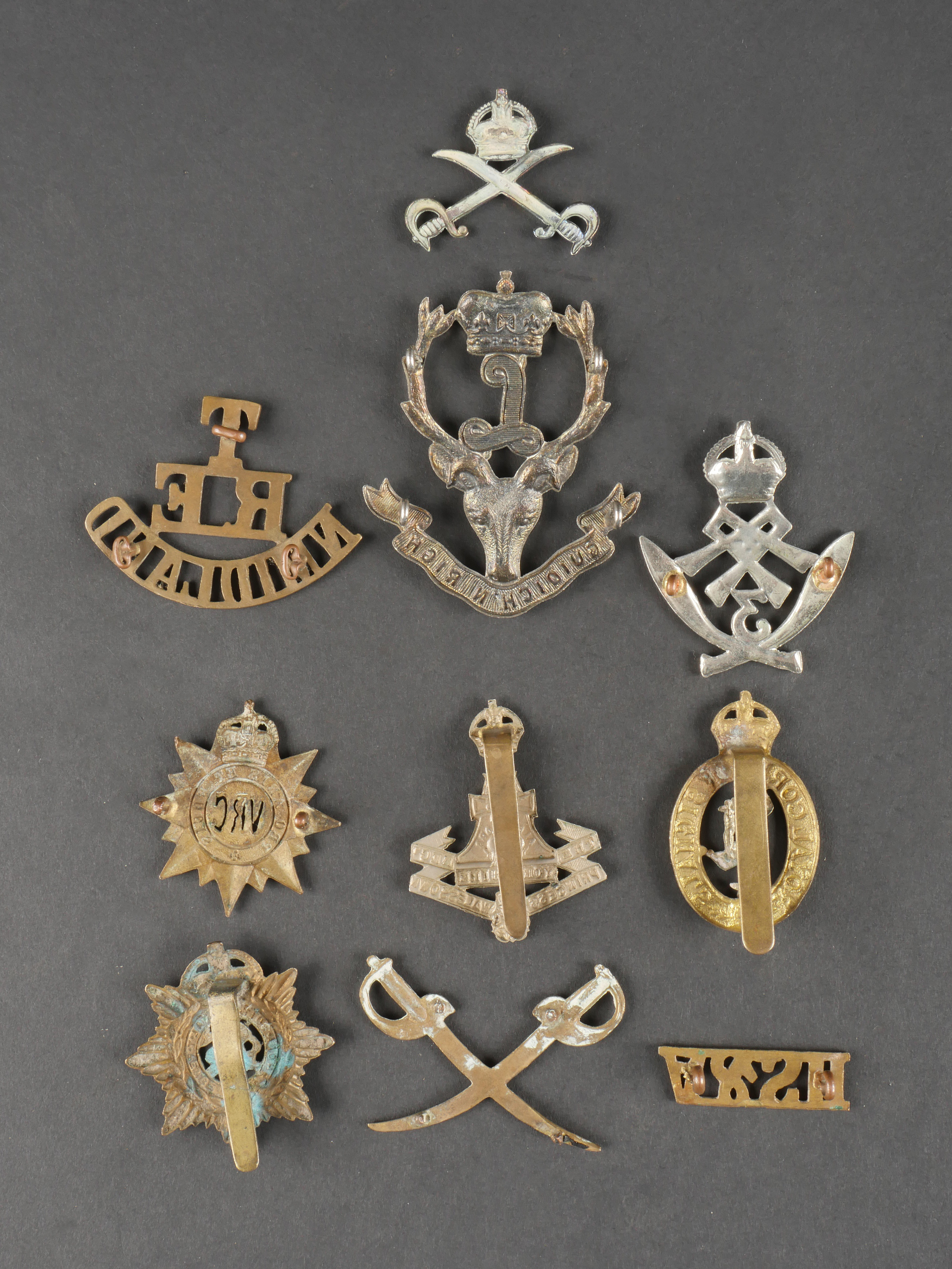 Lot d’insignes anglais et empire britannique dont le title T-RE-N.MIDLAND. Lot de 10 insignes de diverses époques dont en WW1 le rare title Territorial Royal Engineers North Midlands, un badge ASC. Un cap badge moulé Victoria Rifles of Canada et un Seaforth Highlanders of Canada, époques à déterminer, et divers insignes WW2 , tous avec leurs attaches sauf les Physical Instructors. Bon état. Lot of British and Empire Insignia Including the T-RE-N.MIDLAND TitleTen badges from various periods, including a WWI rare “Territorial Royal Engineers North Midlands” shoulder title, an ASC badge, a cast “Victoria Rifles of Canada” cap badge and a “Seaforth Highlanders of Canada” (periods to confirm), plus assorted WWII items, all complete with fittings except the Physical Instructors. Good condition.