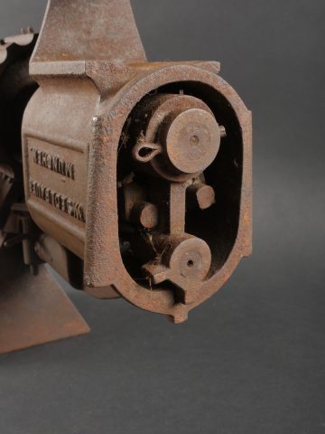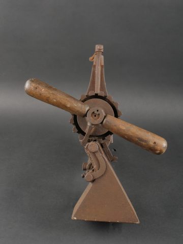 Machine à garnir les bandes pour MG08 Gurtfuller. Garnisseuse de bandes de mitrailleuse allemande MG08, appelé Gurtfüller. Fabricant bavarois W. Sedlbauer München. Vis de serrage de... en savoir plus