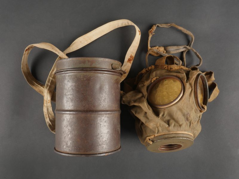 Masque anti-gaz allemand Gummimaske dans son boîtier. German Gas Mask Gummimaske with Canister