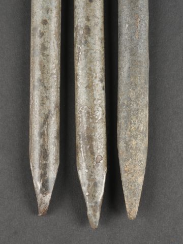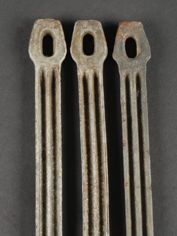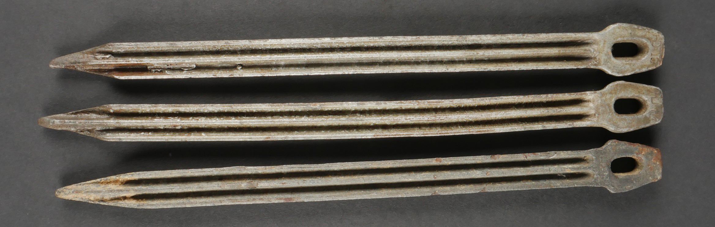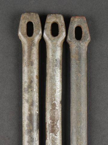 Détails de la vente >Piquets de tente avec leur housse en toile feldgrau. Housse en toile verte, avec ses sangles en cuir marron, ses boutons aluminium, réceptionnée au BA VII et marquage fabricant. Contenant 2... en savoir plus