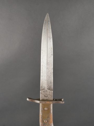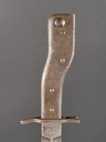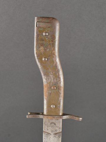 Poignard baïonnette DEMAG régimenté. Lame en relativement bon état, marquage DRGM d’un côté, DEMAG Duisburg de l’autre, usure. Poignée moulée en fer avec de bons restes de... en savoir plus