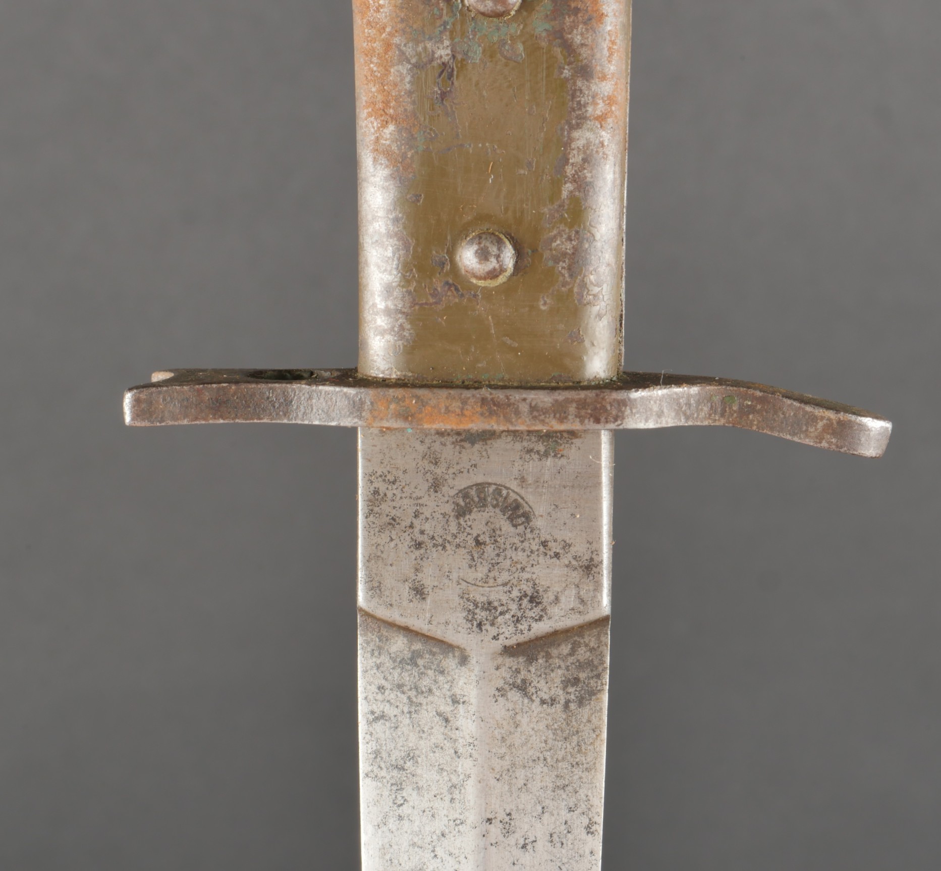 Détails de la vente >Poignard baïonnette DEMAG régimenté. Lame en relativement bon état, marquage DRGM d’un côté, DEMAG Duisburg de l’autre, usure. Poignée moulée en fer avec de bons restes de... en savoir plus