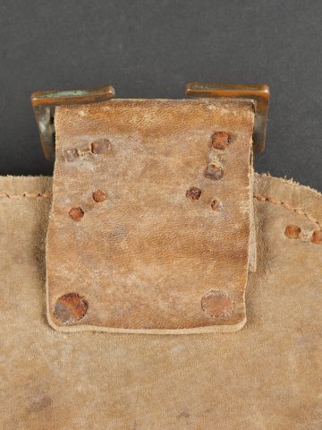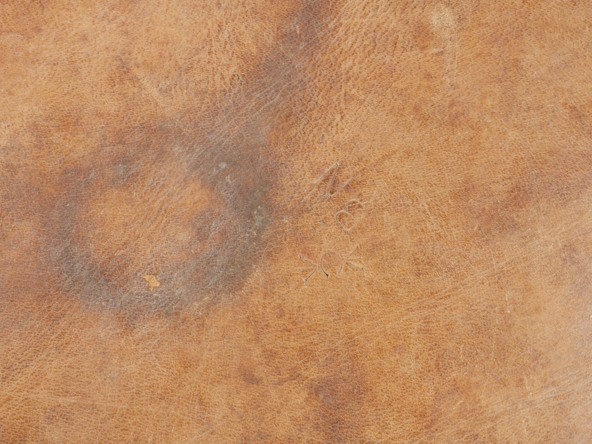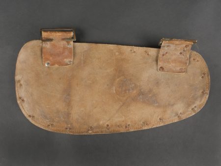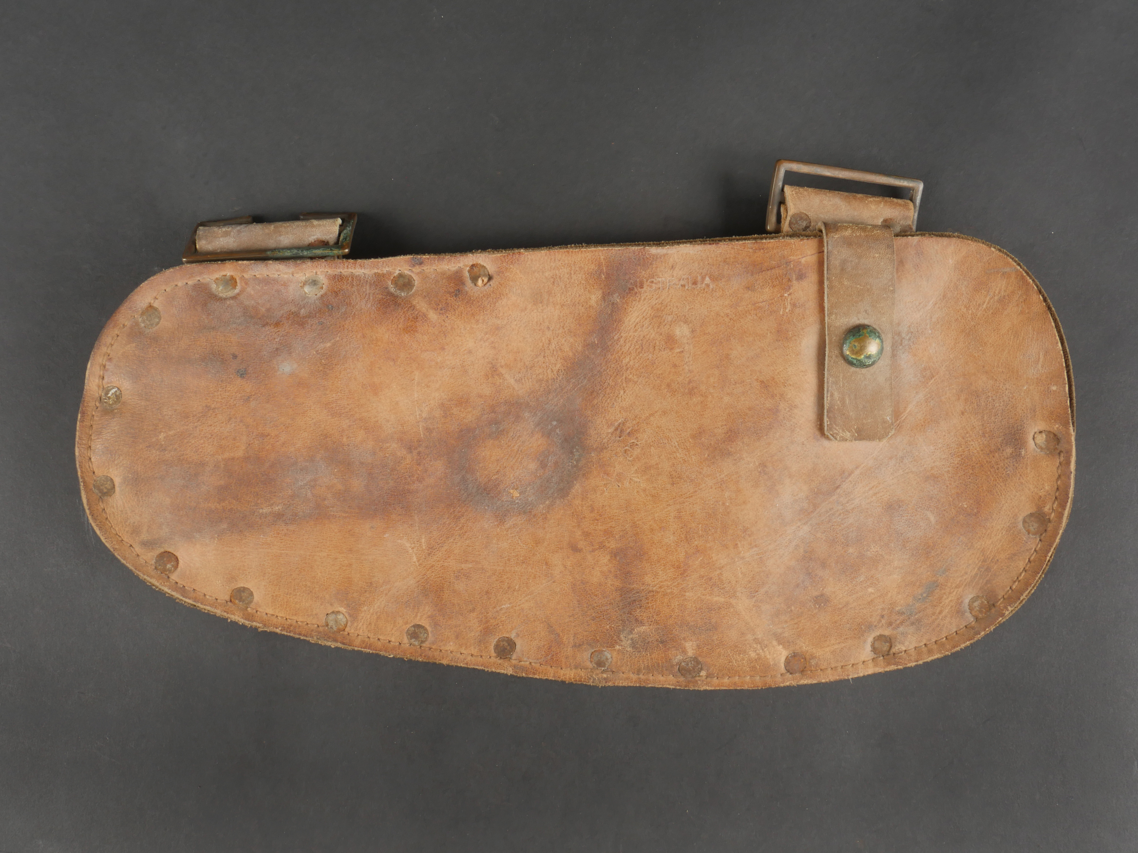 Porte outil individuel australien pattern 1915 en cuir. Entrenching tool holder, banane en cuir marron clair, australien modèle 1915. Marquage au dos d’un fabricant de Brisbane, daté 1915, bouton pression fonctionnel, cuir souple, patine, bon état. Peu courant de nos jours. Australian Leather Individual Tool Carrier Pattern 1915Light-brown “banana” entrenching-tool holder by a Brisbane maker, dated 1915. Snap fastener functional, supple leather with patina. Scarce today.