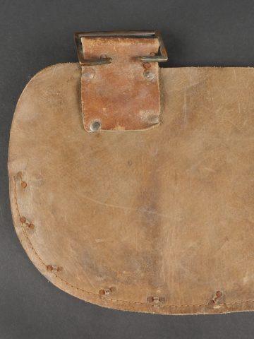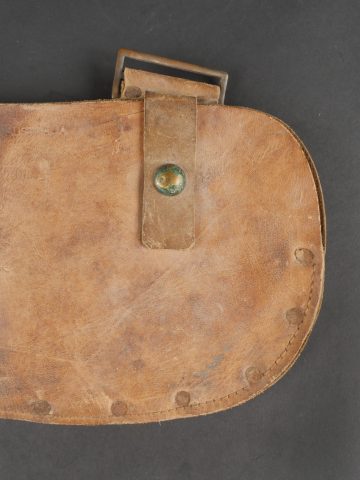 Porte outil individuel australien pattern 1915 en cuir. Entrenching tool holder, banane en cuir marron clair, australien modèle 1915. Marquage au dos d’un fabricant de Brisbane, daté 1915,... en savoir plus