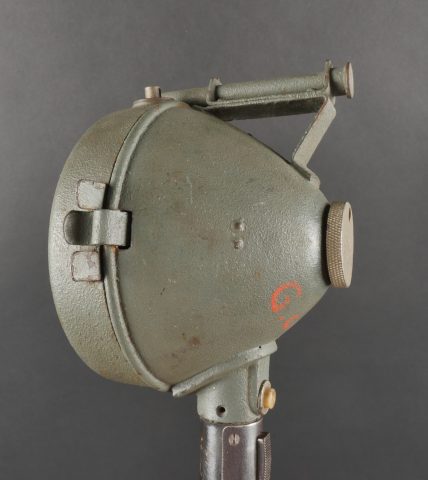 Projecteur de signalisation allemand Signalscheinwerfer 12 cm. Du fabricant Goerz, projecteur électrique de 12 cm, utilisable à la main ou sur trépied pour communication par signaux lumineux.... en savoir plus
