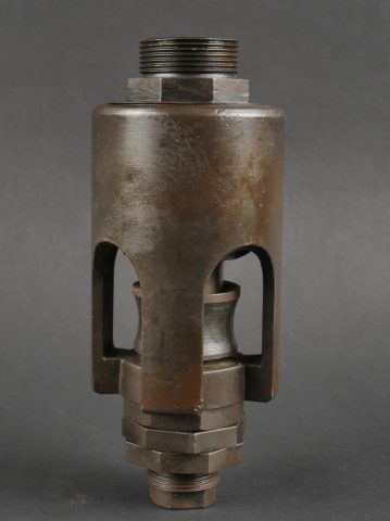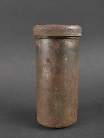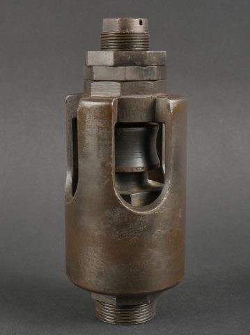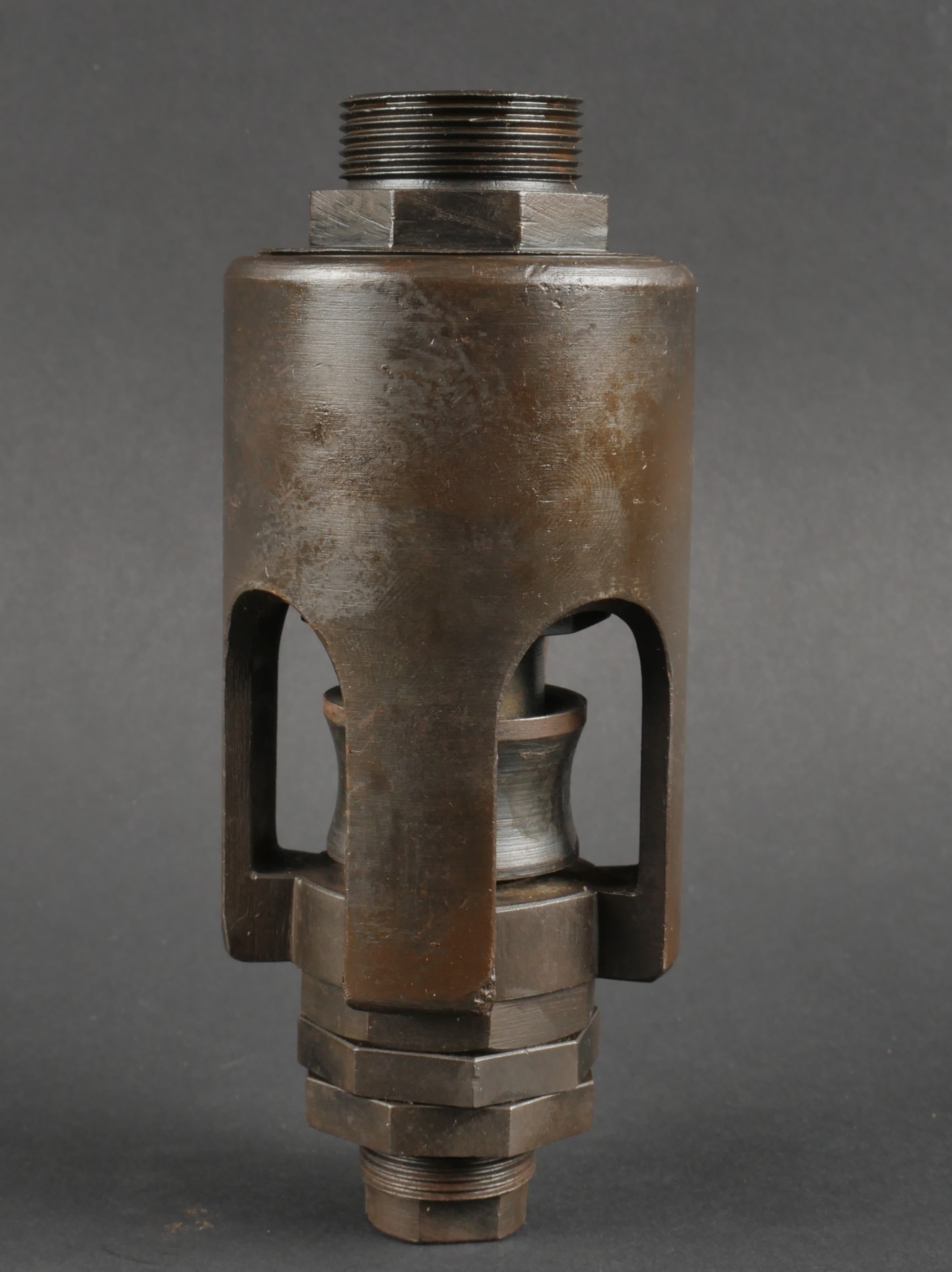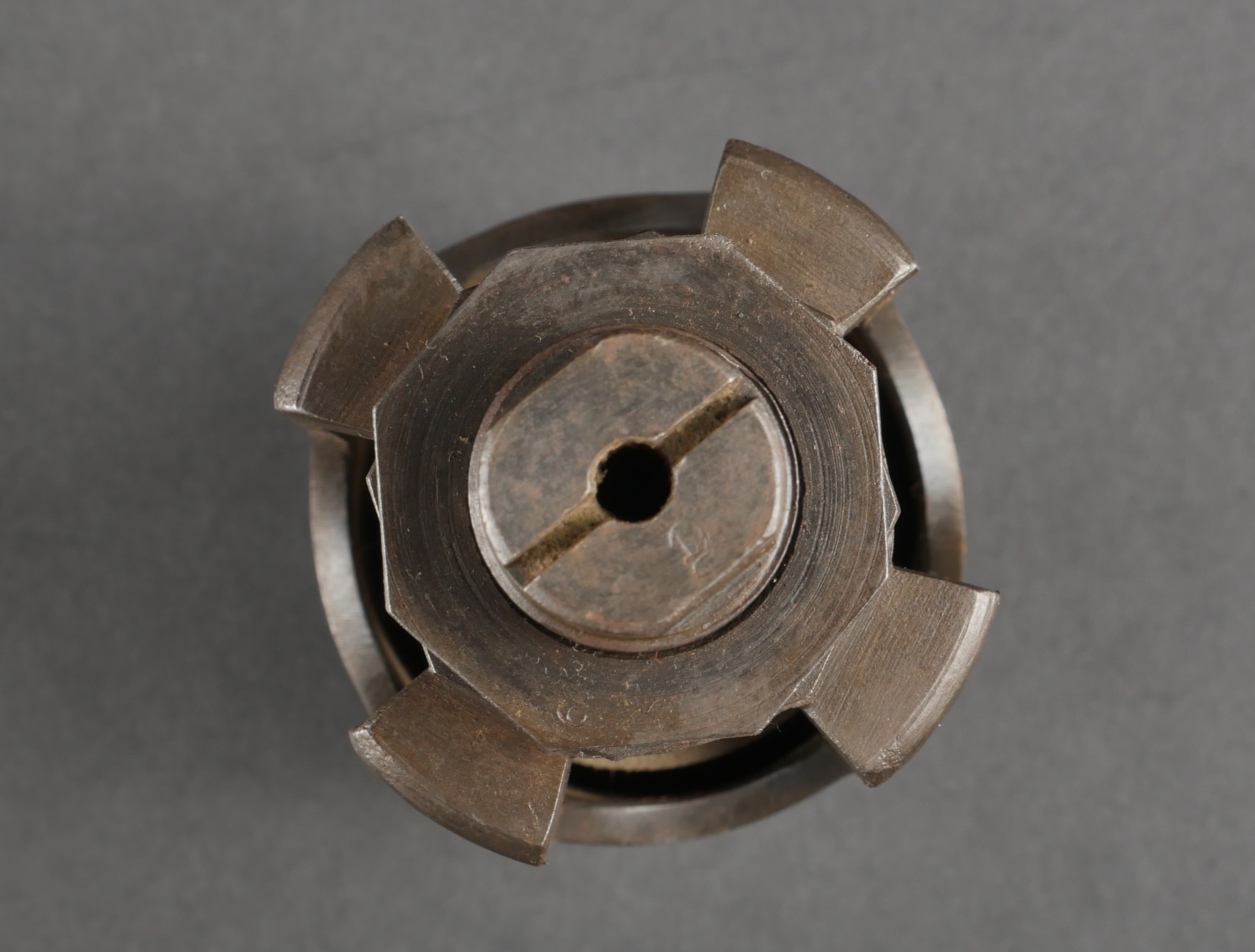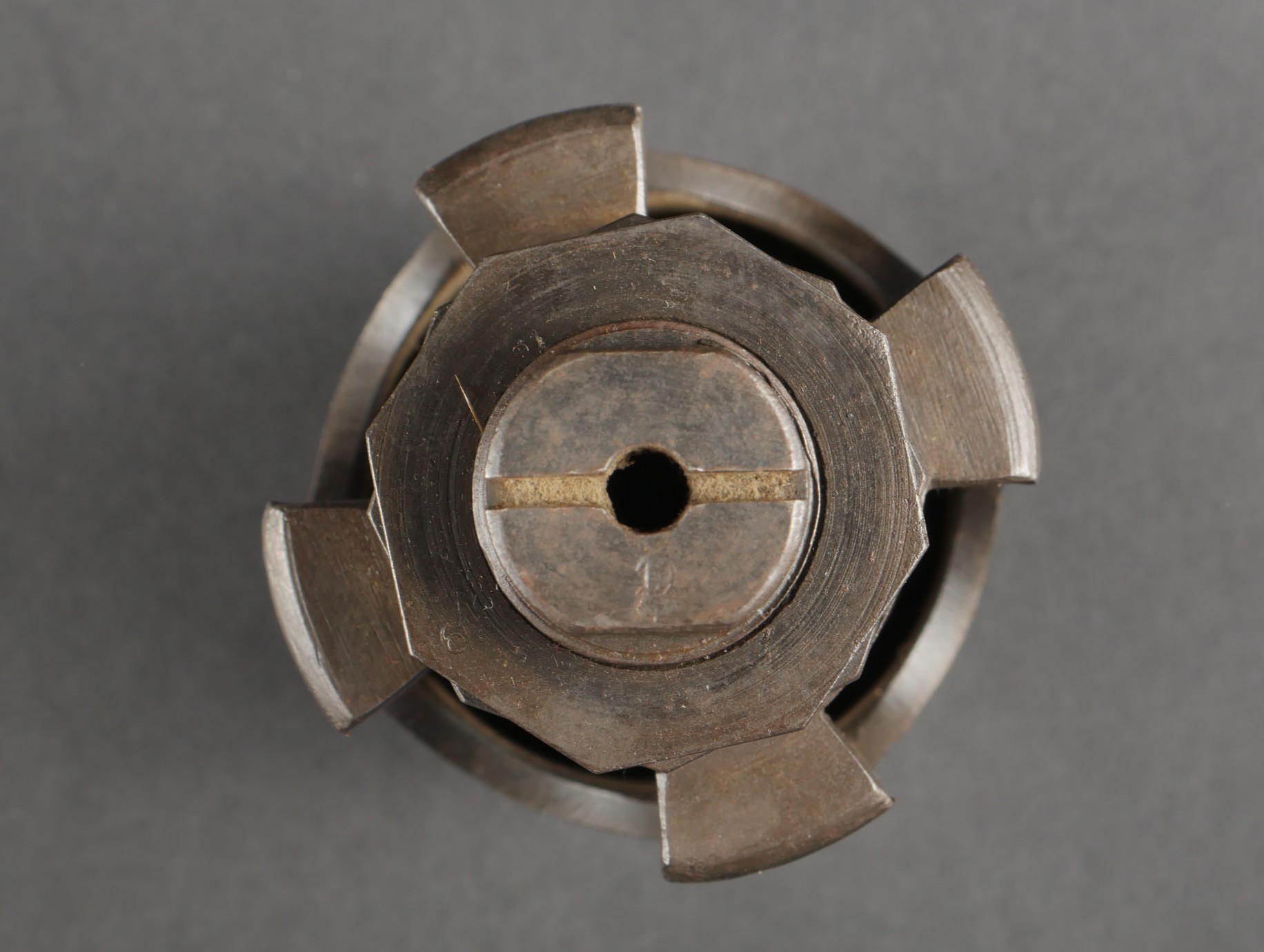 Rare dispositif de tir à blanc pour mitrailleuse allemande MG08 et 08-15. En acier bronzé, en parfait état, bon modèle 1ère guerre avec 3 poinçons impériaux à la couronne, et non un modèle Reichswehr comme on trouve la plupart du temps. Dans son container de transport et nettoyage, oxydation superficielle sur ce dernier. Rare Blank-Firing Device for German MG08 and MG08/15 Machine GunsBlued steel example in excellent condition, correct First World War model with three Imperial crown proofs, not a later Reichswehr version as often encountered. Contained in its transport and cleaning box, showing light surface oxidation.