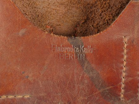 Sacoche de téléphoniste allemand de la 1ère Guerre. En cuir marron, marquée du fabricant Einbrodt & Kalb de Berlin. Rabat avec fermeture par sanglon, souple, et boucle à ardillon,... en savoir plus