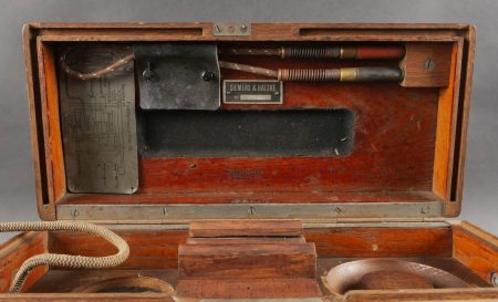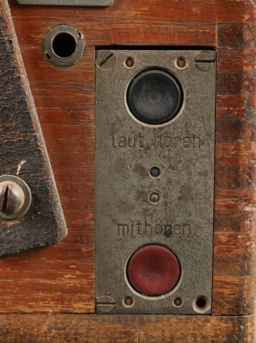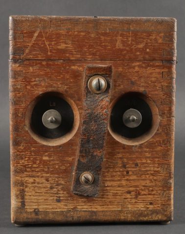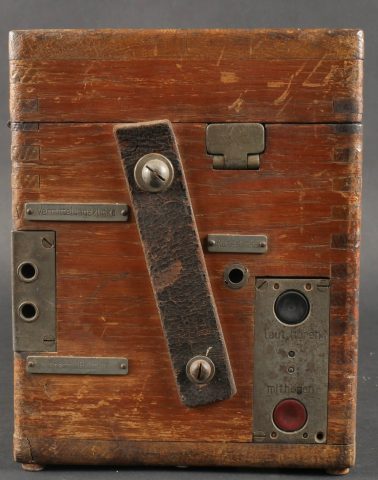 Détails de la vente >Téléphone de campagne allemand Feldfernsprecher 16 type B. Téléphone de campagne modèle 1916 type B du fabricant Siemens & Halske, dans sa boîte en bois vernis, complet de son combiné,... en savoir plus