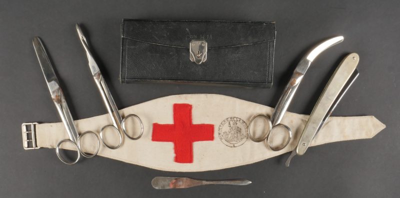 Trousse d'infirmier français et brassard croix rouge. French Medic’s Kit and Red Cross Armband