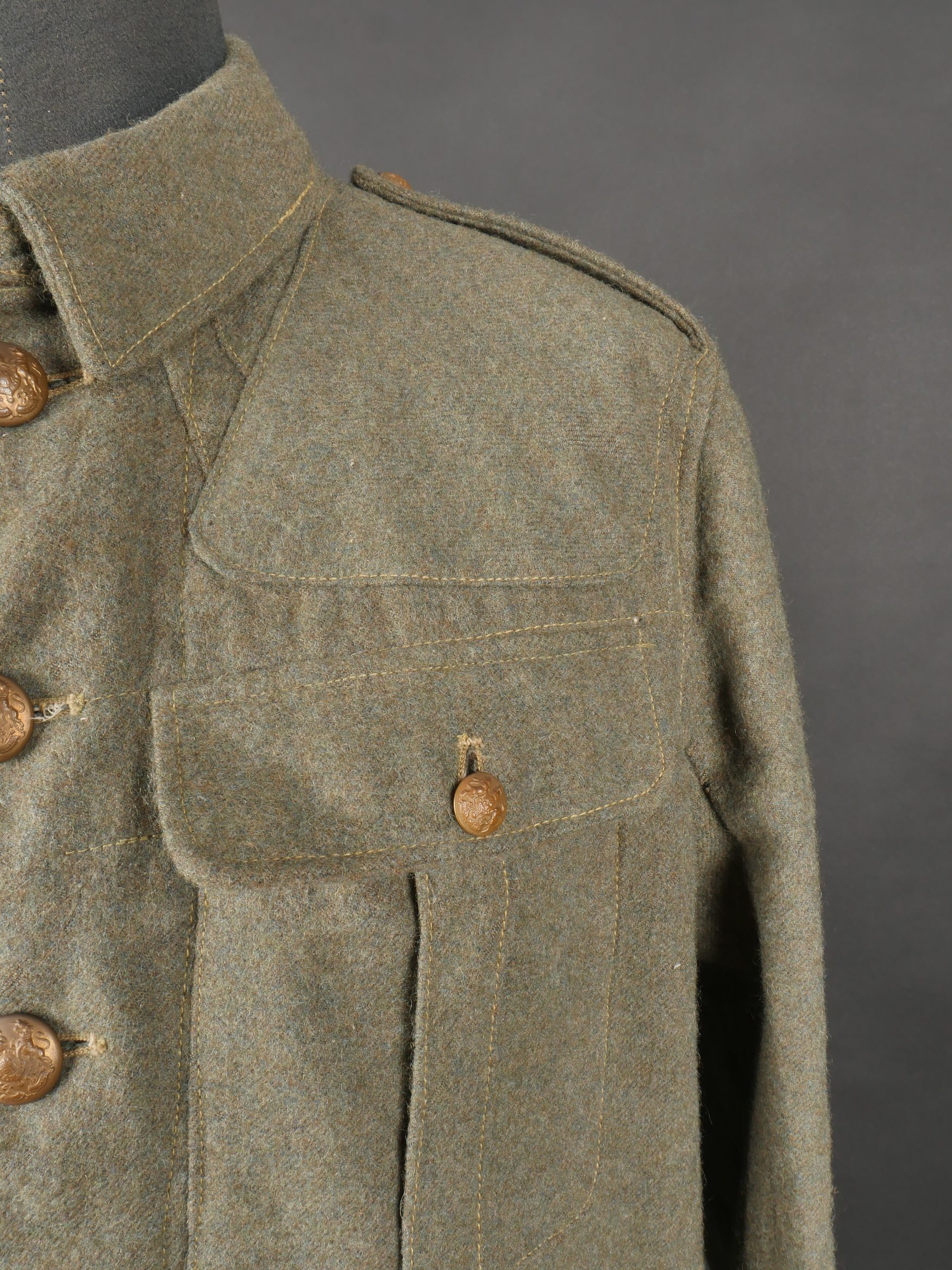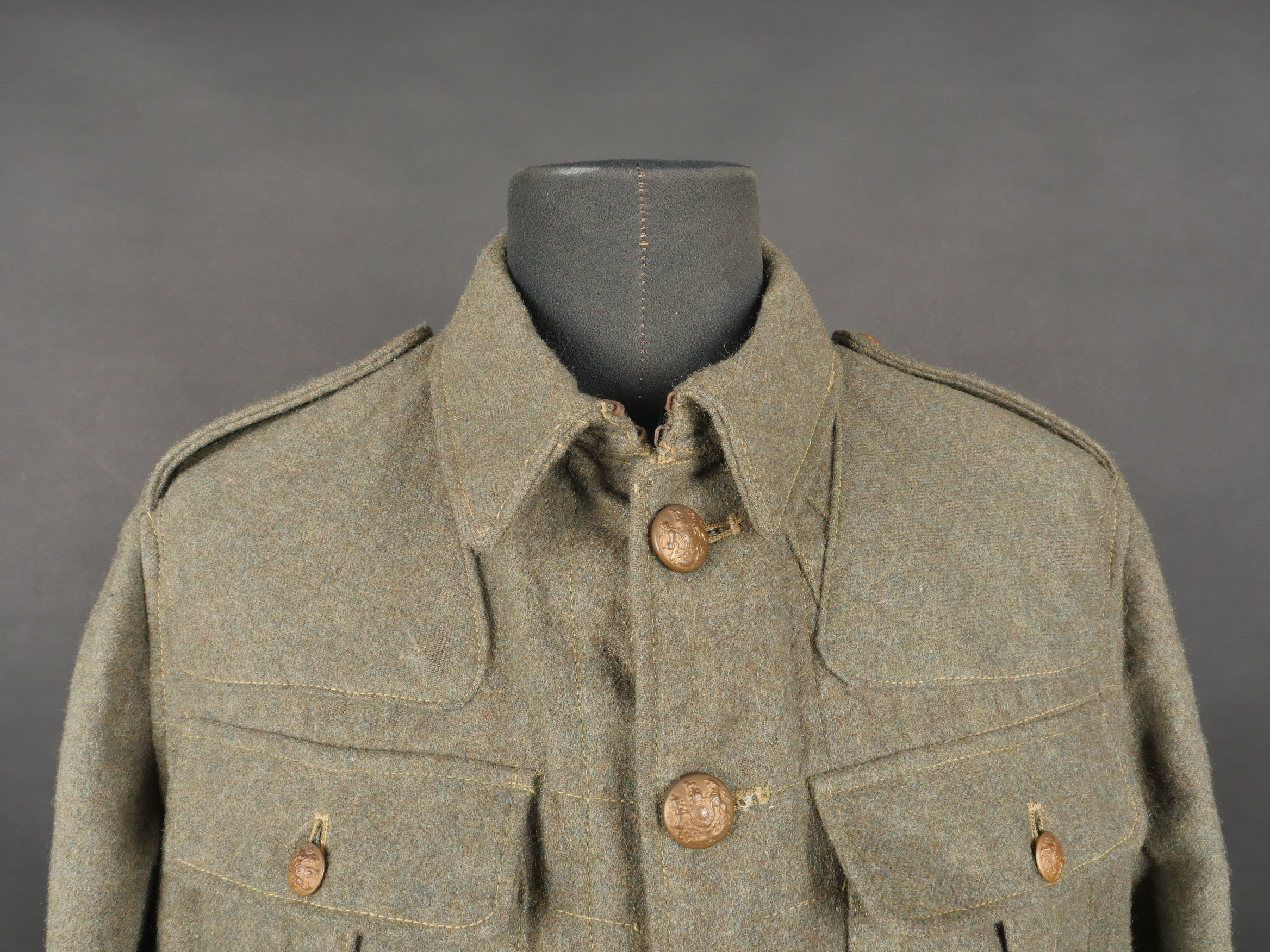 Détails de la vente >Tunique anglaise troupe Service Dress modèle 1902. Très belle et curieuse tunique anglaise troupe en serge tirant sur la teinte verte. Jamais réceptionnée, jamais portée. En tout point... en savoir plus