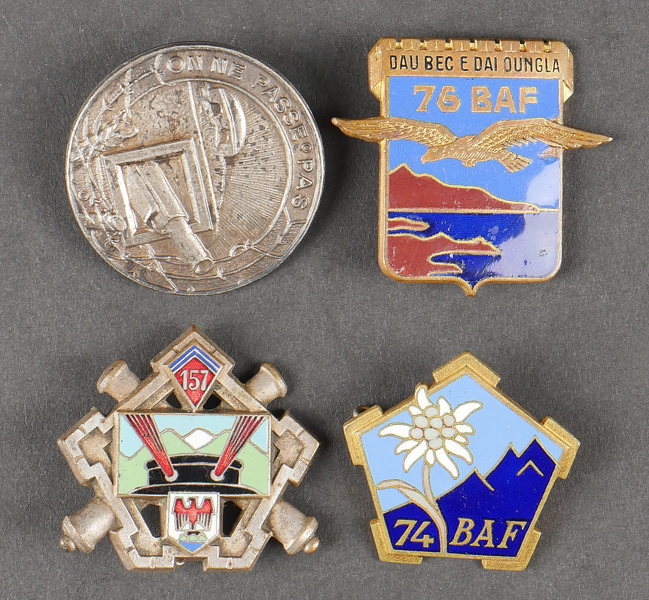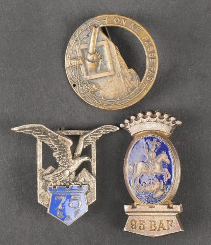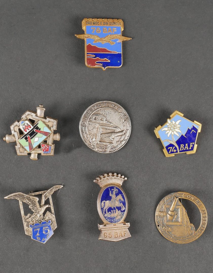 Lot d'insignes BAF. Comprenant 74ème BAF Arthus Bertrand, 75ème BAF Drago Béranger, 76ème BAF éclat d'émail Drago Béranger, 95ème BAF Drago Béranger, 157ème BAF Drago Béranger... en savoir plus
