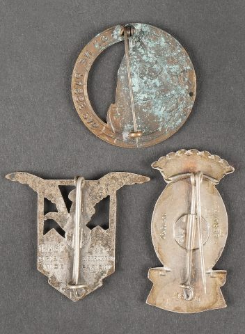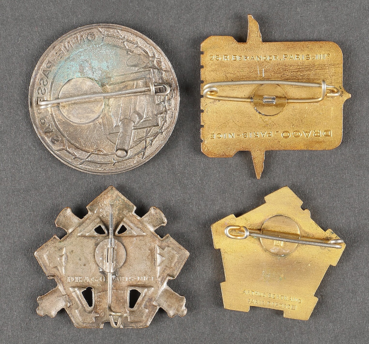 Lot d’insignes BAF. Comprenant 74ème BAF Arthus Bertrand, 75ème BAF Drago Béranger, 76ème BAF éclat d’émail Drago Béranger, 95ème BAF Drago Béranger, 157ème BAF Drago Béranger attache accidentée. On y joint deux insignes de béret. Lot of BAF insignia Including 74th BAF Arthus Bertrand 75th BAF Drago Béranger 76th BAF Drago Béranger with enamel chip 95th BAF Drago Béranger and 157th BAF Drago Béranger with damaged attachment together with two beret badges.