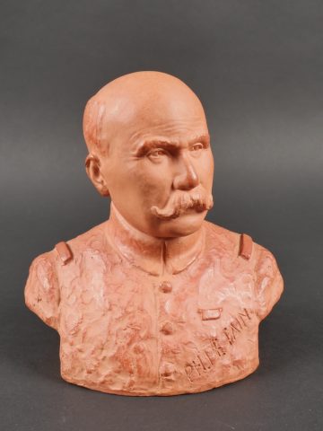 Ensemble à l’effigie du Maréchal. Buste en terre cuite à l’effigie du Maréchal sans képi, sur sa poitrine est gravé Ph Pétain. Signature du sculpteur au dos. Hauteur 13cm. On y... en savoir plus