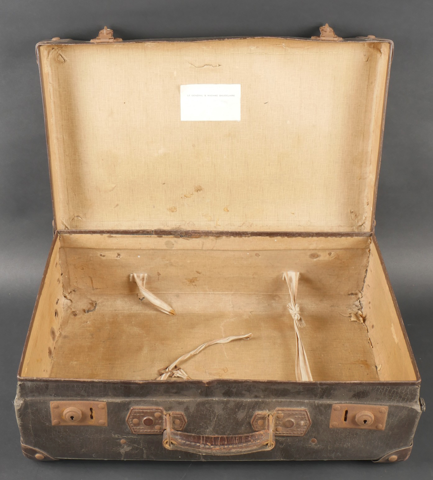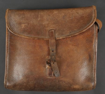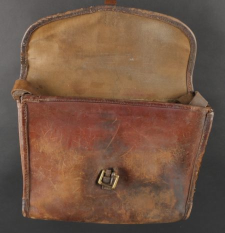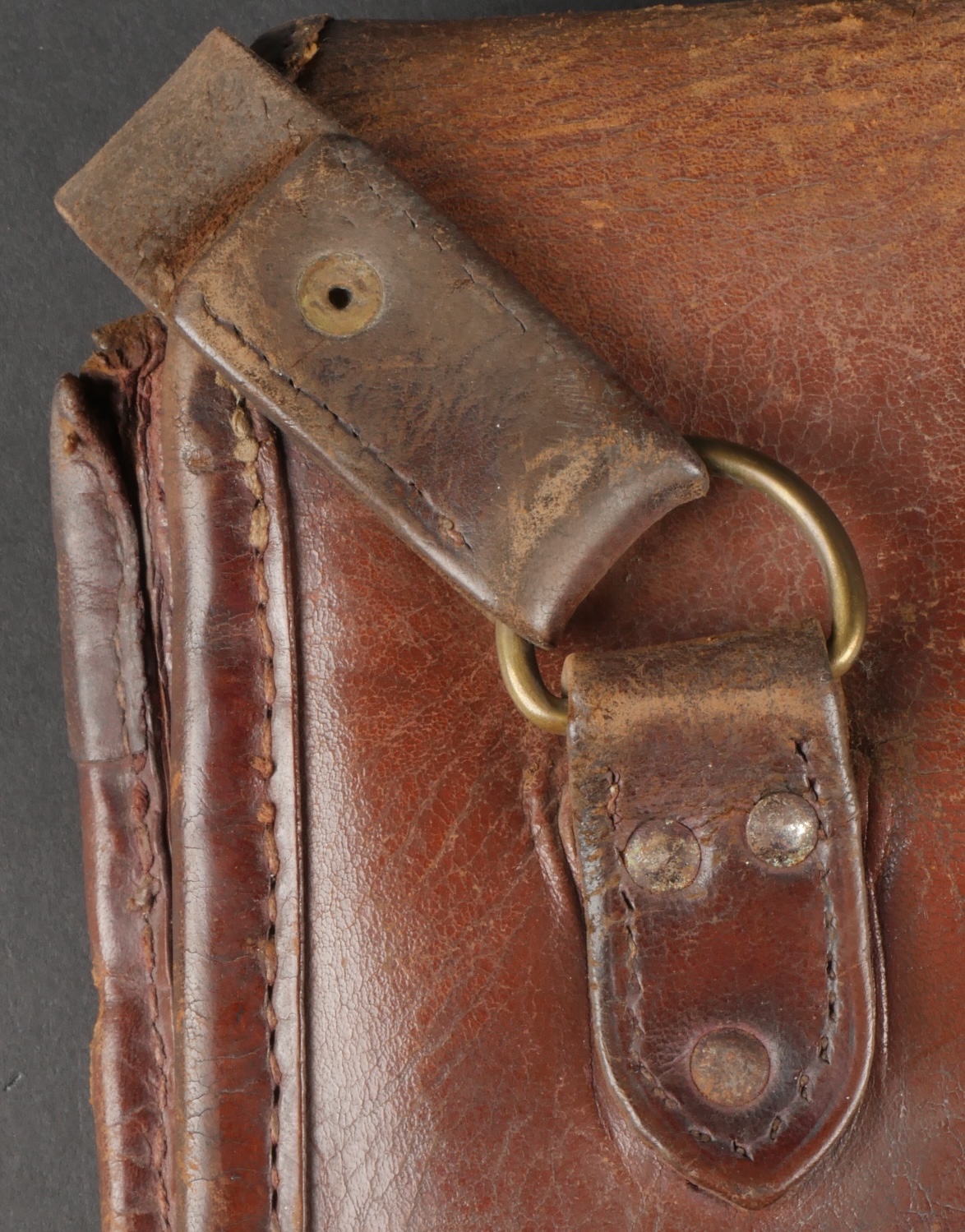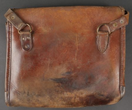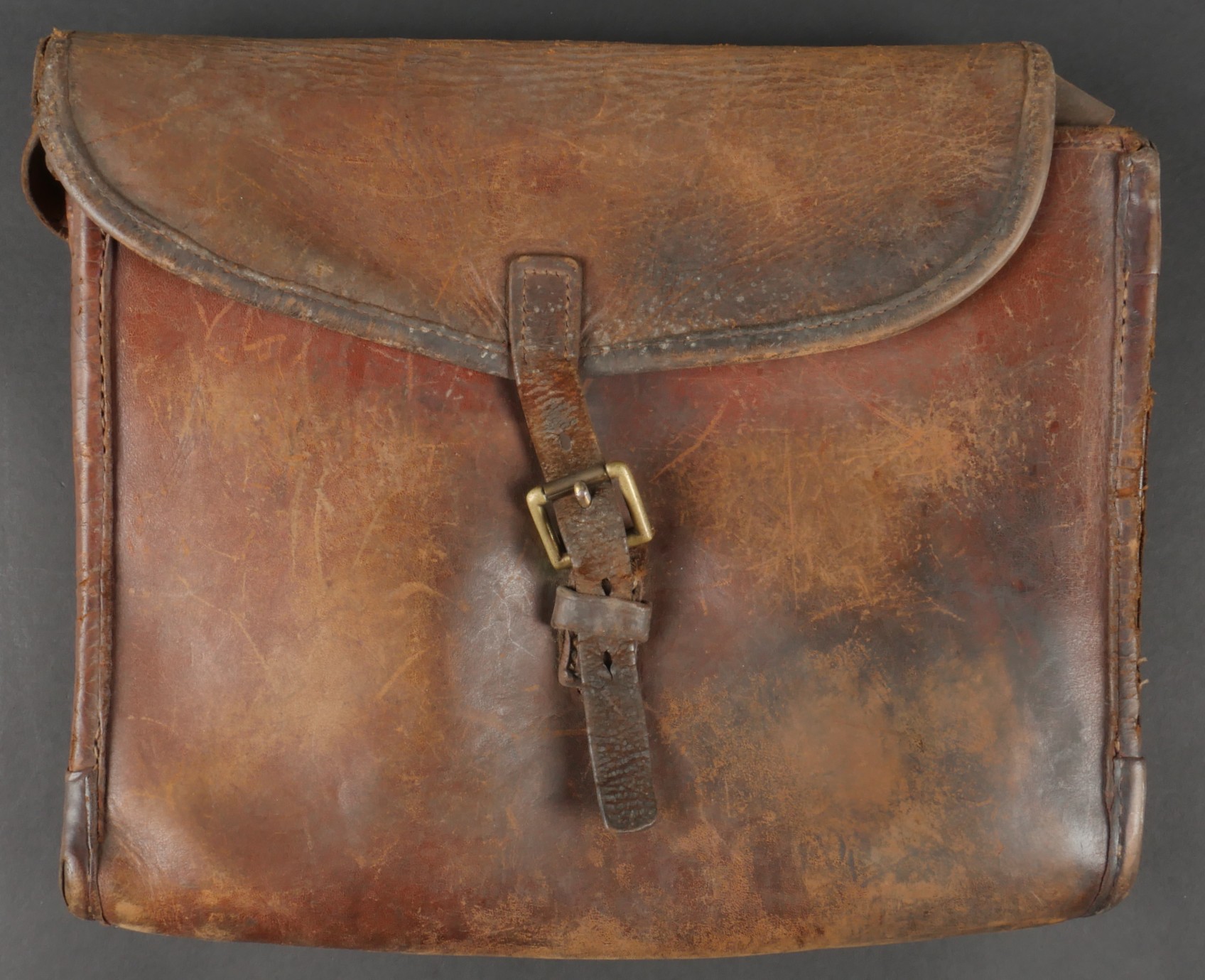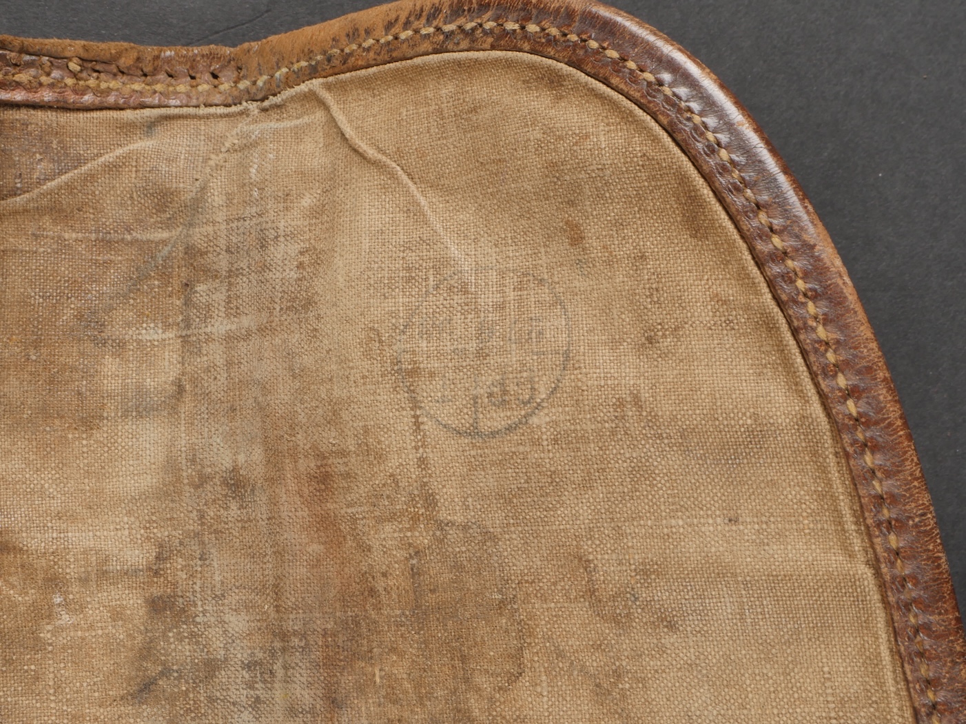 Lot Gendarme GMA VosgesFFI. Comprenant une sacoche réglementaire de gendarme en cuir brun doublé de toile écrue, sangle de fermeture accidentée contenant un manuel daté 1939 de la 19ème... en savoir plus