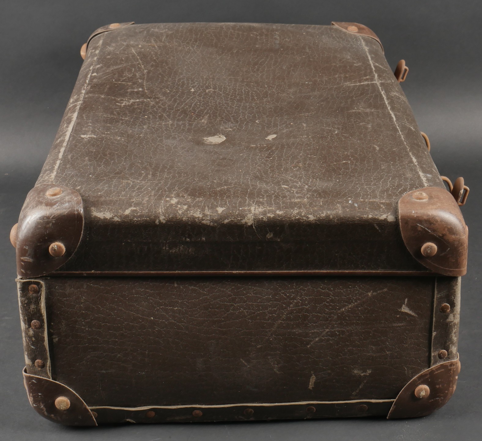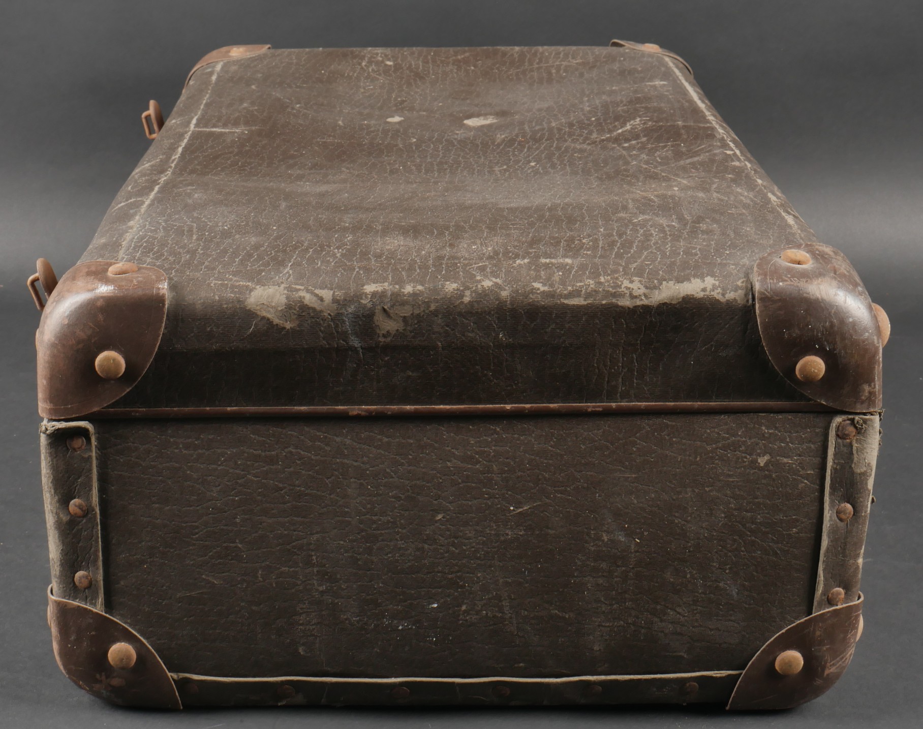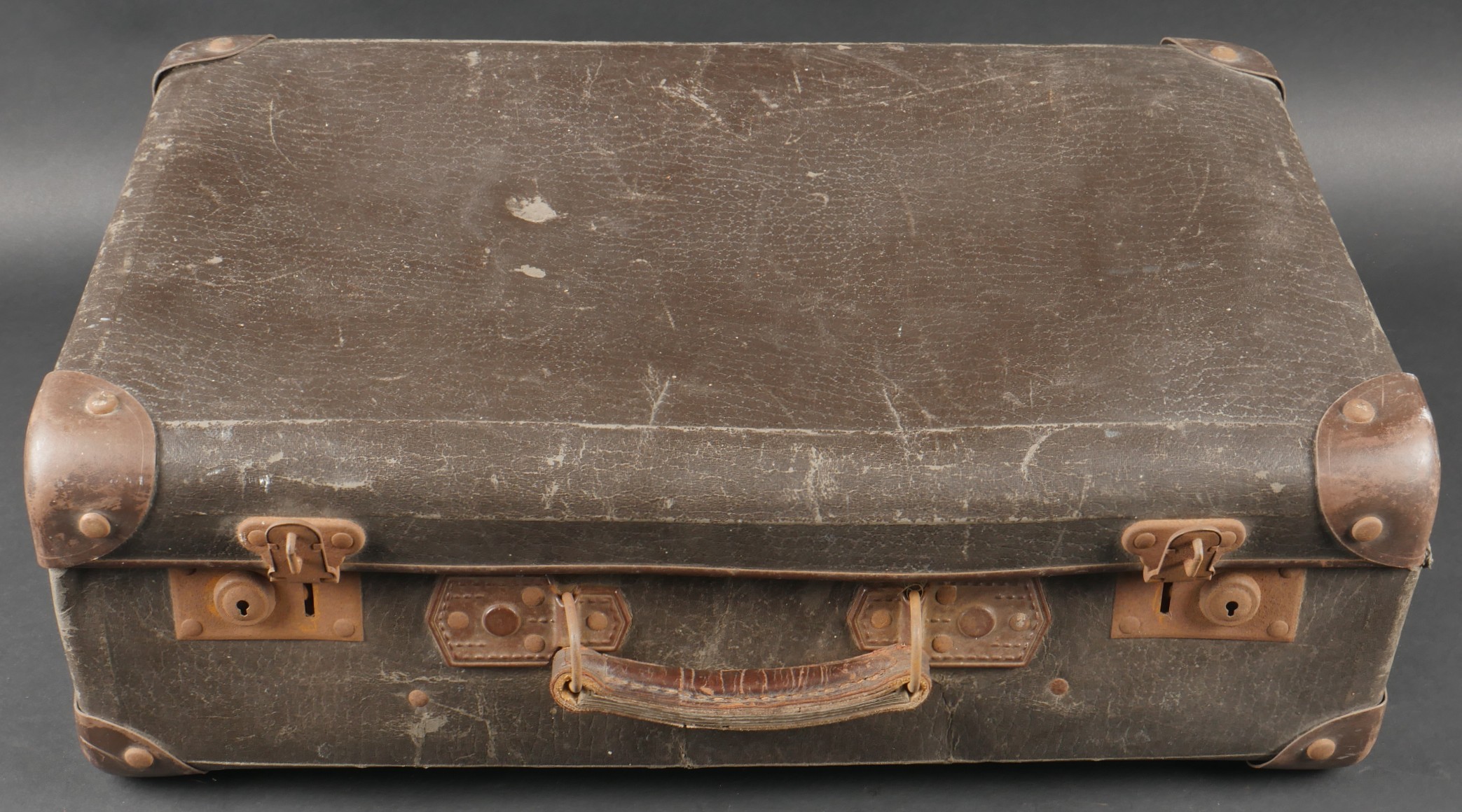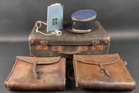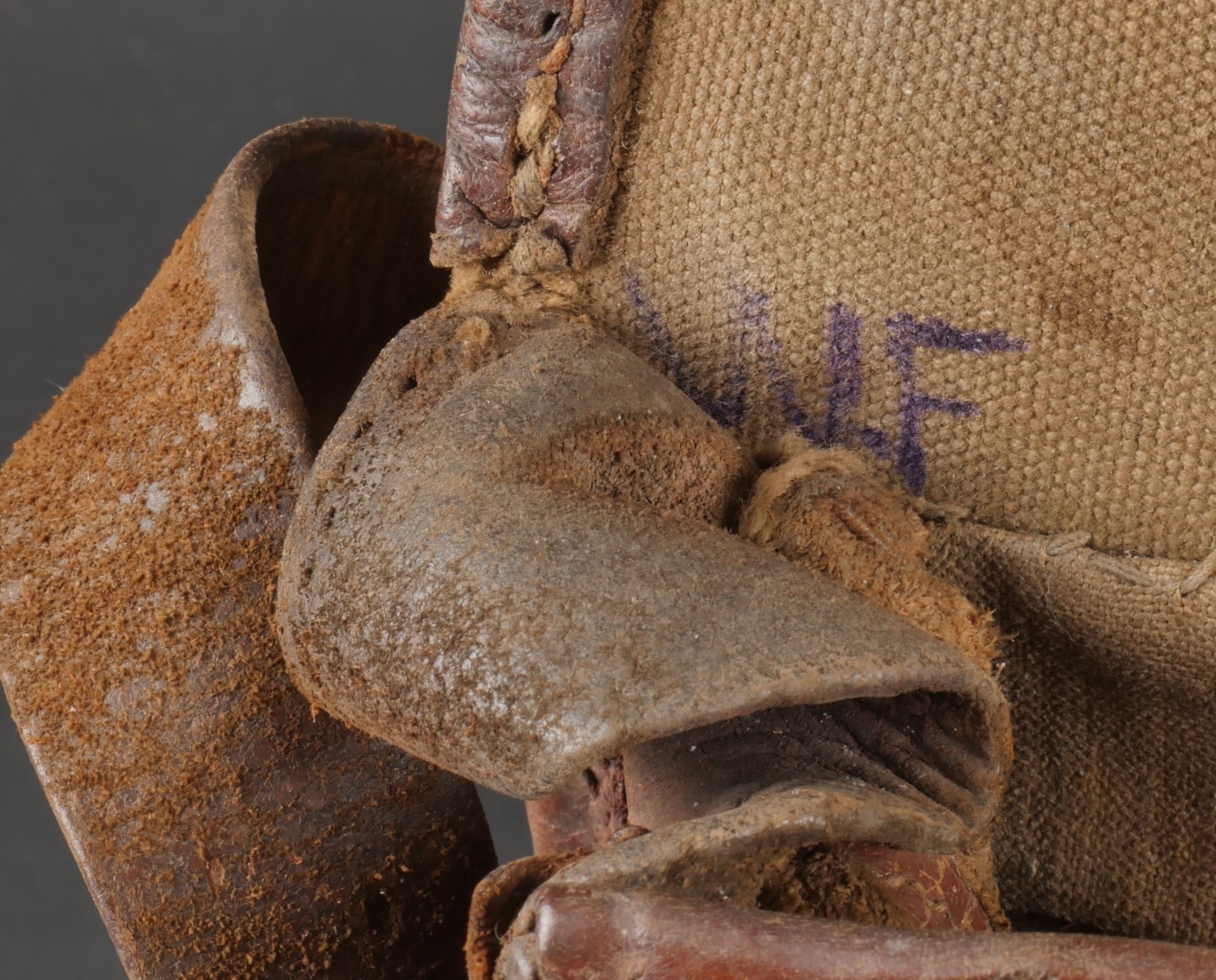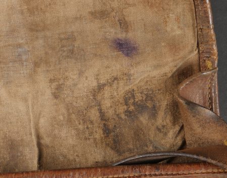 Lot Gendarme GMA VosgesFFI. Comprenant une sacoche réglementaire de gendarme en cuir brun doublé de toile écrue, sangle de fermeture accidentée contenant un manuel daté 1939 de la 19ème... en savoir plus