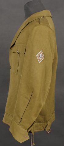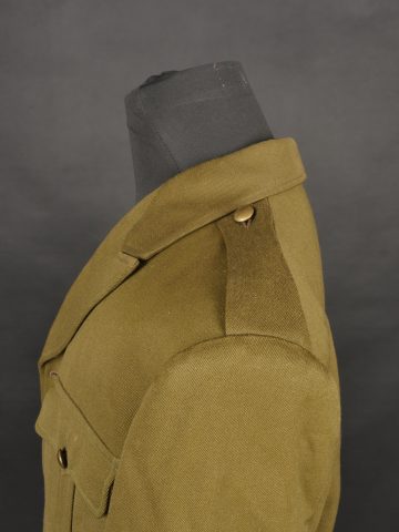 Beau blouson d’officier, copié sur le modèle IKE Américain mais confectionné localement en Indochine dans un drap peigné Kaki. Le blouson se ferme par 4 boutons lisses dorés, dont le... en savoir plus