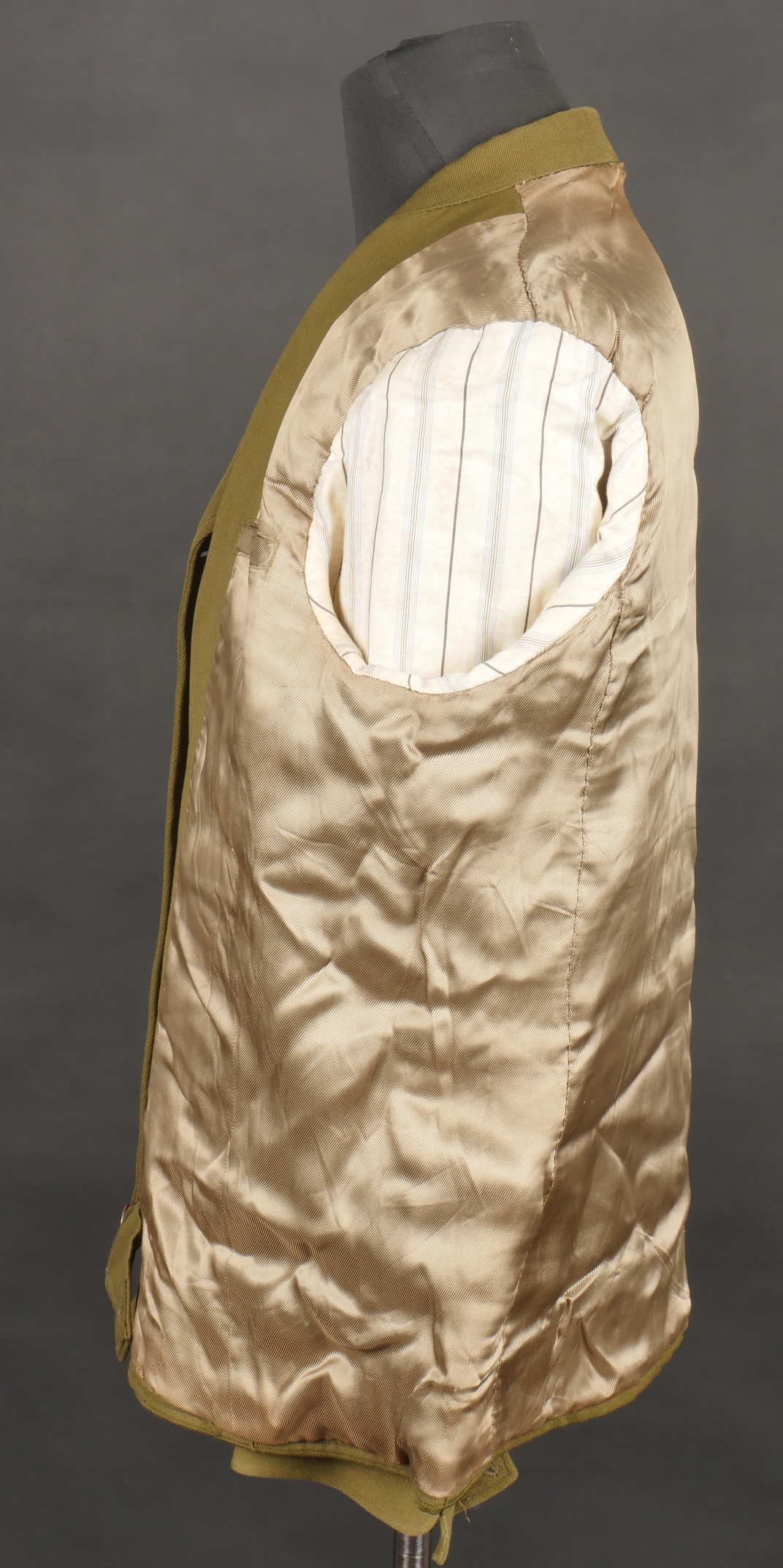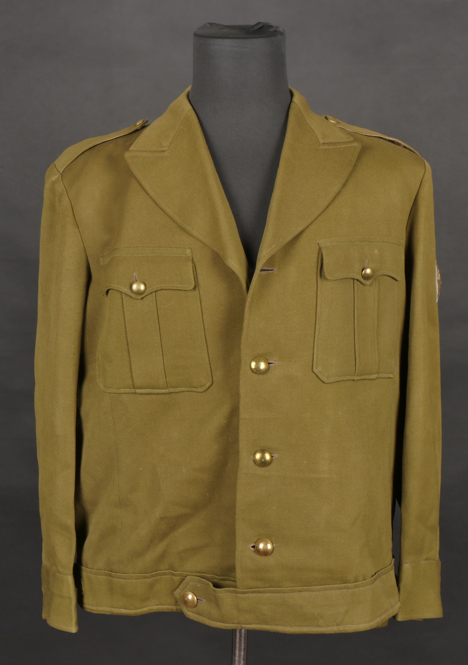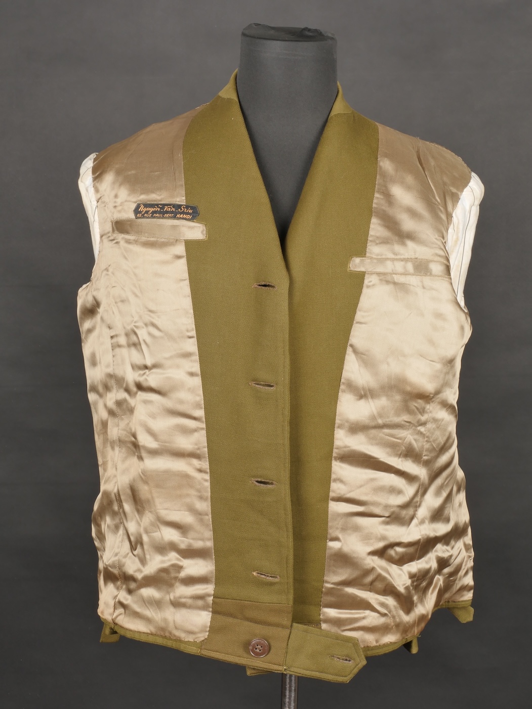 Beau blouson d’officier, copié sur le modèle IKE Américain mais confectionné localement en Indochine dans un drap peigné Kaki. Le blouson se ferme par 4 boutons lisses dorés, dont le... en savoir plus