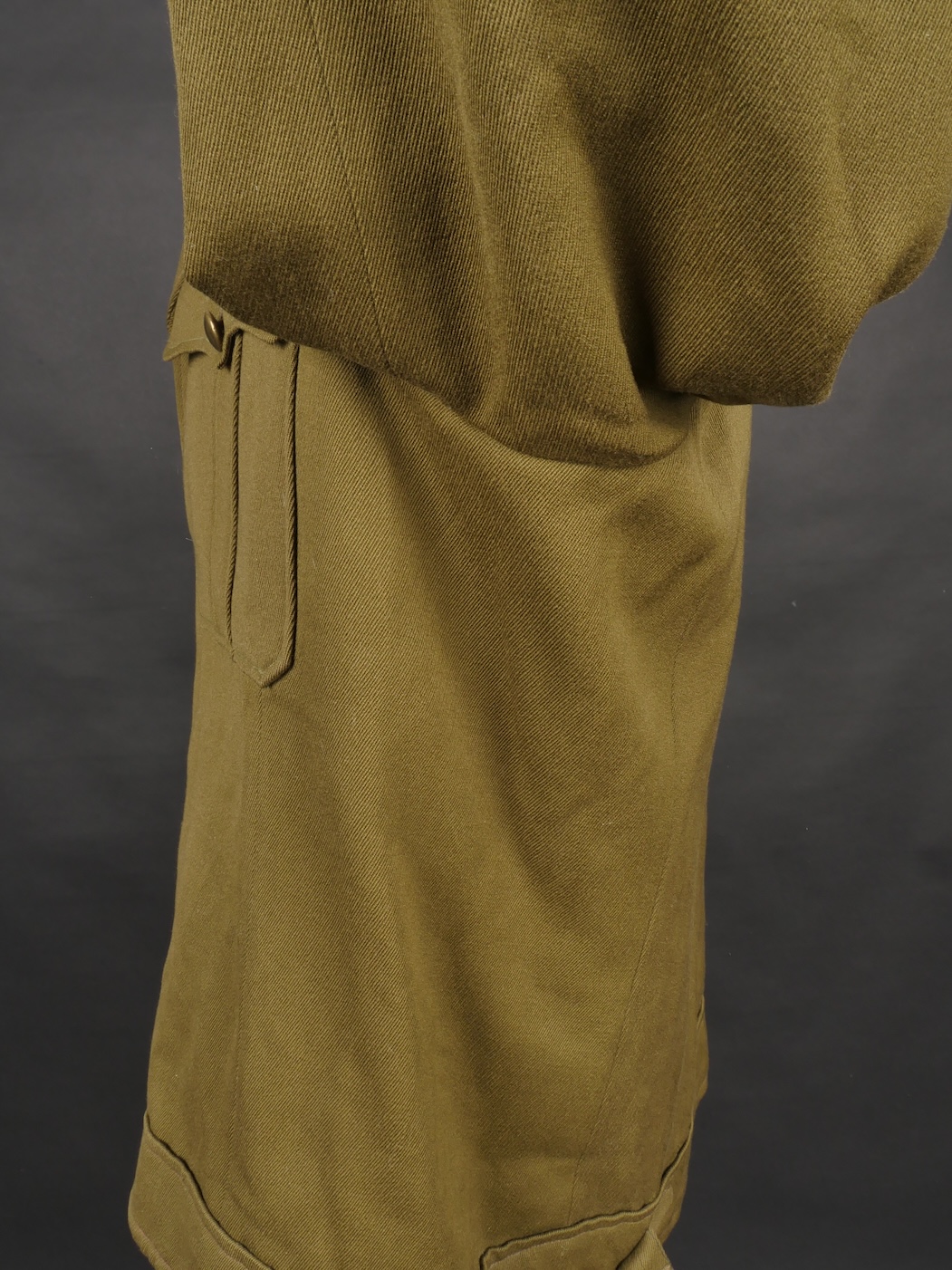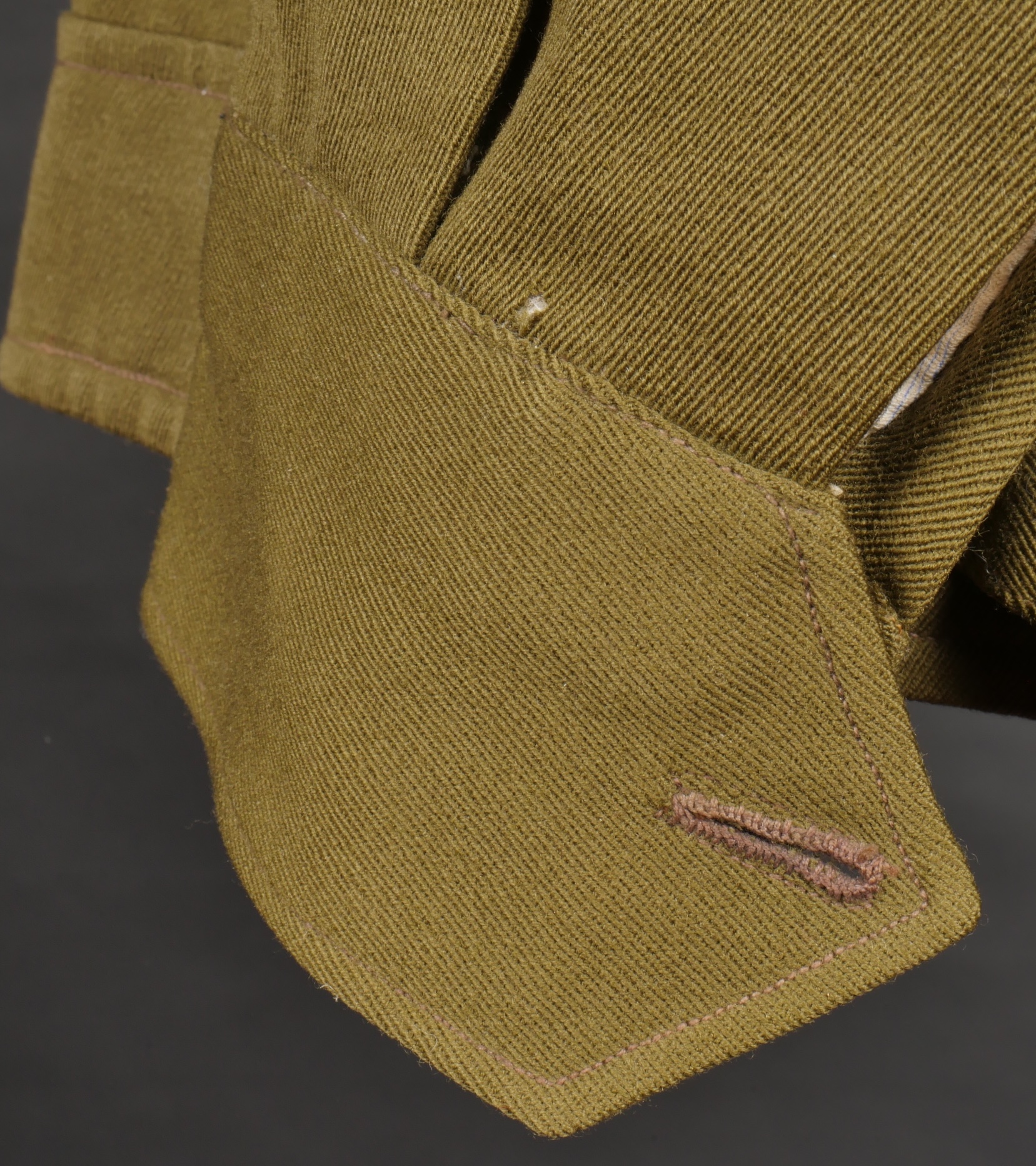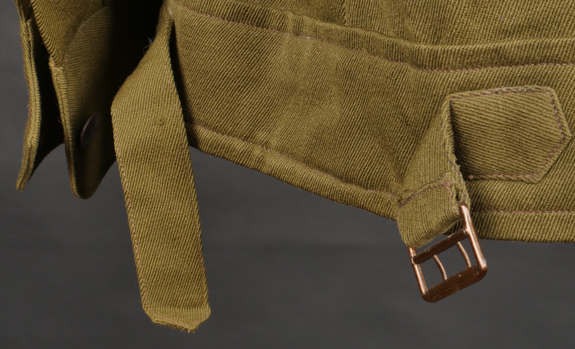 Beau blouson d’officier, copié sur le modèle IKE Américain mais confectionné localement en Indochine dans un drap peigné Kaki. Le blouson se ferme par 4 boutons lisses dorés, dont le... en savoir plus