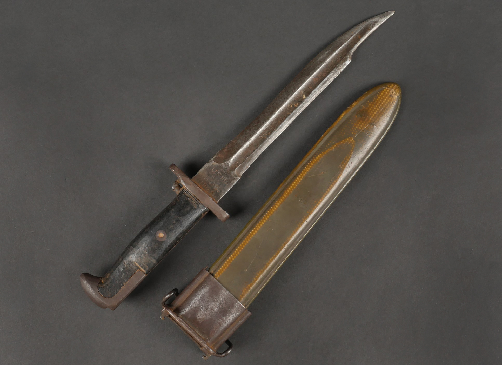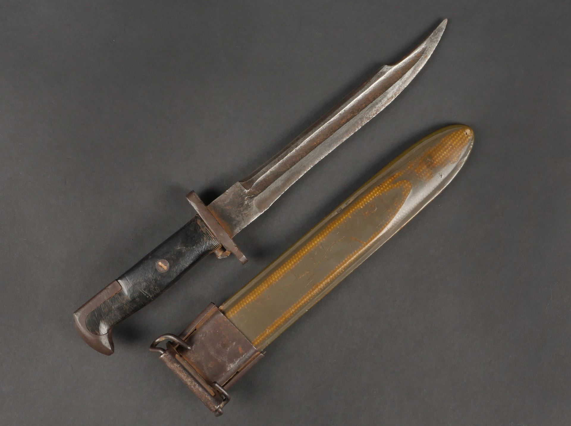Baïonnette 2ème Muong gravée. Baïonnette courte pour M1 Garand retaillée en poignard ayant appartenue au chef Szymanski du 2ème bataillon Muong. La lame de baïonnette possède le marquage... en savoir plus