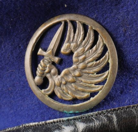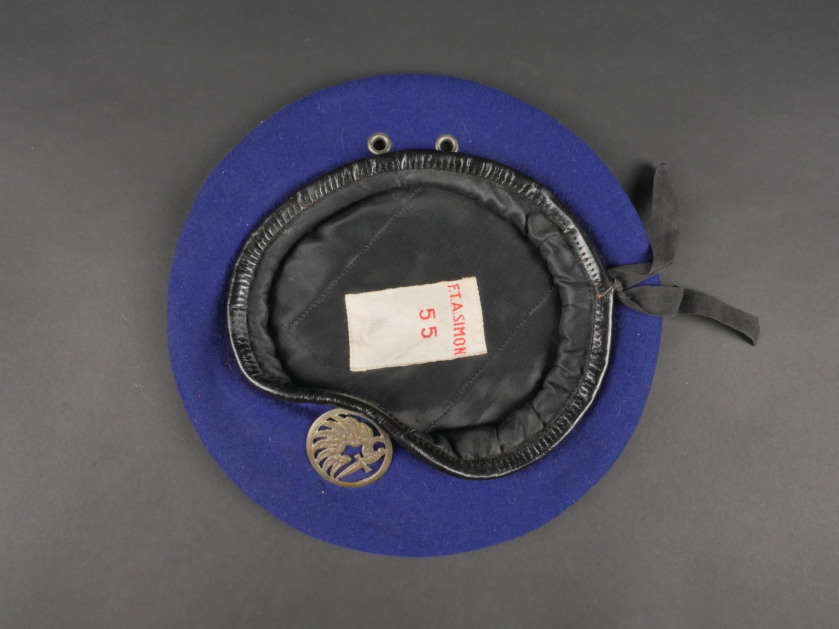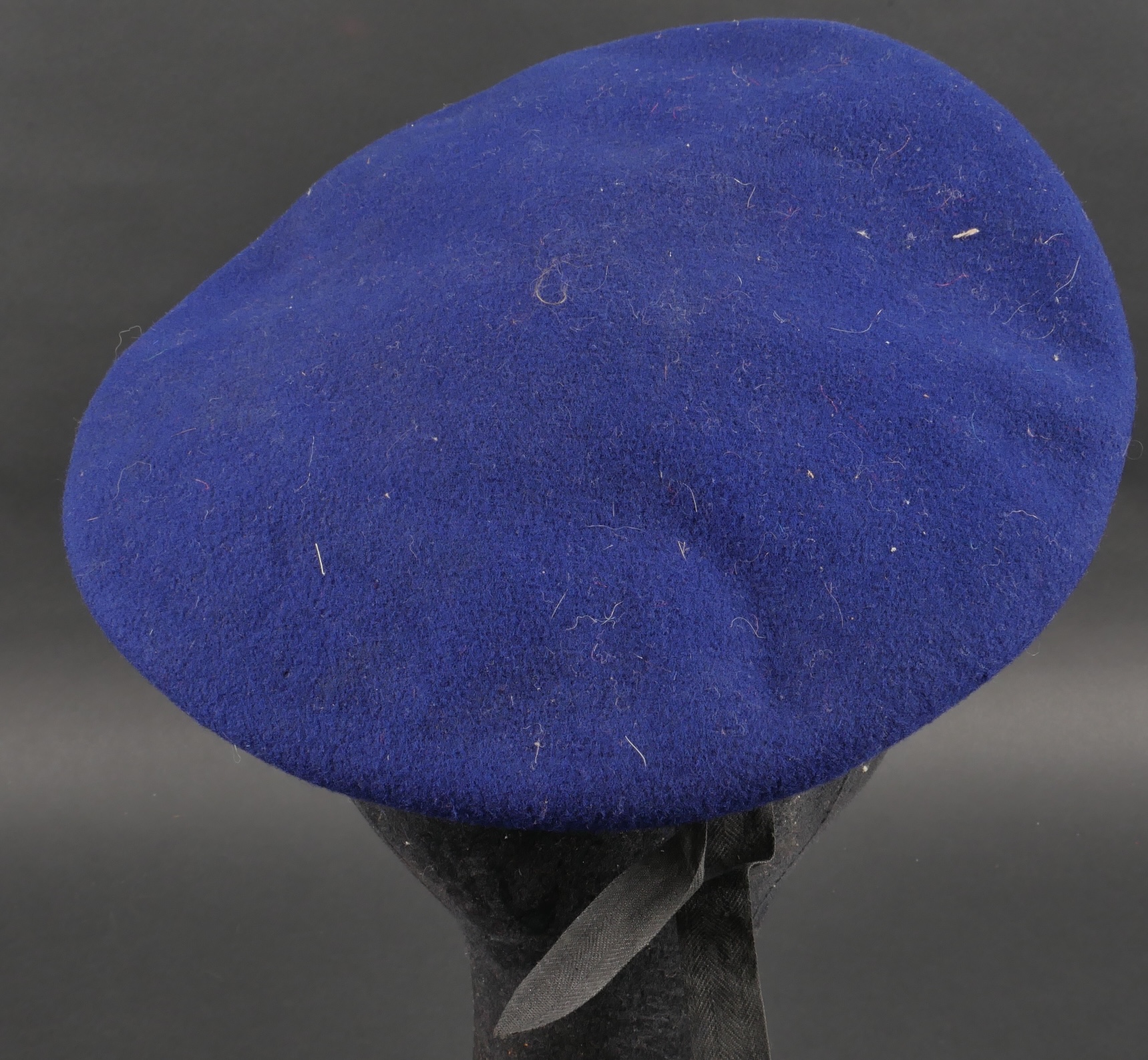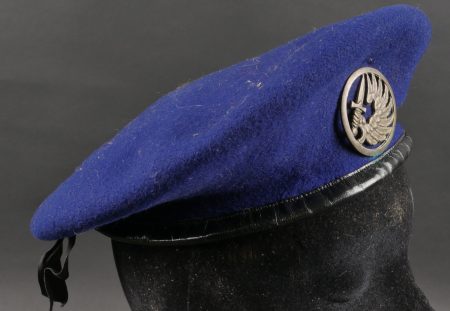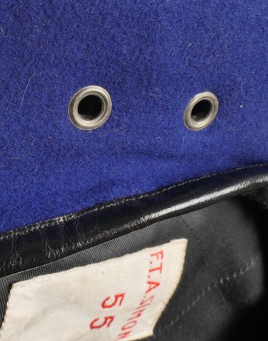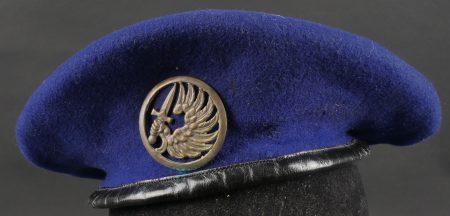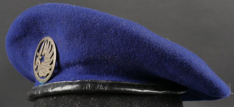 Béret parachutiste Type 52 pour Parachutistes métropolitains. Confectionné réglementairement en une seule pièce de laine foulée Bleu Roy. Doublure noire, coutures en losange, étiquette en... en savoir plus