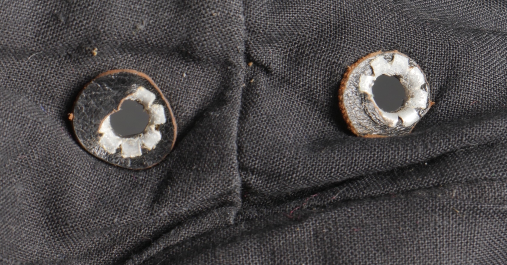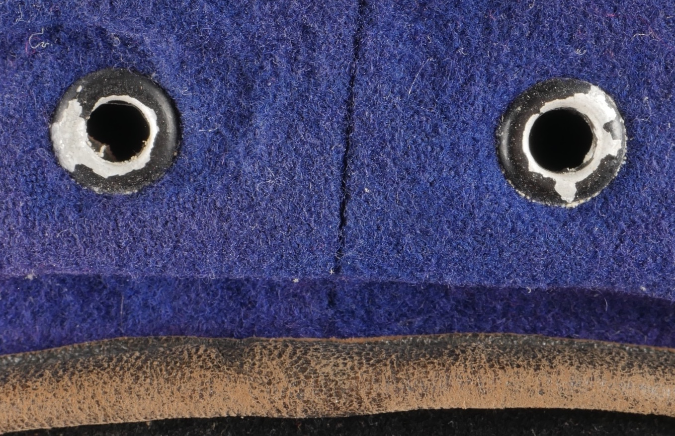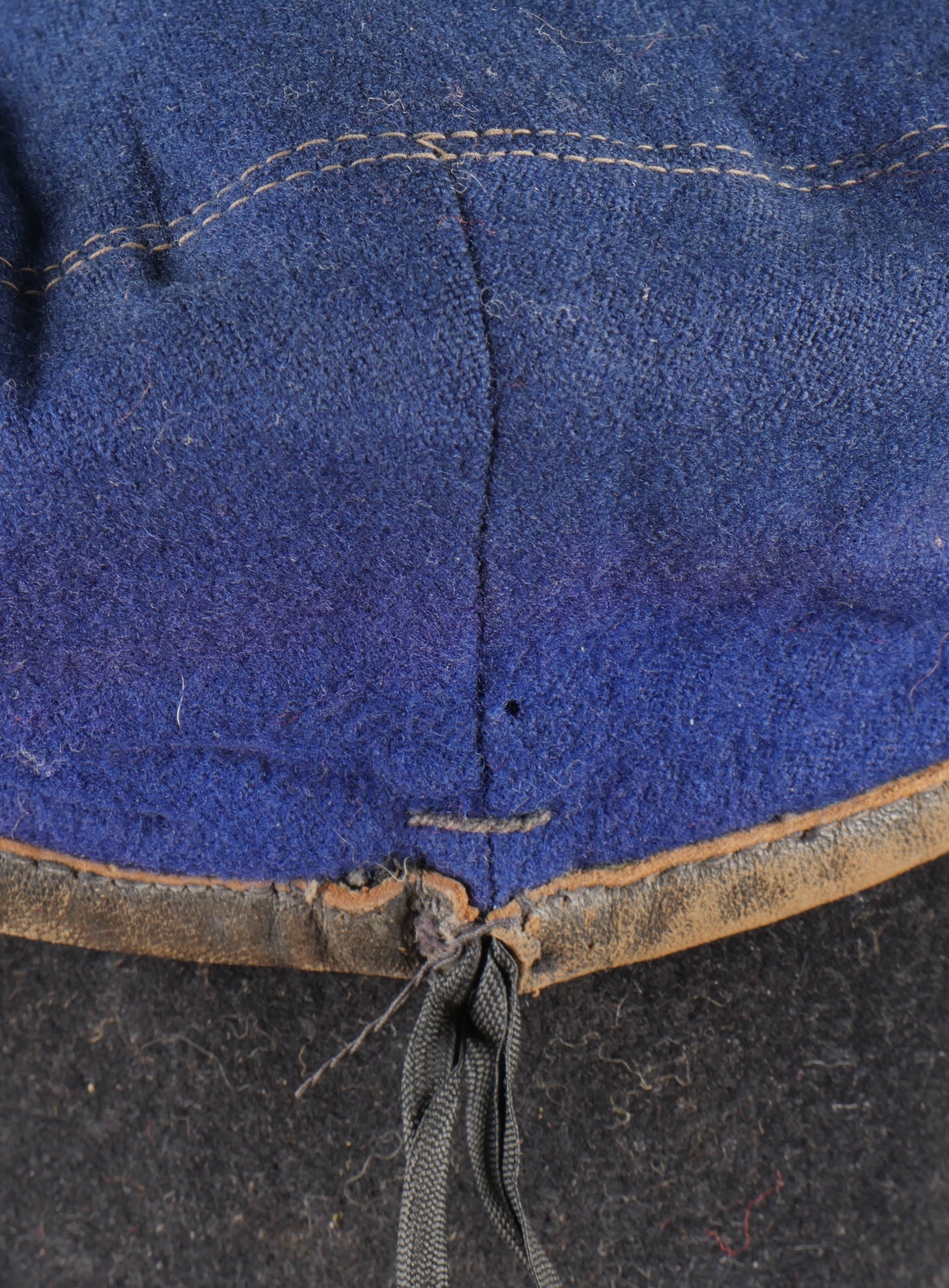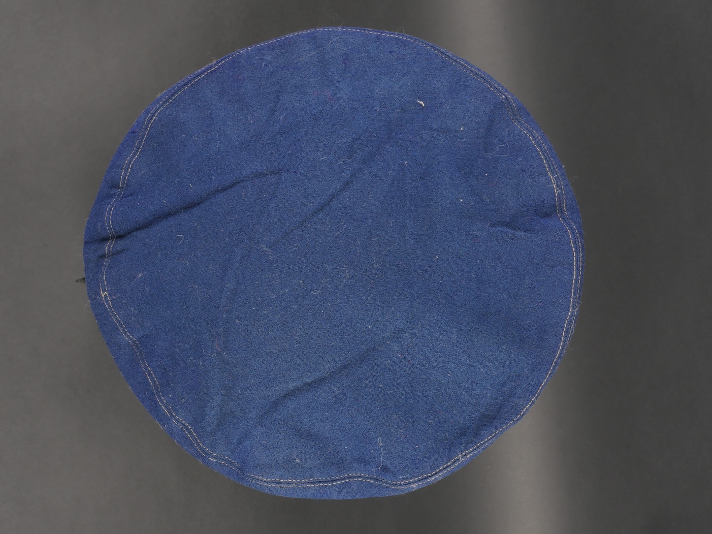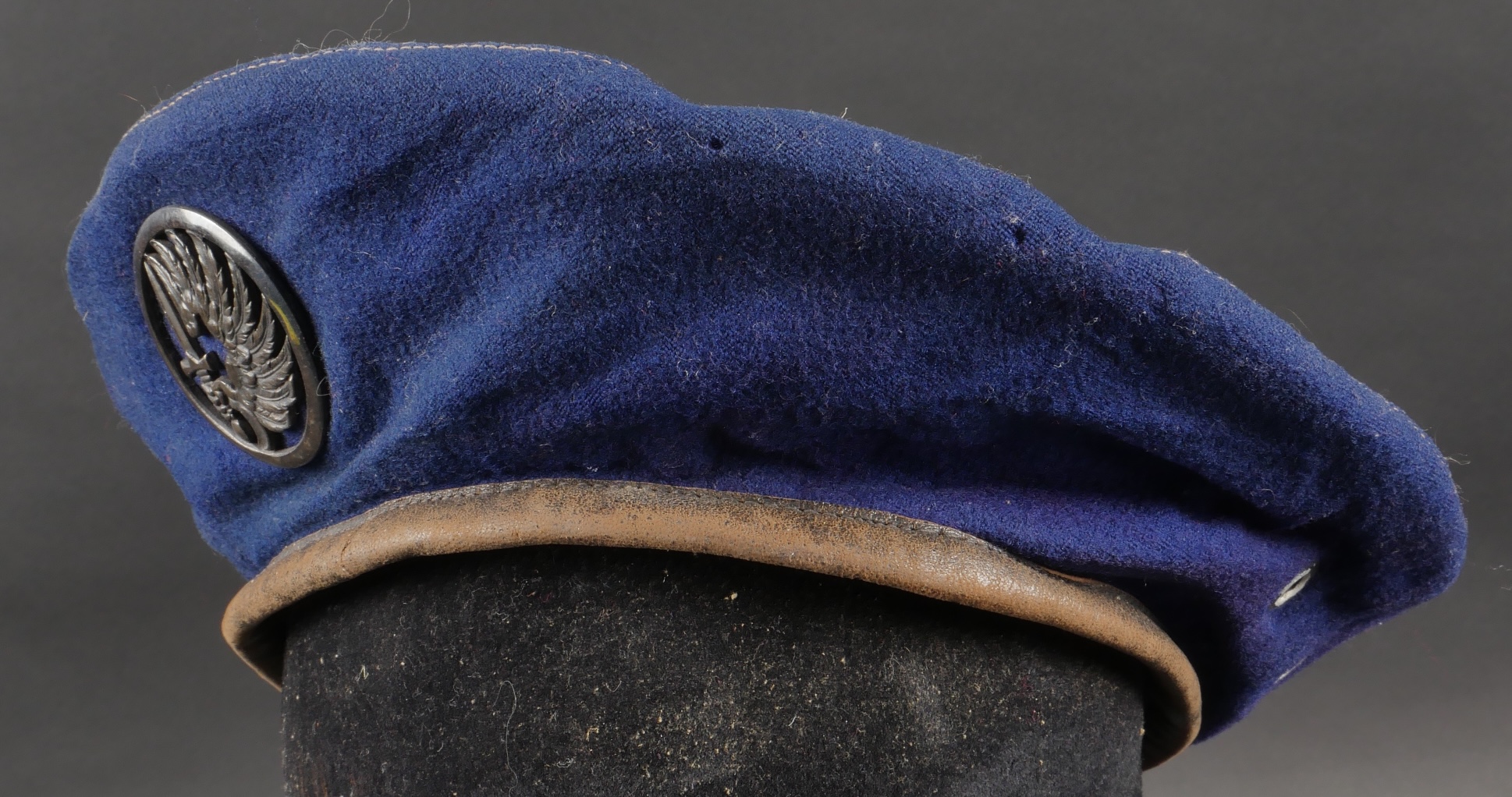 Béret Bleu Roy type commando en trois parties de fabrication réglementaire, Modèle 46. Doublure en coton noir quadrillée, 2 œillets en aluminium. Pourtour en cuir noirci. L’insigne est... en savoir plus