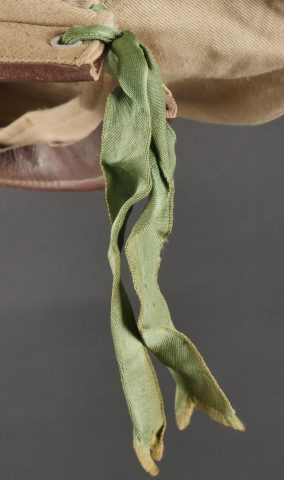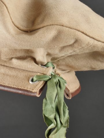 Béret dit Gurkha de confection française. Confectionné en 3 parties, en coton kaki clair. Flots vert correspondant à l’arme du Train passants par 4 œillets en aluminium. Bandeau en cuir... en savoir plus
