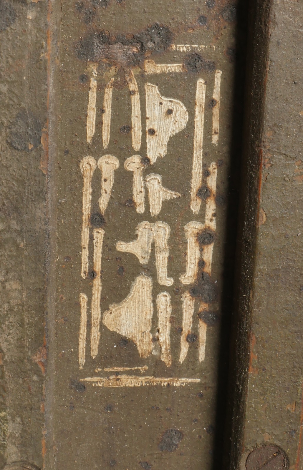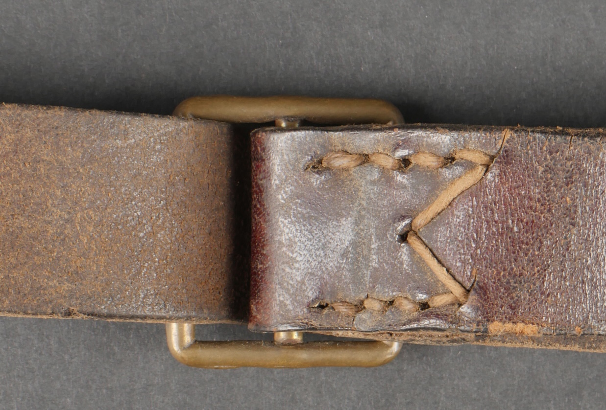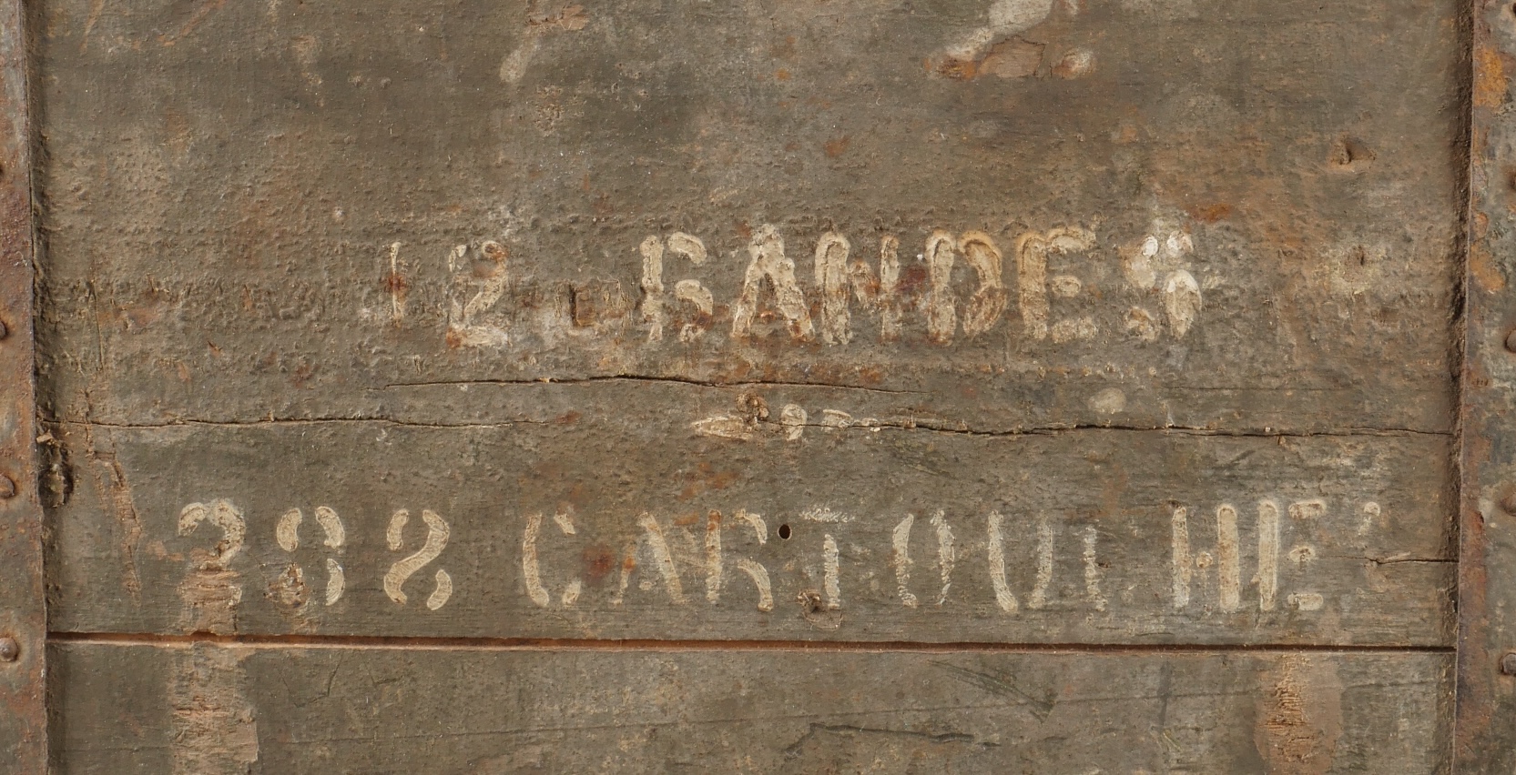 Boite Hotchkiss et bretelles. Comprenant une belle caisse à munitions pour bandes Hotchkiss, en bois, marquage 12 bandes 288 cartouches, peinture verte d’origine, avec ses poignées cuir,... en savoir plus