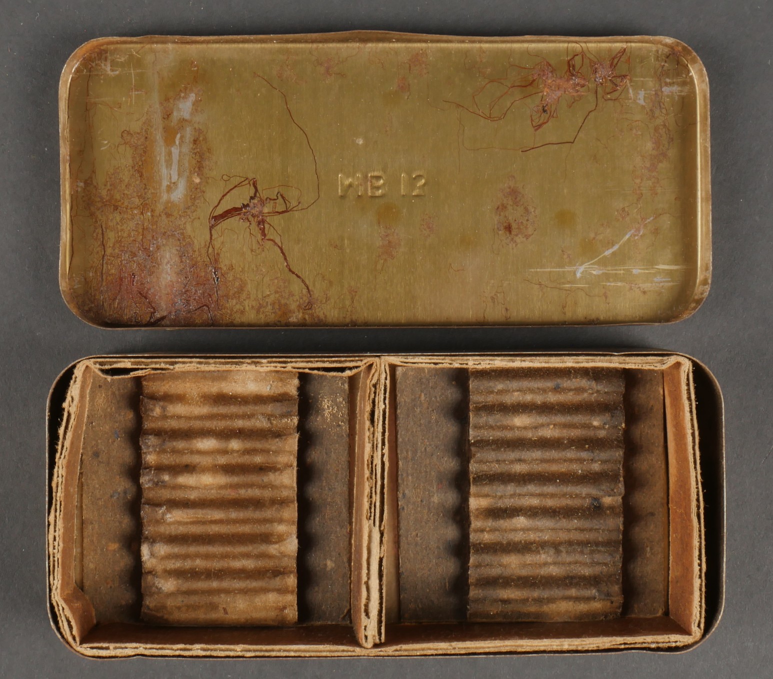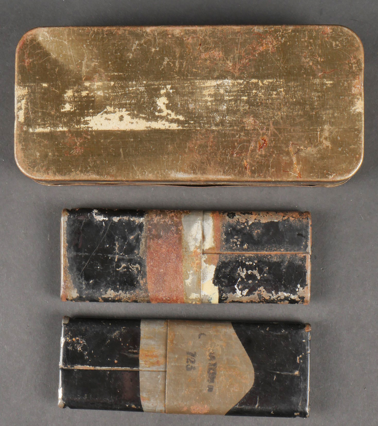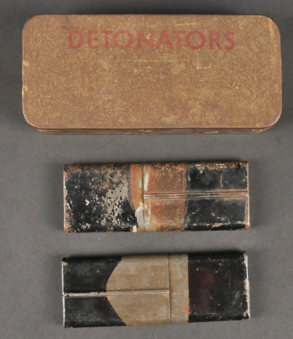 Boîtes crayons à retardement. Deux boîte pour crayons allumeur à retardement, de fabrication britannique dont une possède toujours son tampon où l’on peut lire C 723. Peinture noire... en savoir plus