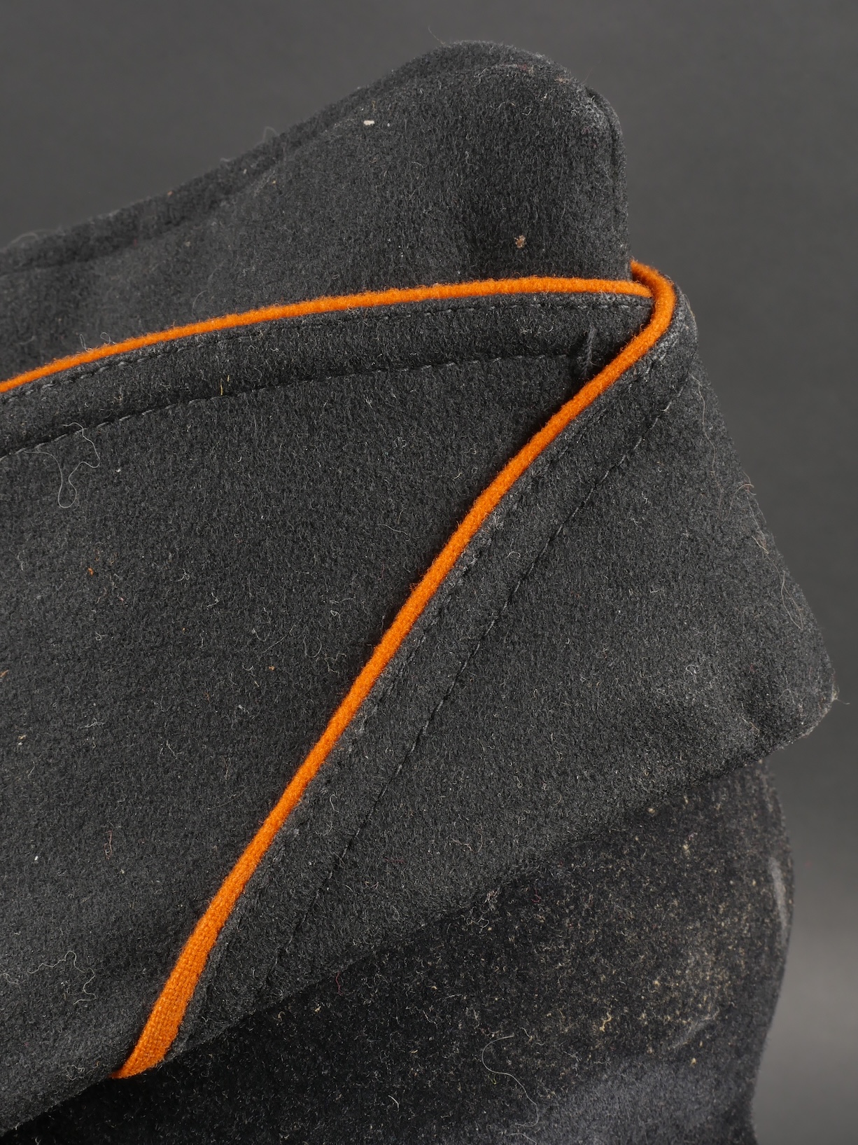 Bonnet de police spécifique aux Aumôniers militaires, confectionné en drap de laine noir, avec ses passepoils orange. Bandeau intérieur en cuir fin noir. Croix catholique brodé en canetille... en savoir plus