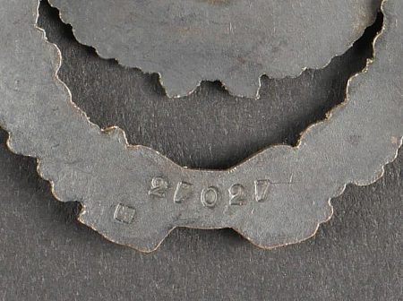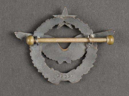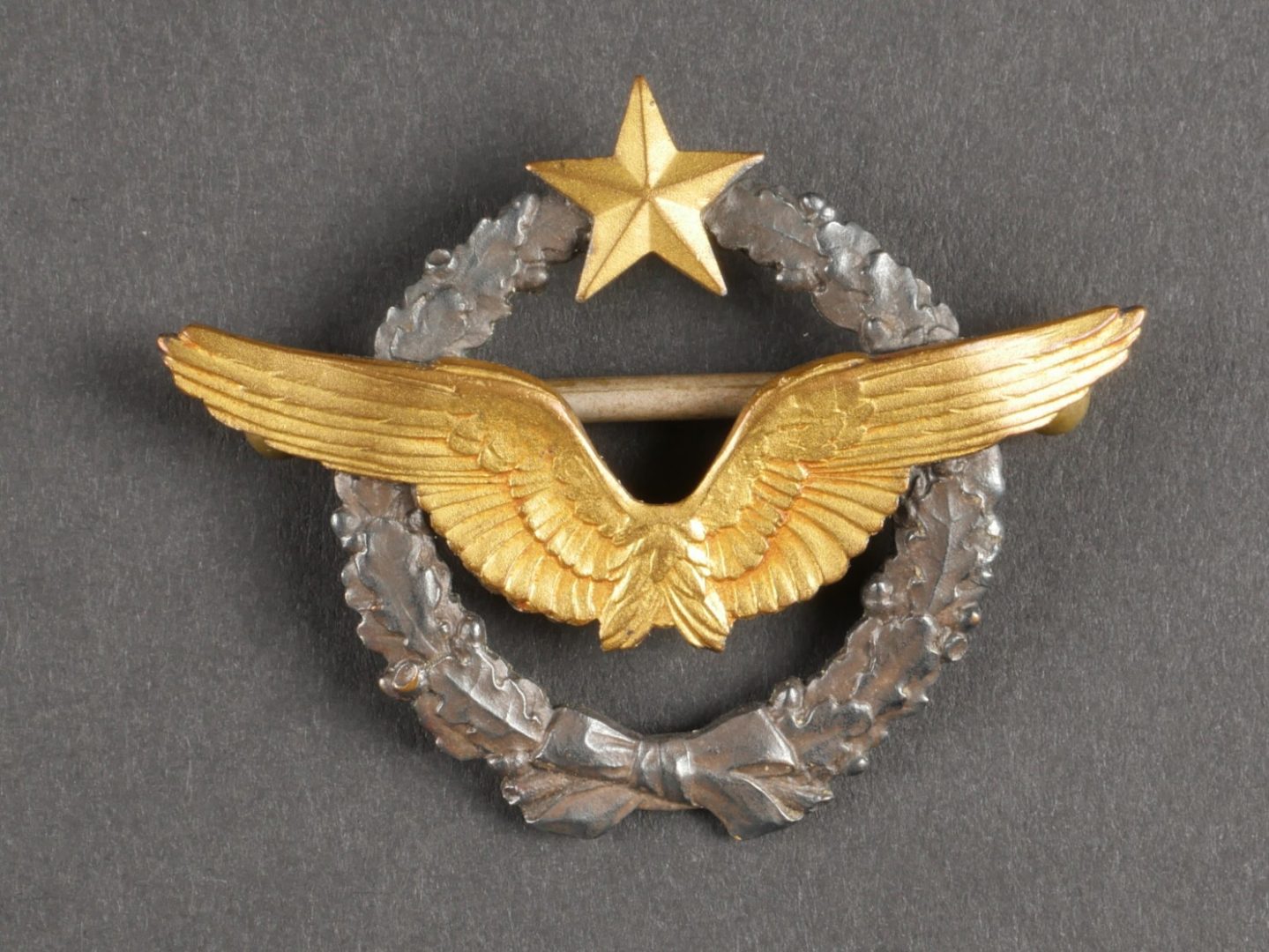 Brevet de pilote années 1940. Fabrication métallique en trois parties, portant le numéro 27027. Petit poinçon présent. Pilot brevet 1940s. Metal threepart construction numbered 27027 with... en savoir plus