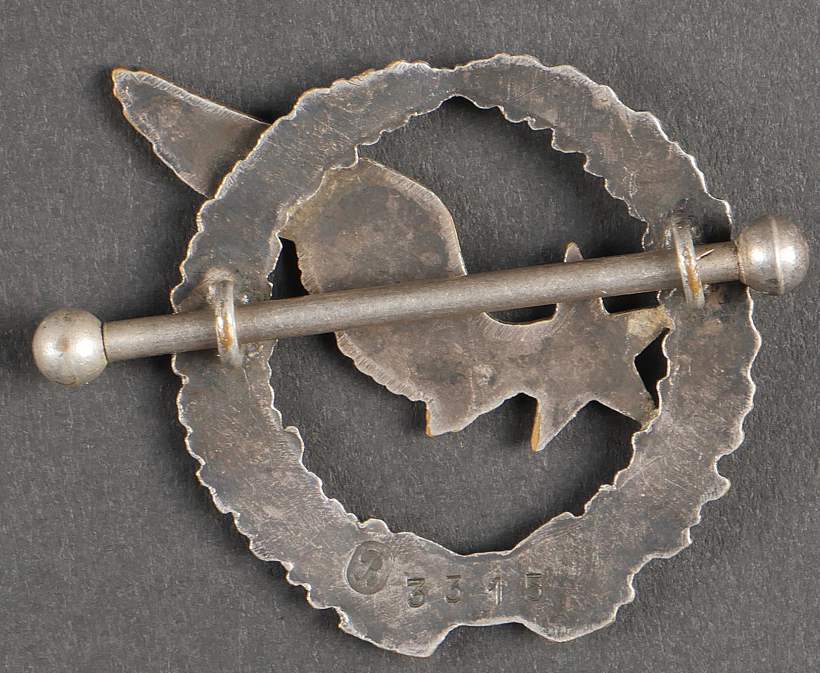 Brevet d’observateur première guerre. Modèle réglementaire en deux parties portant le numéro 3315 et précédé de la lettre B à l’anglaise. First World War observer brevet. Regulation twopart construction numbered 3315 preceded by the letter B in English style.