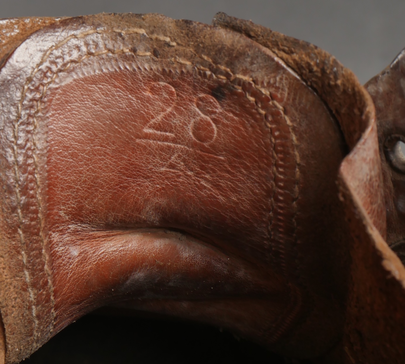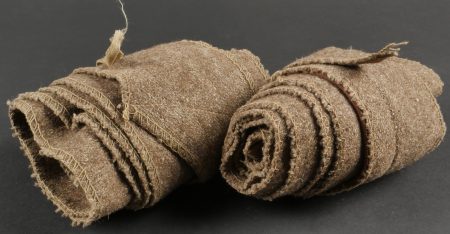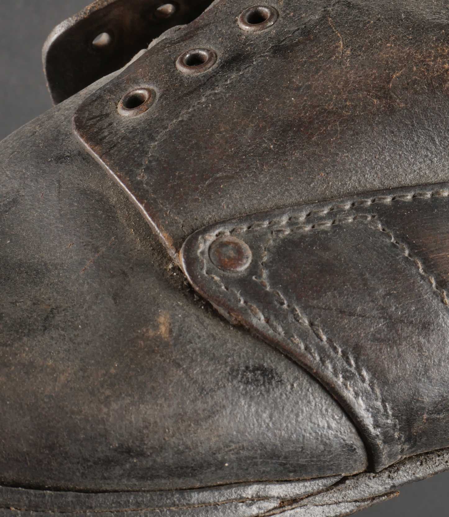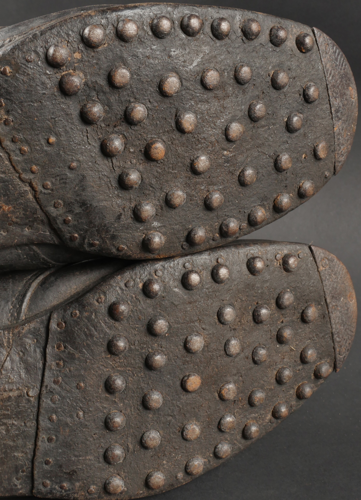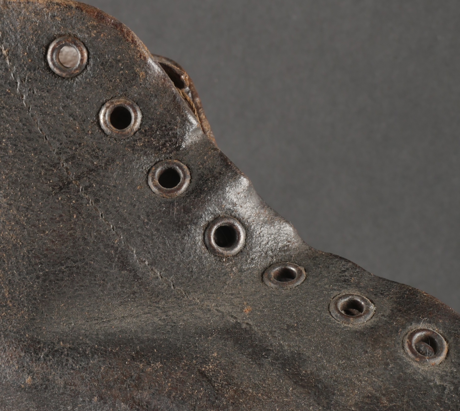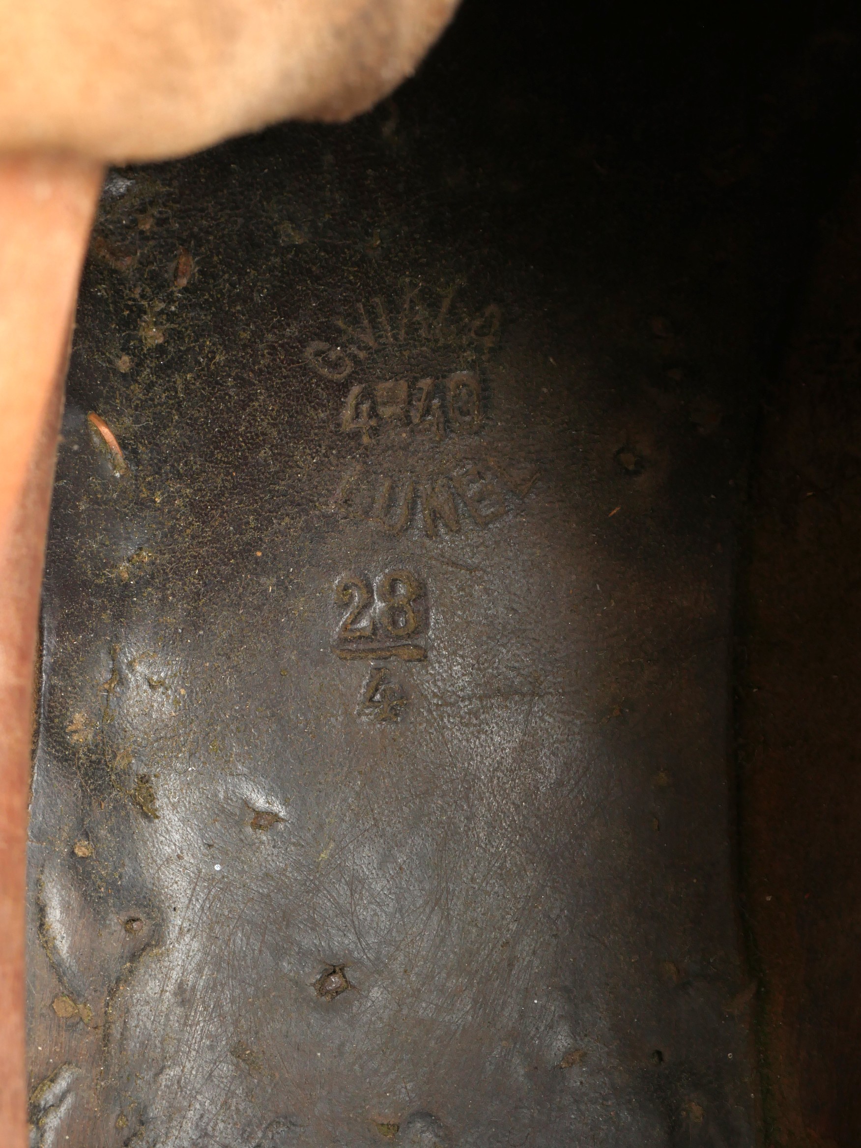 Brodequins 1917. En cuir marron, rivets de renfort sur chaque brodequin, tous les œillets sont présents. Sur les semelles intérieures est lisible la taille 284 ainsi que le fabricant Viala à... en savoir plus