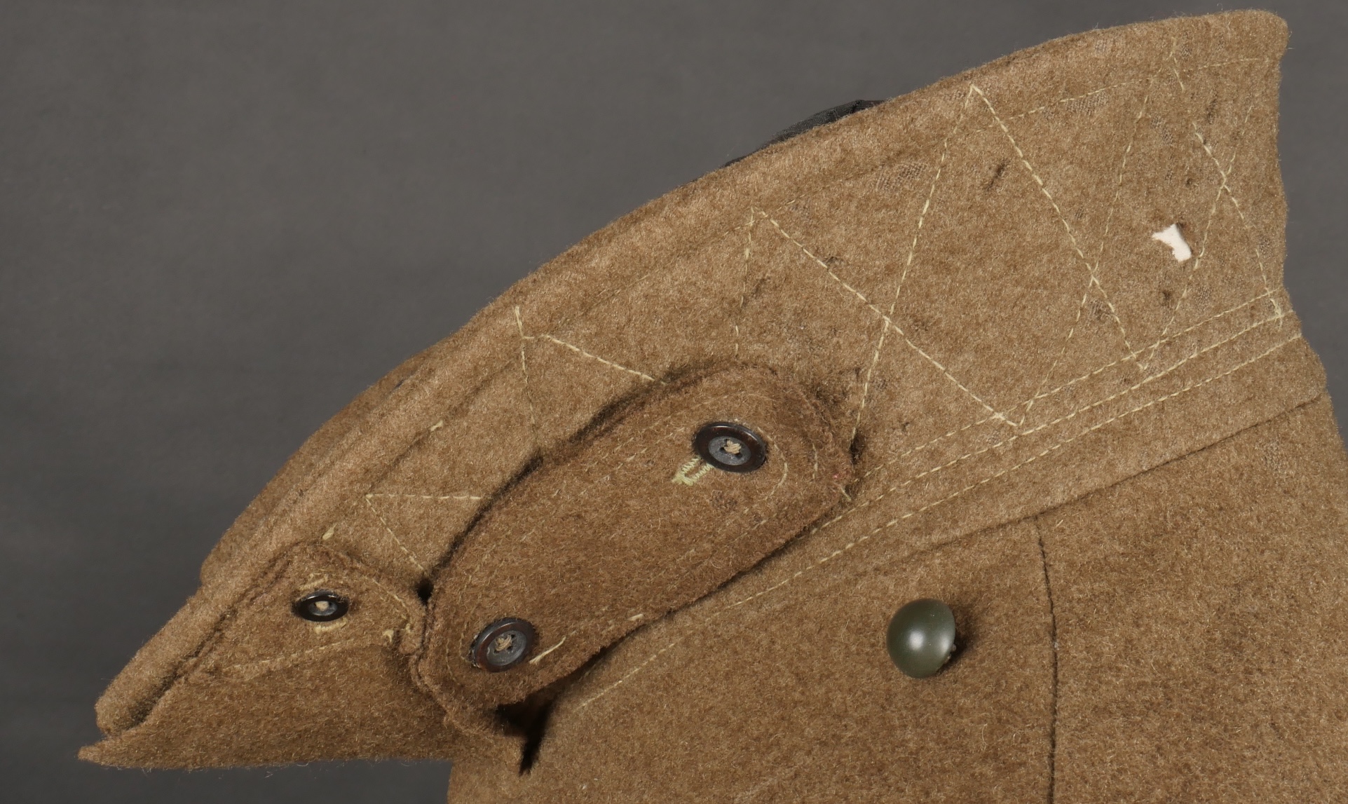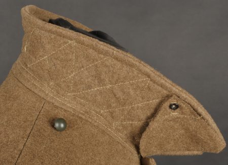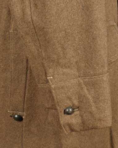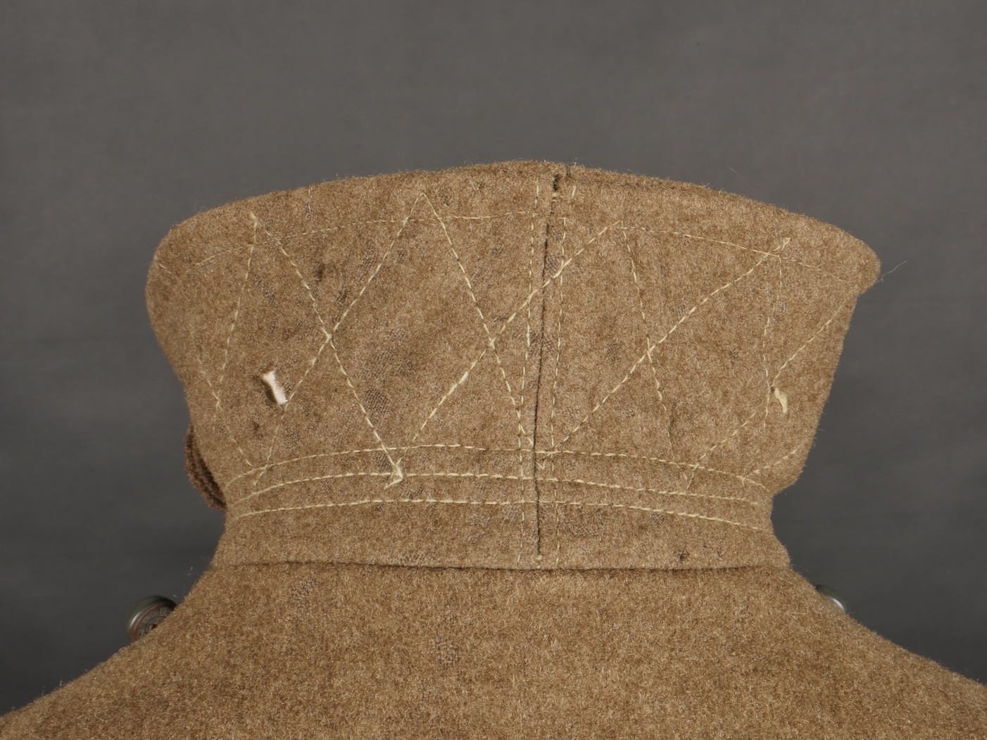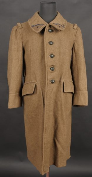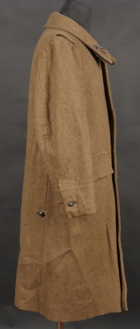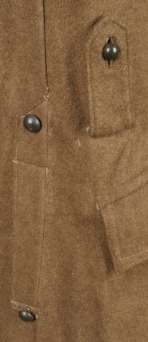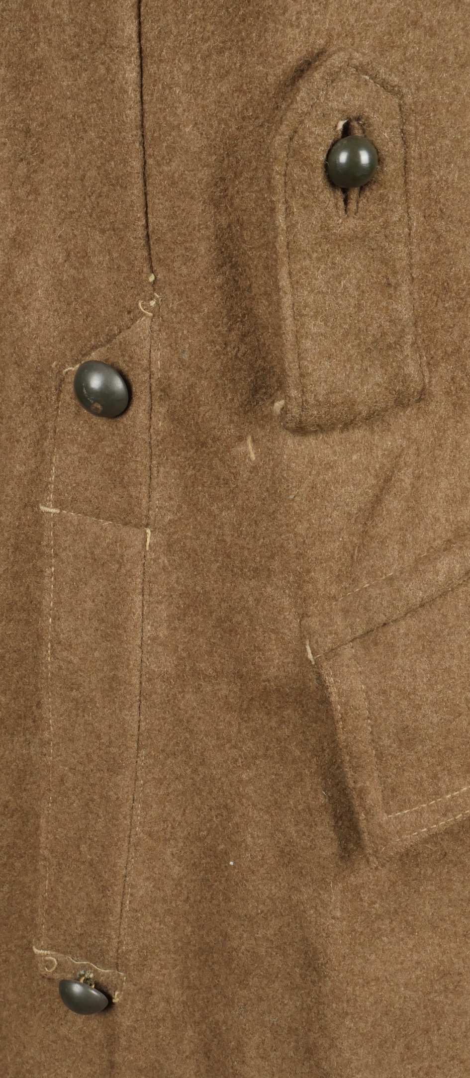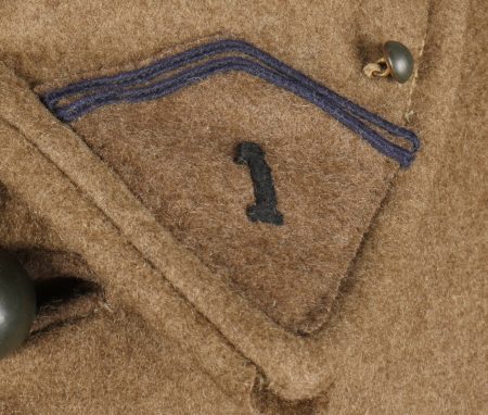 Capote 1938 1er RI. En drap kaki et se fermant par cinq boutons, pattes de col du 1er RI, chiffre bleu et deux soutaches bleues, volets de dissimulation cousus d’origine. Passants de... en savoir plus