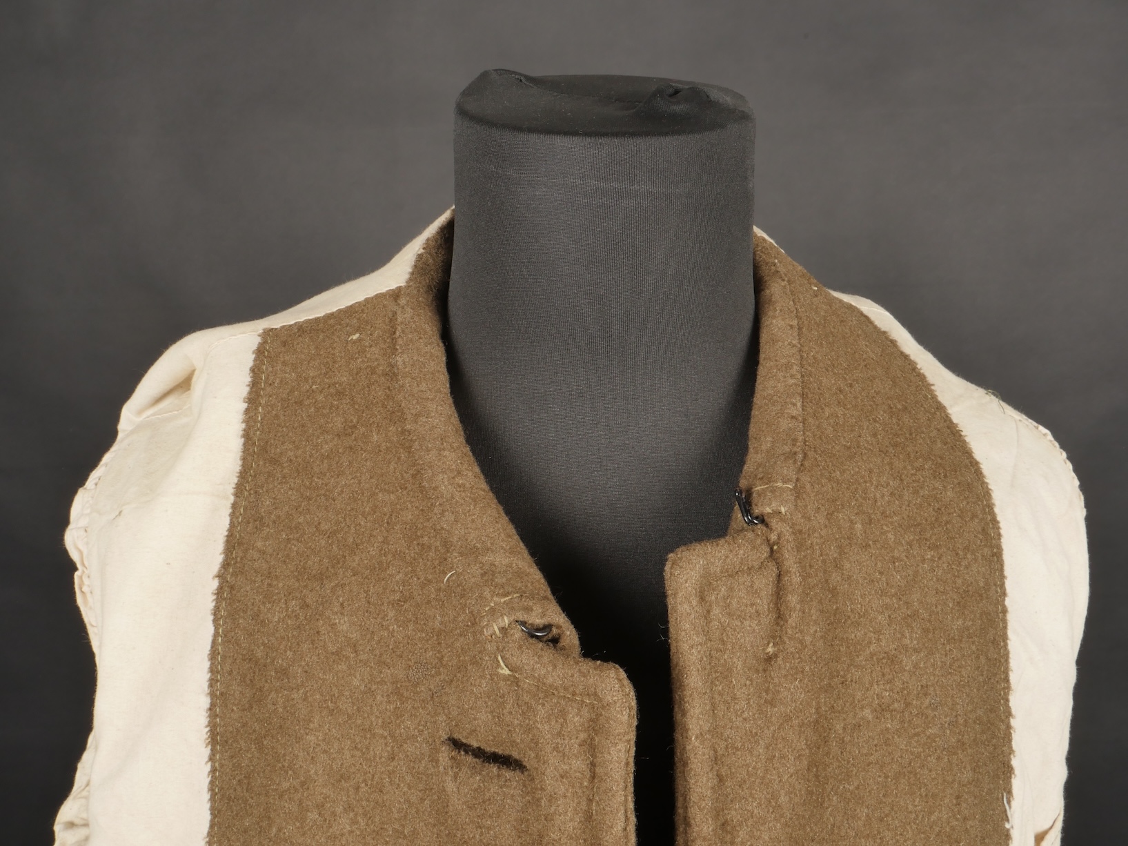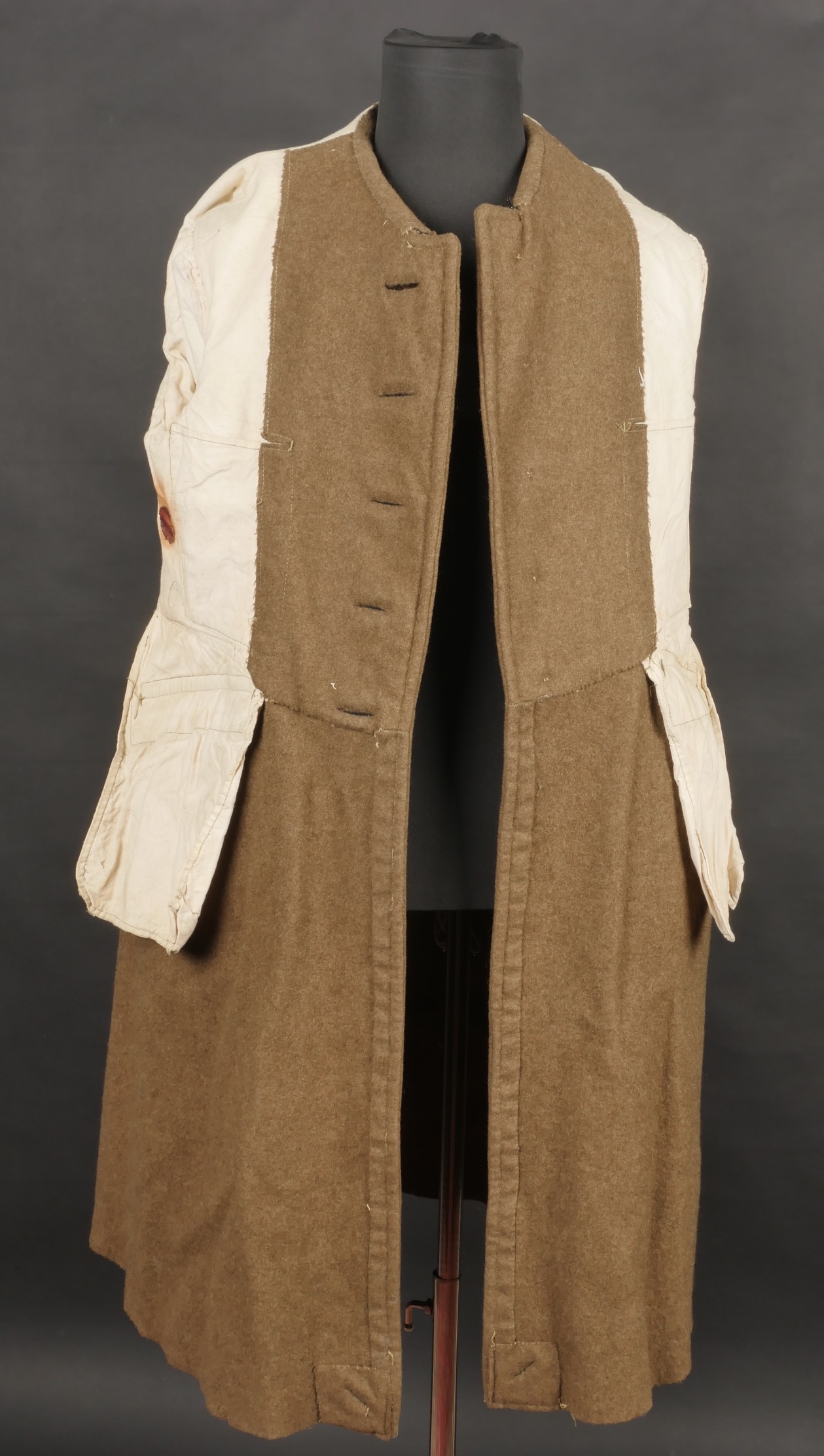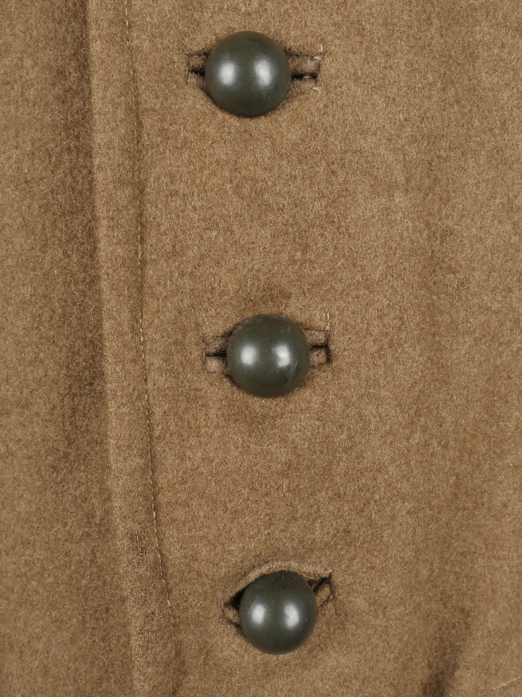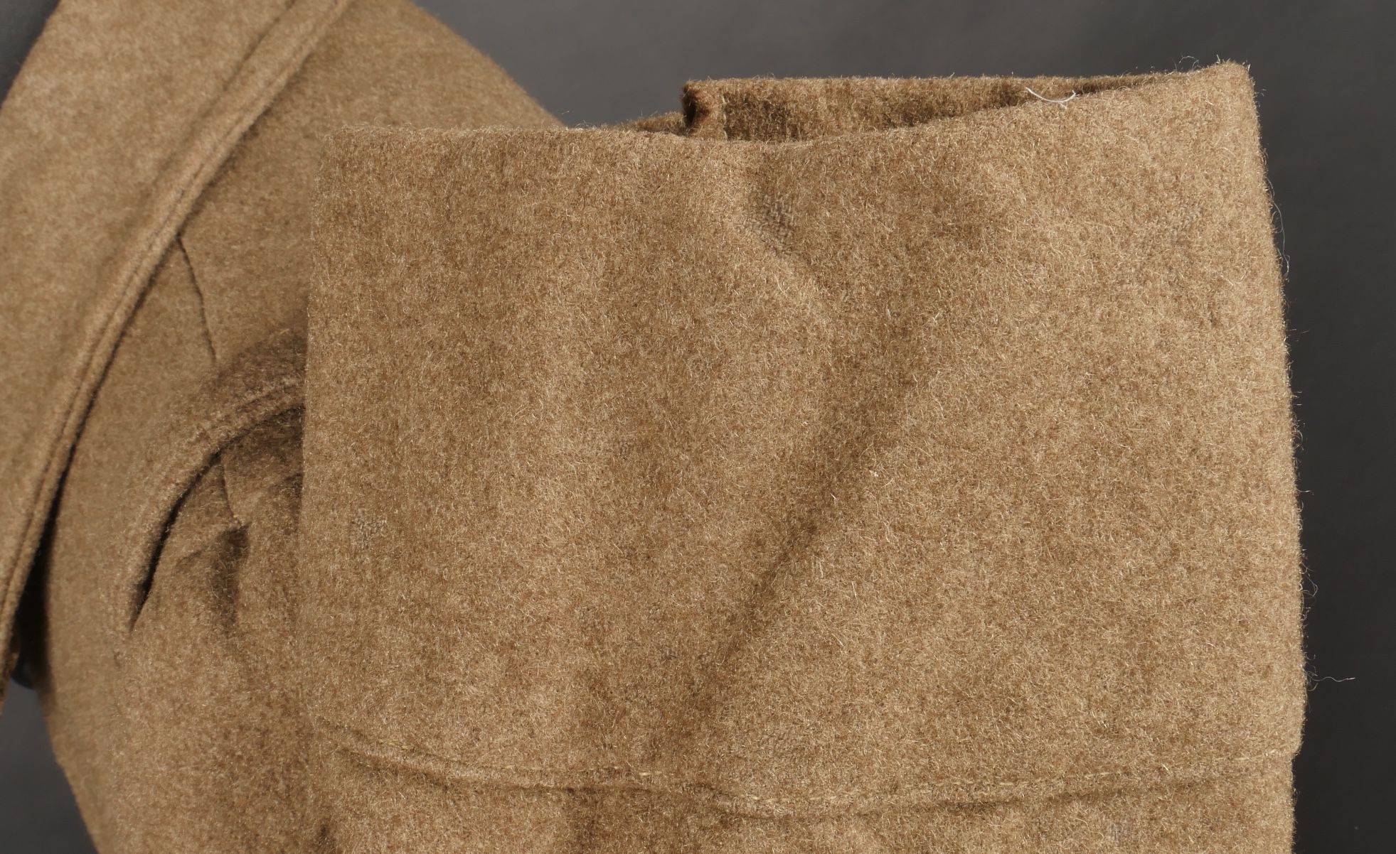 Capote 1938 1er RI. En drap kaki et se fermant par cinq boutons, pattes de col du 1er RI, chiffre bleu et deux soutaches bleues, volets de dissimulation cousus d’origine. Passants de... en savoir plus