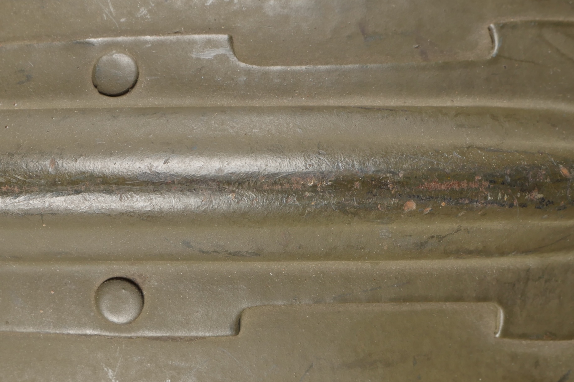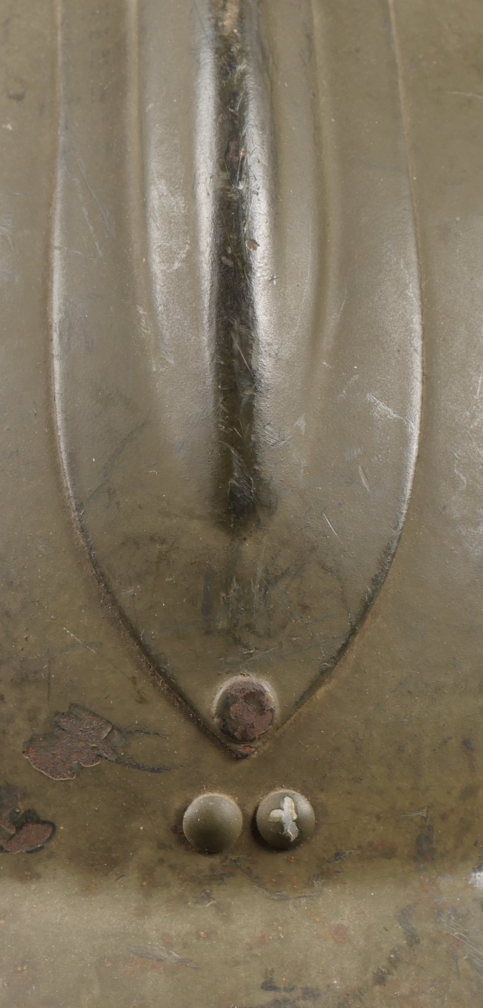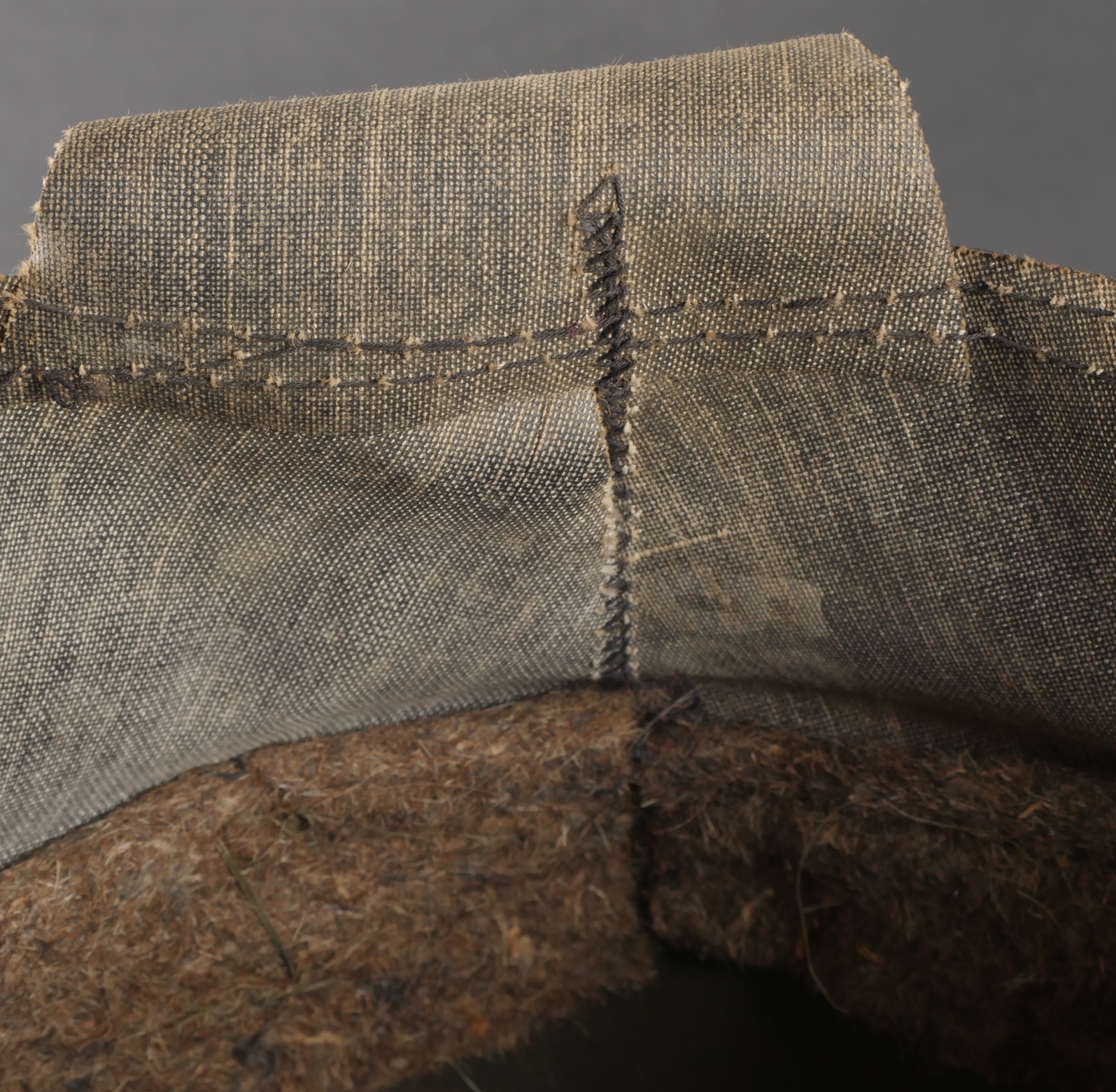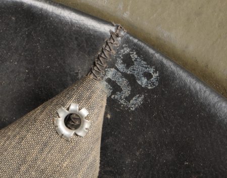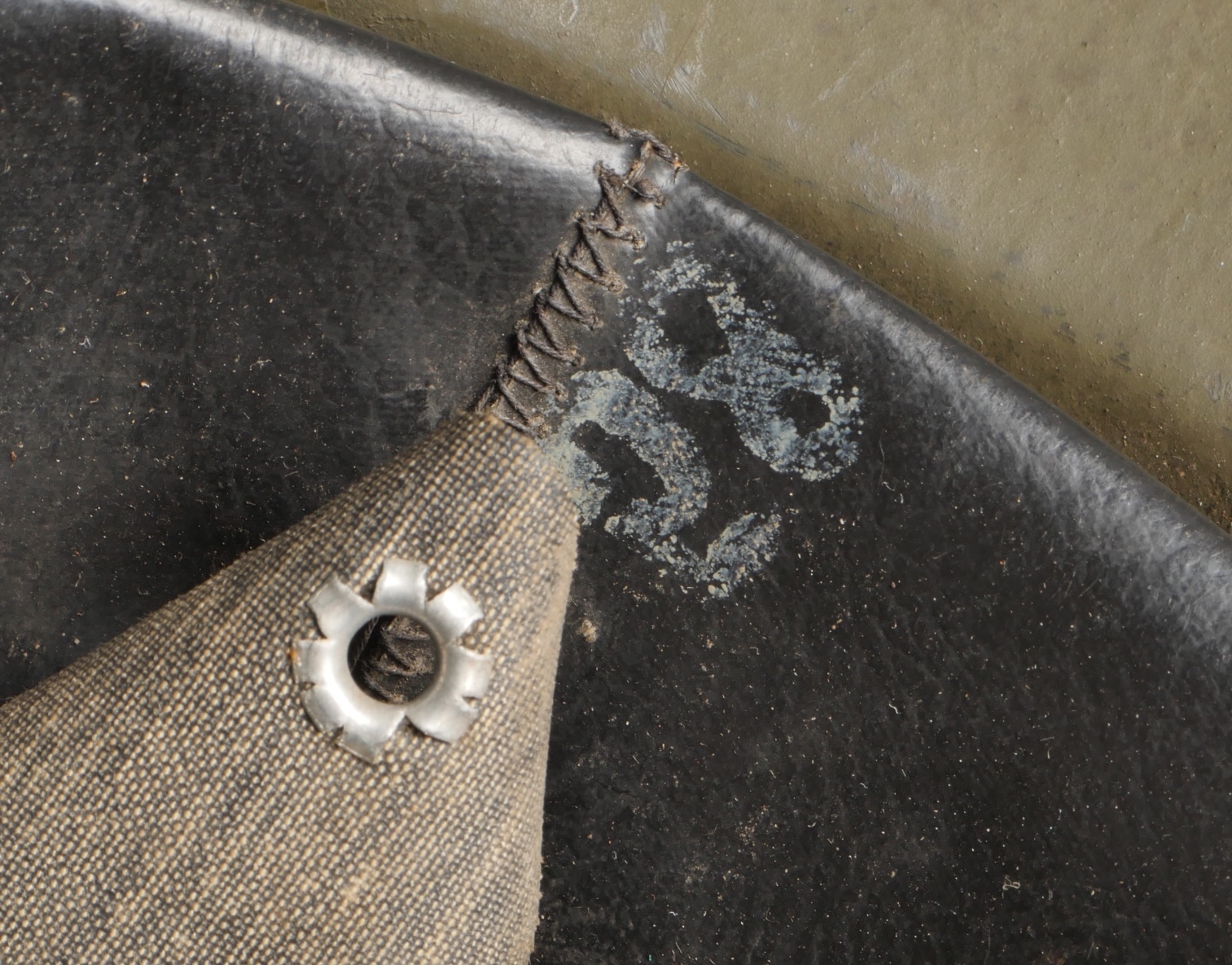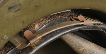 Casque Adrian 1926 service de santé. Modèle 1926, peinture kaki à 95%, attribut modèle 1915 en peinture kaki du service de santé. Coiffe à six dents de loup en toile cirée de type défense... en savoir plus