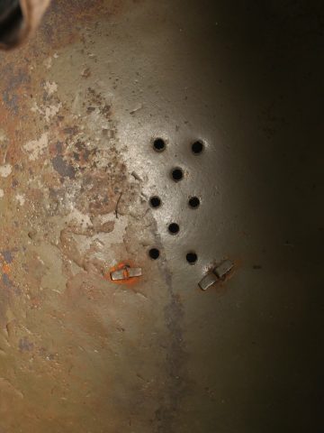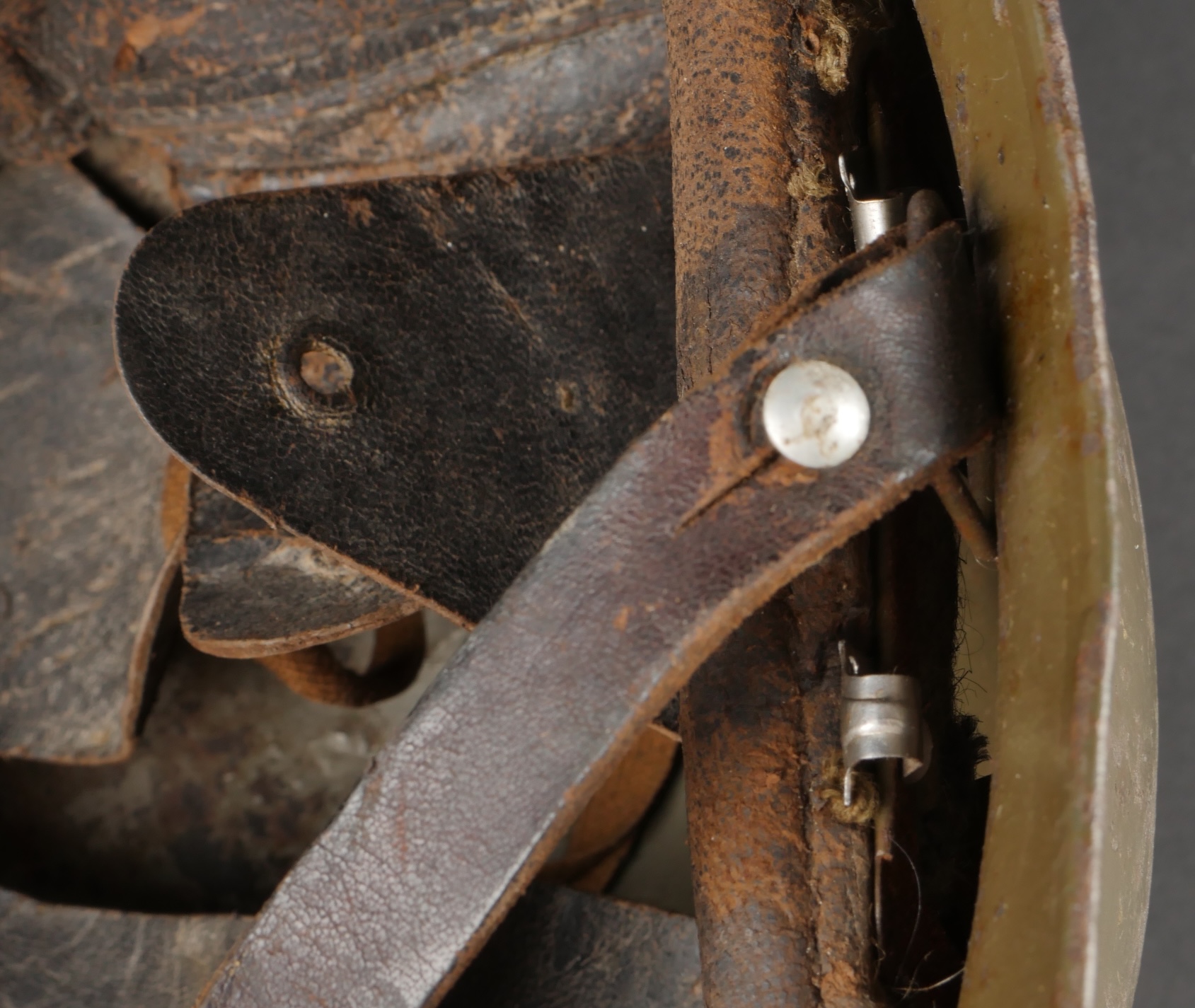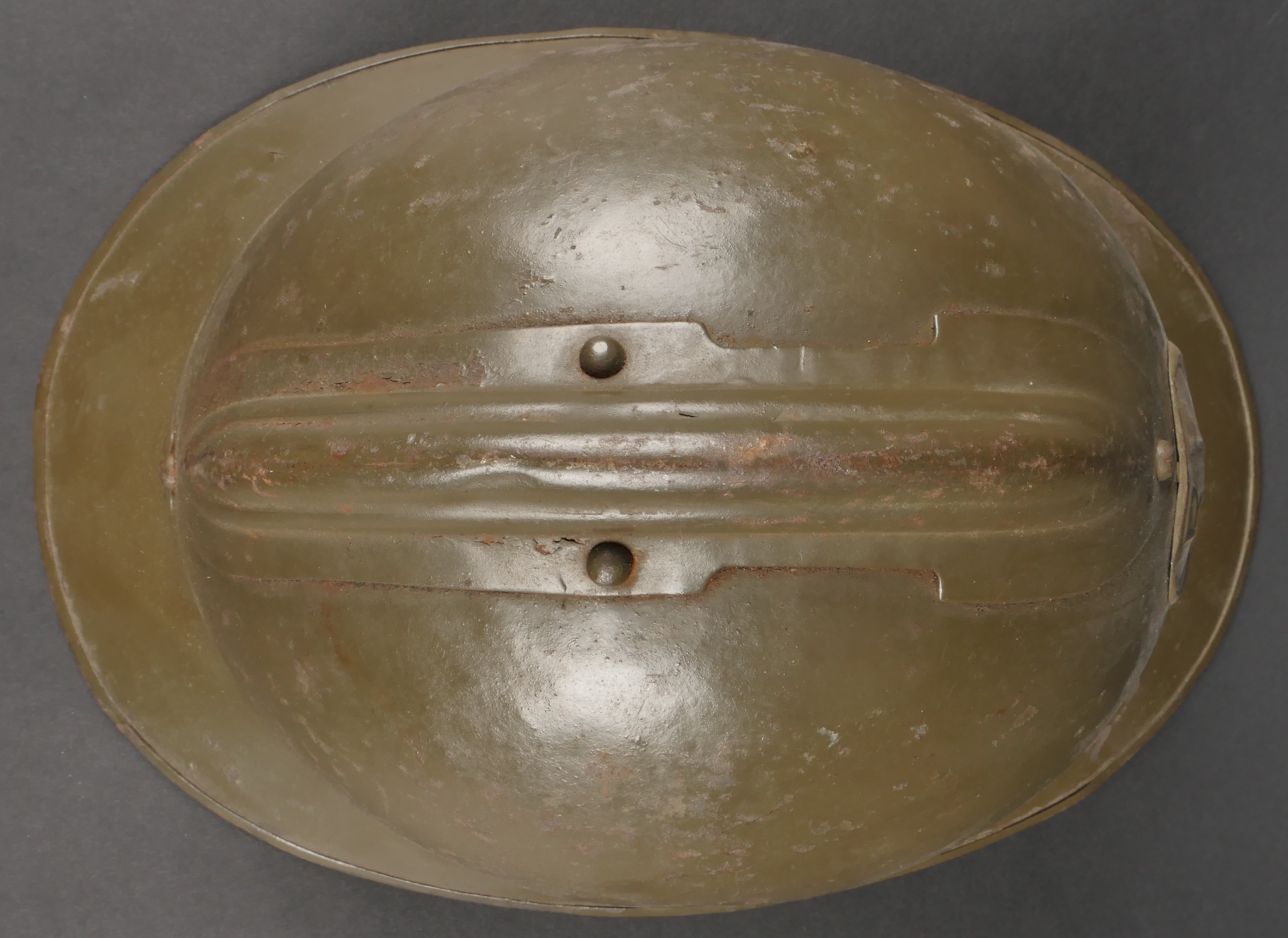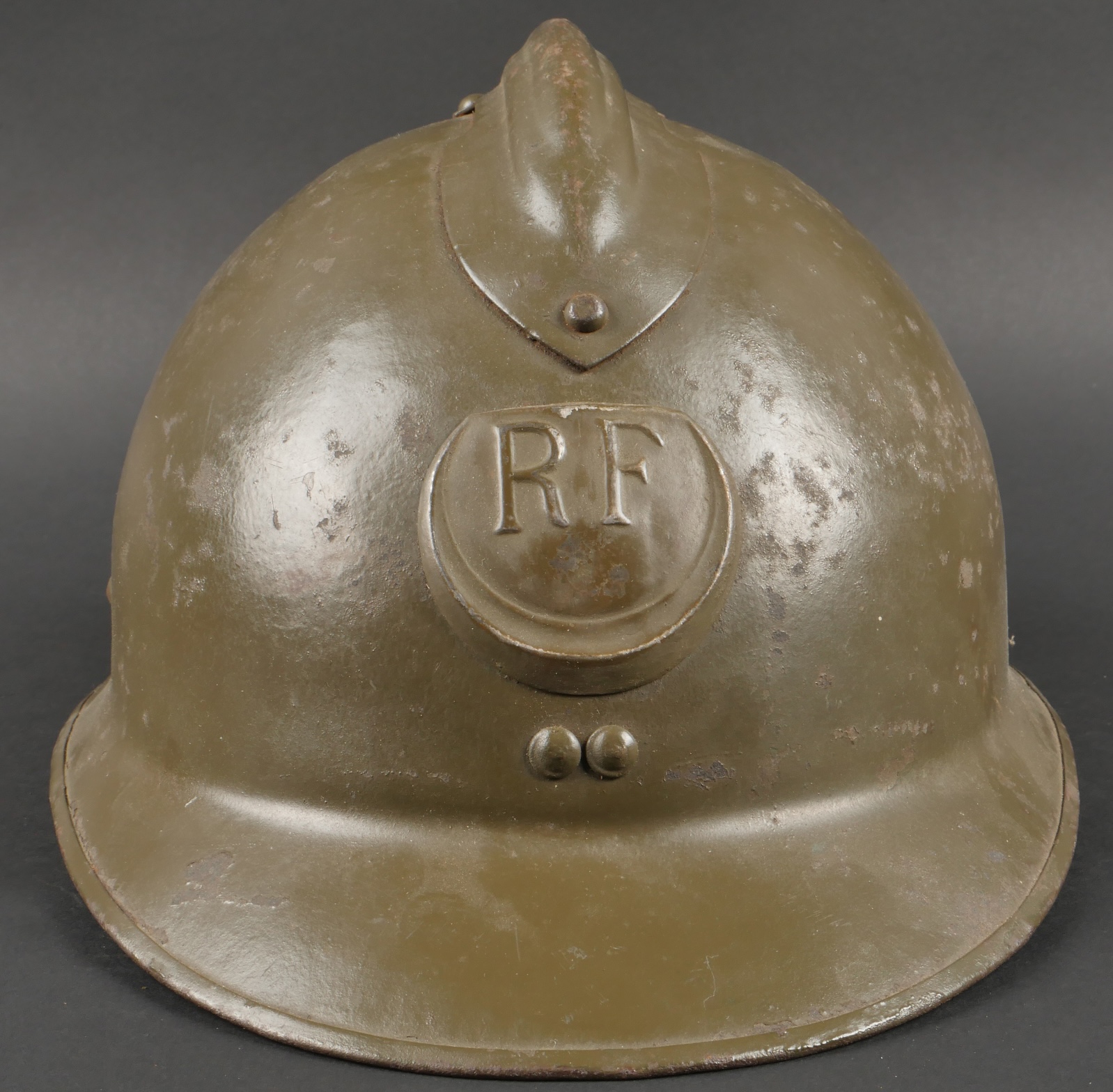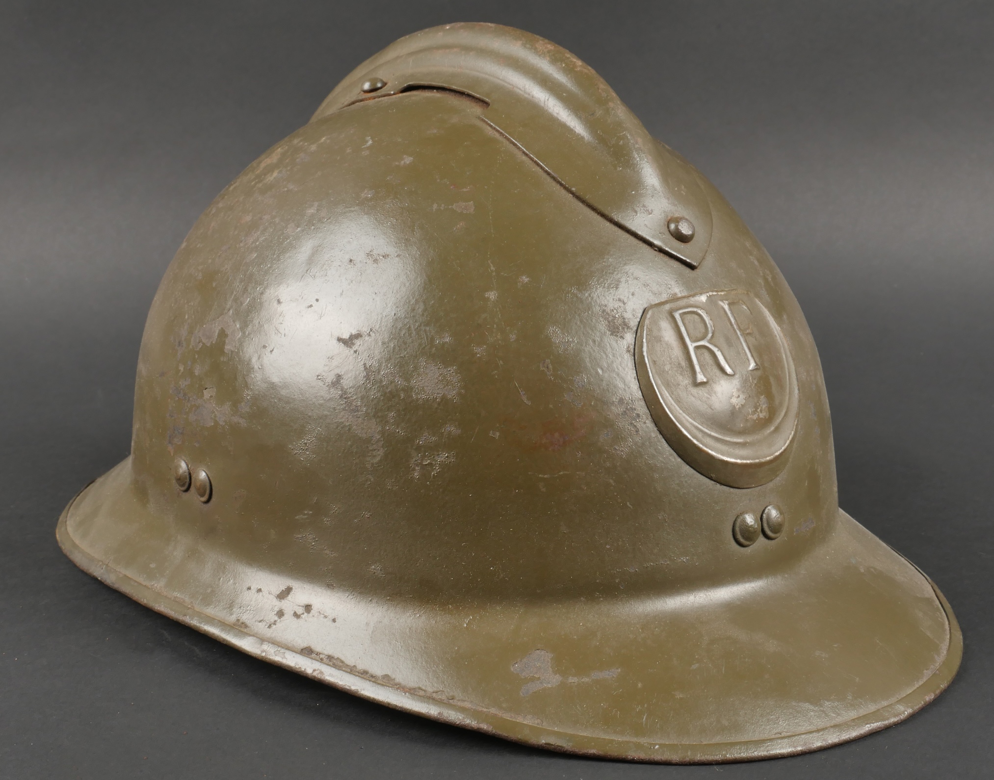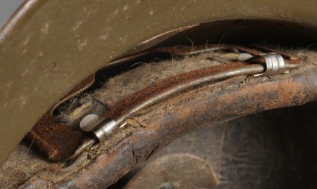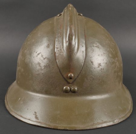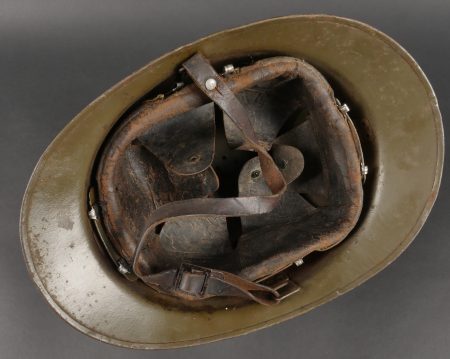Casque Adrian 1926 troupes d’Afrique. Modèle 1926, peinture kaki à 80%, attribut modèle 1937 des troupes d’Afrique. Coiffe en cuir retenue par huit agrafes en aluminium dont trois... en savoir plus