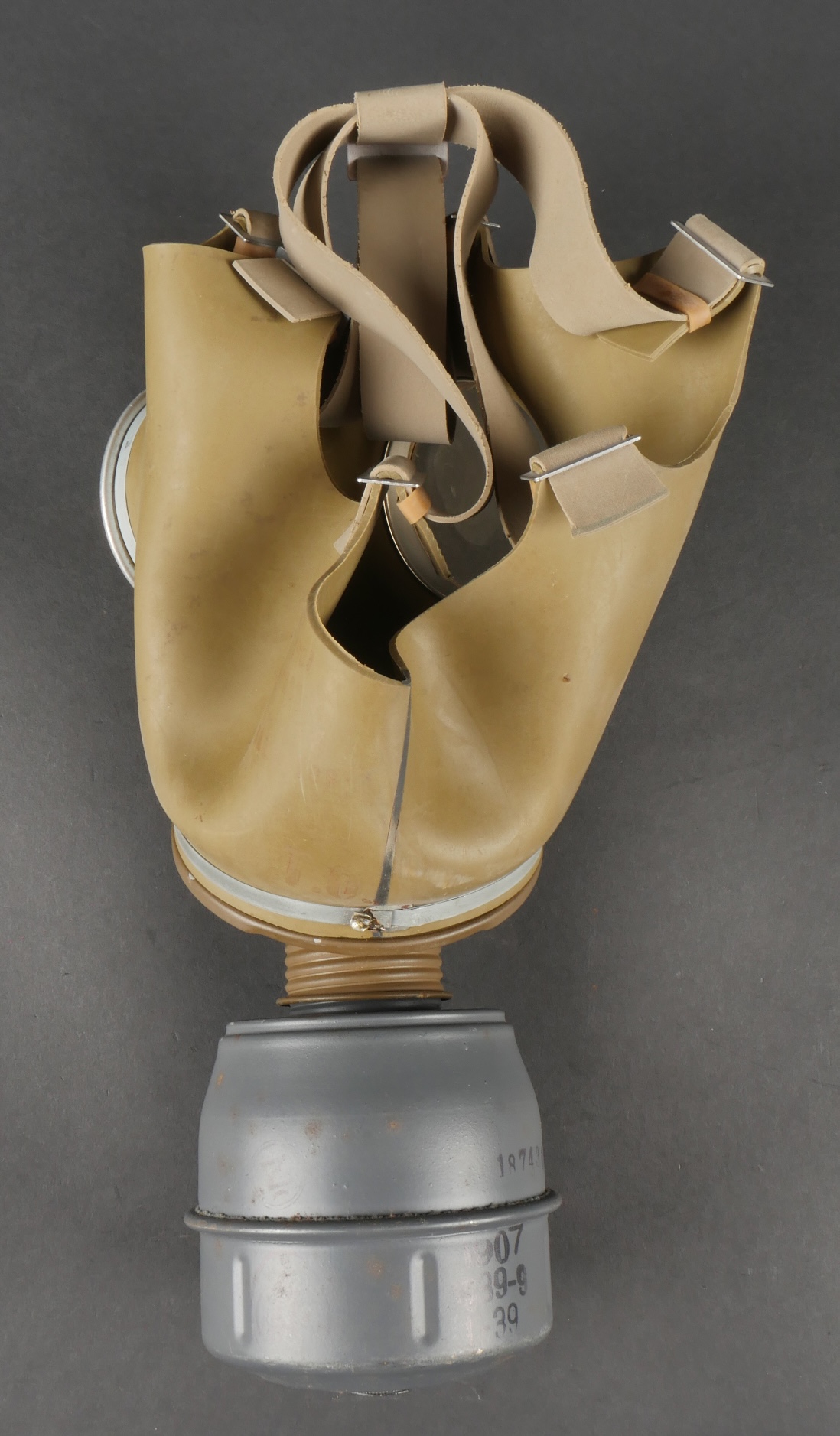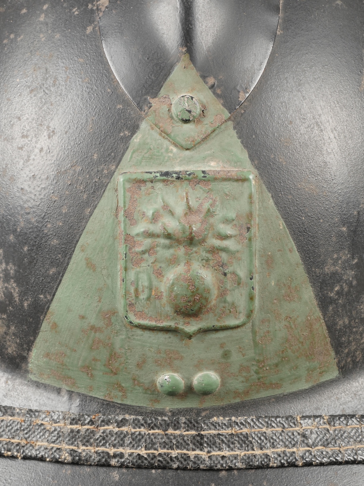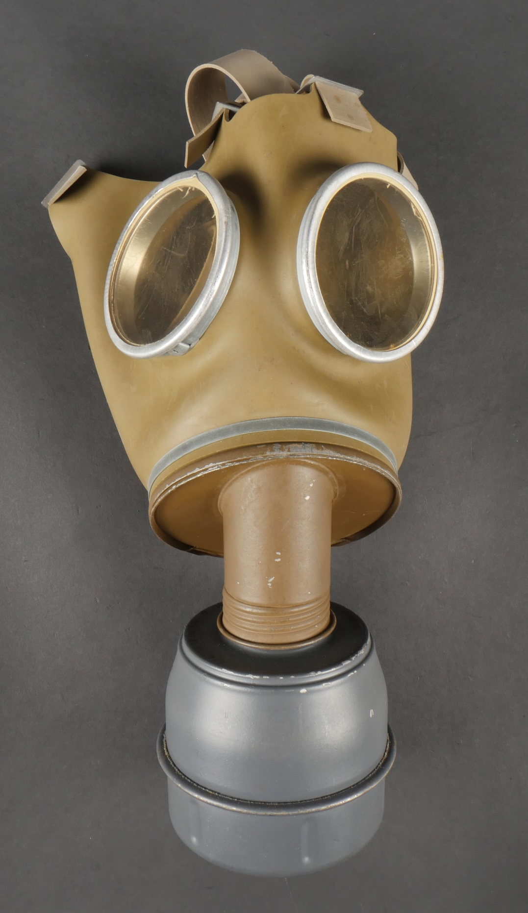 Casque chef d’ilot Défense Passive. Casque Adrian modèle 1926, attribut de la Défense Passive recouvert d’un triangle vert, coiffe en toile cirée typique des fabrications d’armistice ainsi que la jugulaire dans le même matériau. Sur la nuquière on trouve l’inscription au crayon de papier JFP 39, casque entièrement reconditionné en peinture noire. On y joint son masque antigaz défense passive portant sous le couvercle la même mention au crayon JFP39, une bosse sur un côté. Au fond du boitier se trouve le certificat de garantie des établissements Letrange, sangle en toile présente, masque en très bon état avec cartouche datée 1939. Cette pièce provient de Saint DiéPetite Raon dans les Vosges où s’est déroulée l’opération Loyton conduite par le 2nd SAS de miaout a début octobre 1944 avec pour objectif l’ouverture des petits cols en avant de la 3eme armée US Patton. 100 parachutistes SAS, SOE, Jedburgh, 6 jeeps, 1000 maquisards GMA et 1RCV y participèrent. Le grandpère du vendeur, FFI Eaux et Forets puis GMA Vosges, participa à cette opération qui fût a la seconde plus grande opération SAS en France occupée, après SAMWEST en juin 1944 en Bretagne. Il sera pris par les allemands fin septembre et déporté a Dachau ou il mourra en avril 1945. Au décès de sa grandmère, le vendeur récupéra des objets caches ou abandonnes dans la ferme familiale et les maisons du voisinage, tous liés au maquis de la vallée. Ce n’est que bien plus tard qu’il eu connaissance des détails de l’Opération LOYTON. Passive Defence sector leader helmet. Model 1926 Adrian helmet with Passive Defence badge over a green triangle, oilcloth liner typical of armistice manufacture and matching chinstrap. Pencil inscription JFP 39 on the neck guard, helmet fully reconditioned in black paint. Includes its Passive Defence gas mask with the same JFP39 pencil note inside the lid and a dent on one side. At the bottom of the can is the warranty certificate of the Letrange works, web strap present, mask in very good condition with cartridge dated 1939. This piece comes from Saint Dié Petite Raon in the Vosges where Operation Loyton by 2nd SAS took place from mid August to early October 1944 with the objective of opening small passes ahead of the US Third Army Patton. One hundred SAS SOE Jedburgh six jeeps one thousand GMA maquisards and 1 RCV took part. The seller’s grandfather FFI Eaux et Forêts then GMA Vosges took part in this operation which was the second largest SAS operation in occupied France after SAMWEST in June 1944 in Brittany. He was captured by the Germans in late September and deported to Dachau where he died in April 1945. On his grandmother’s death the seller recovered hidden or left items in the family farm and neighboring houses all linked to the valley Maquis and only later learned details of Operation Loyton.