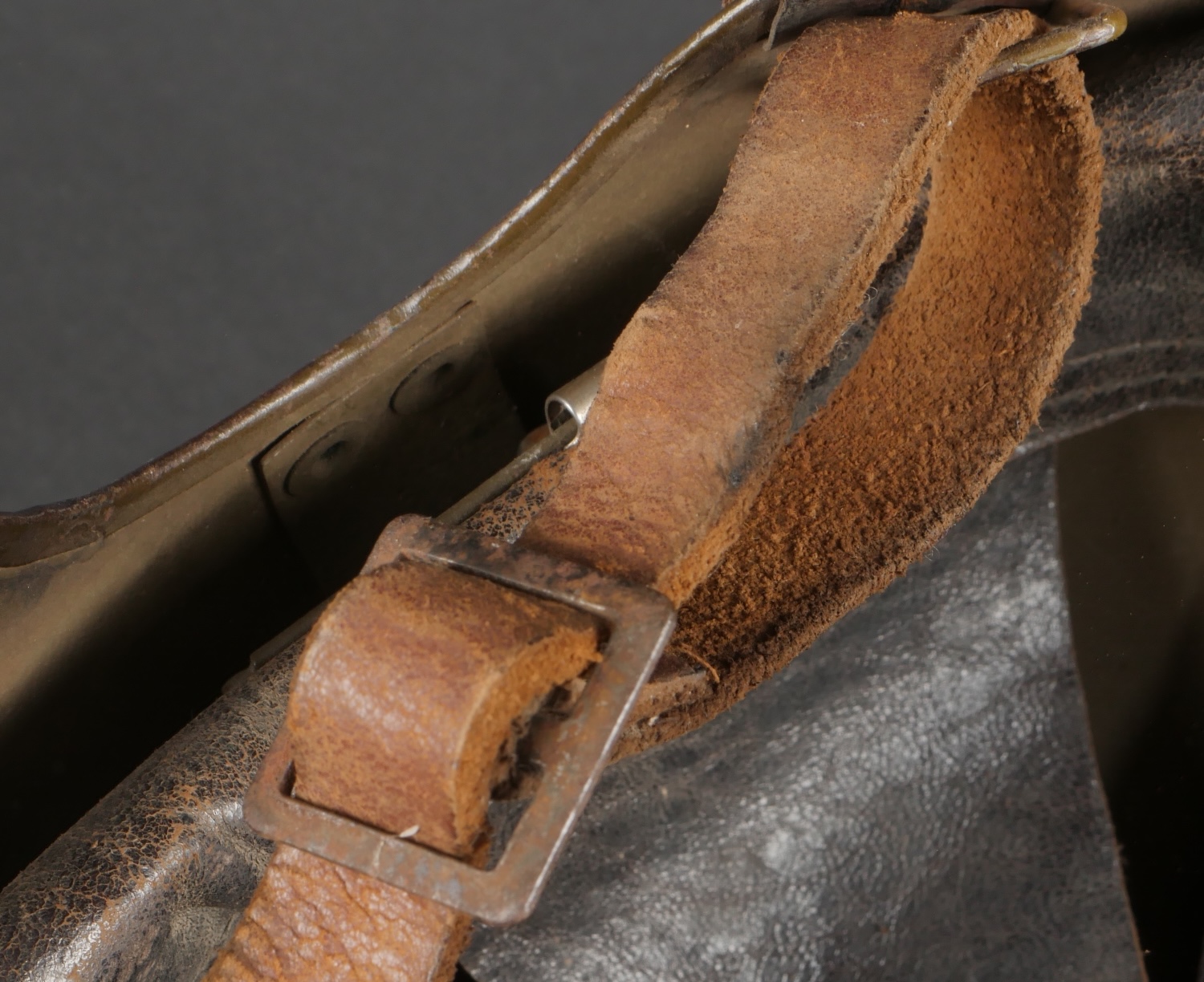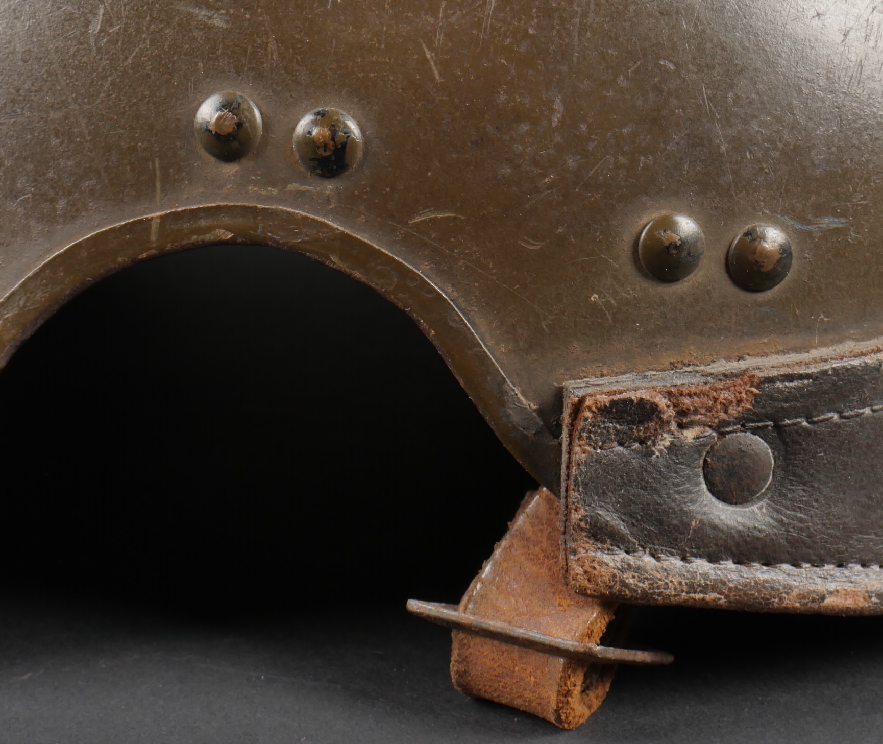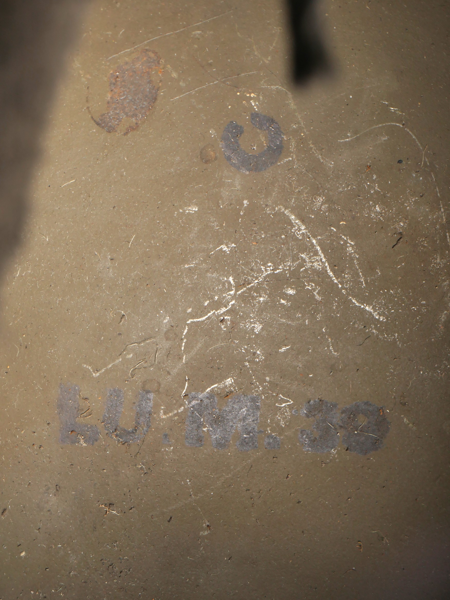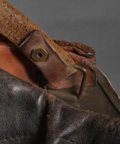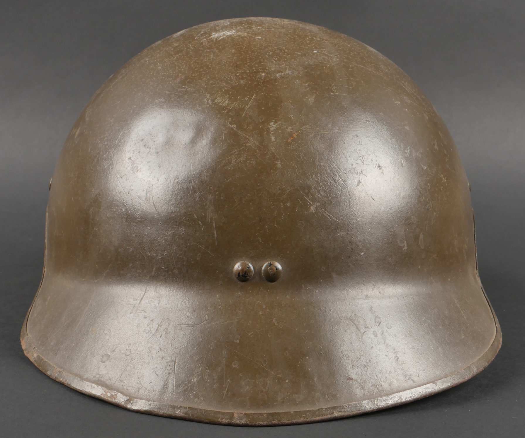 Casque DCA 1936. Casque de la défense anti aérienne en peinture kaki à 90%, attribut modèle 1915 d’artillerie. Coiffe intérieure en cuir spécifique au modèle DCA, six agrafes dont une... en savoir plus
