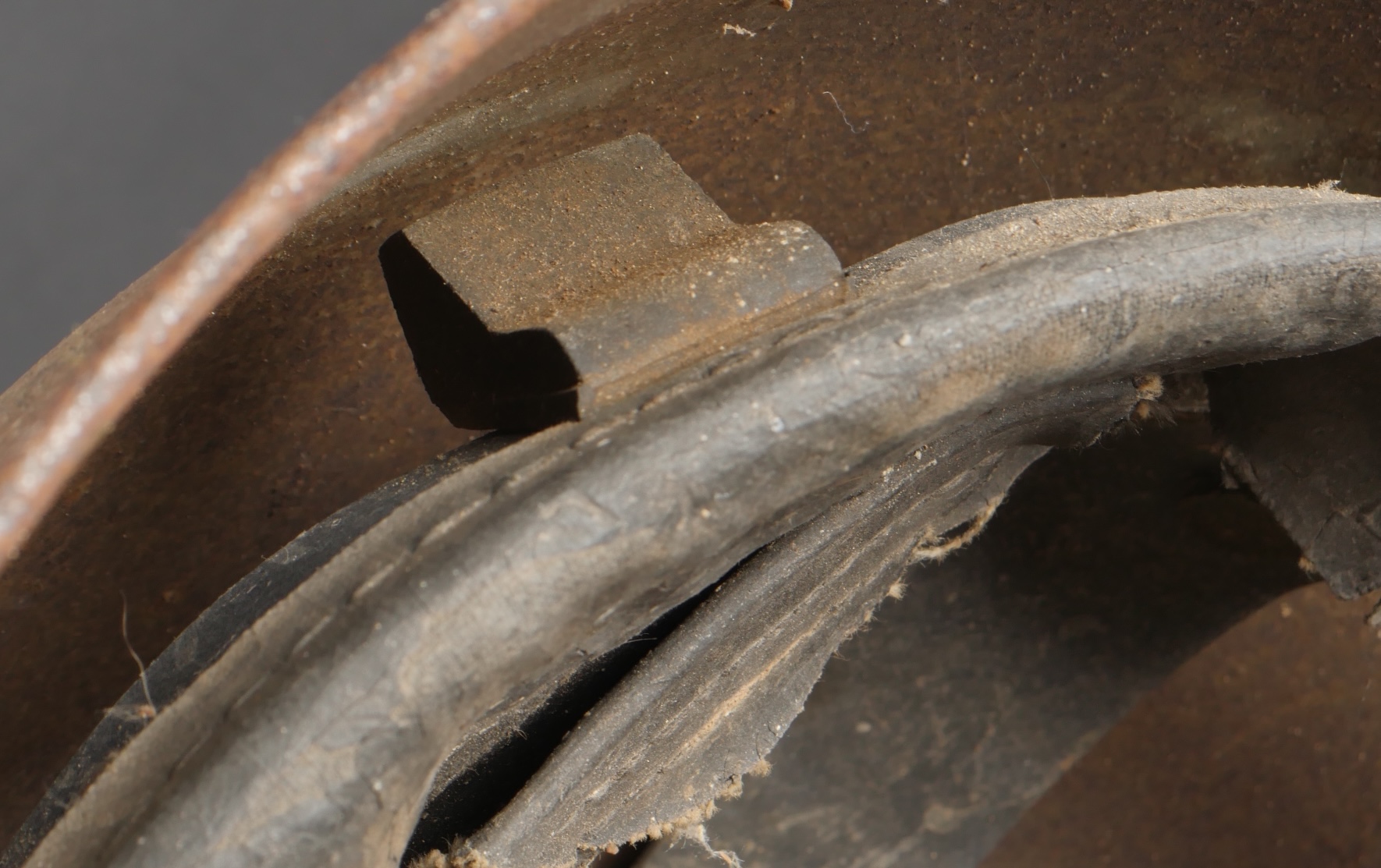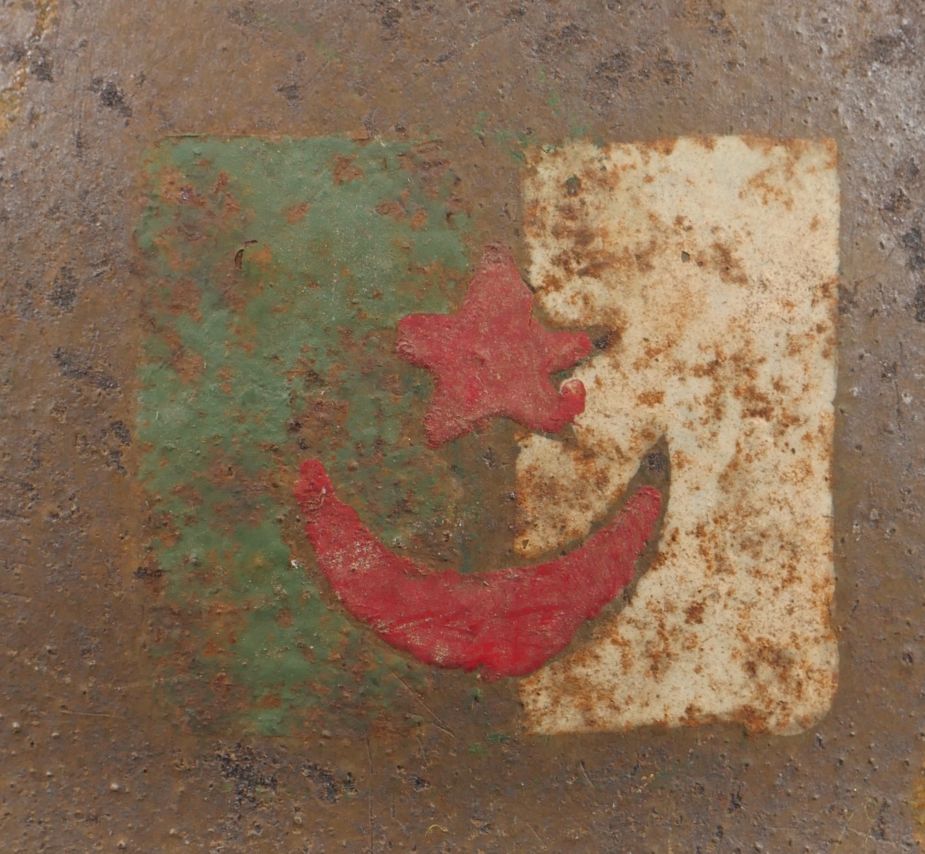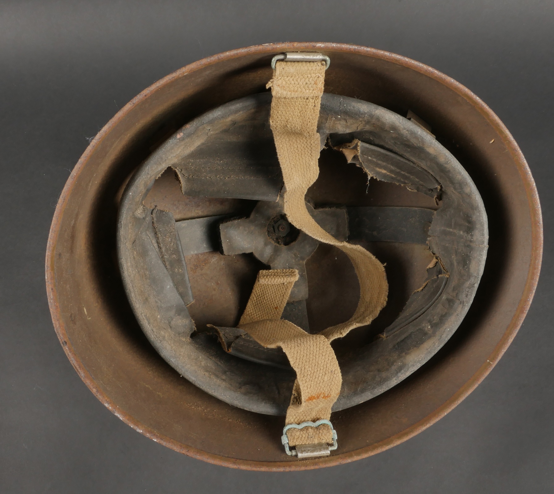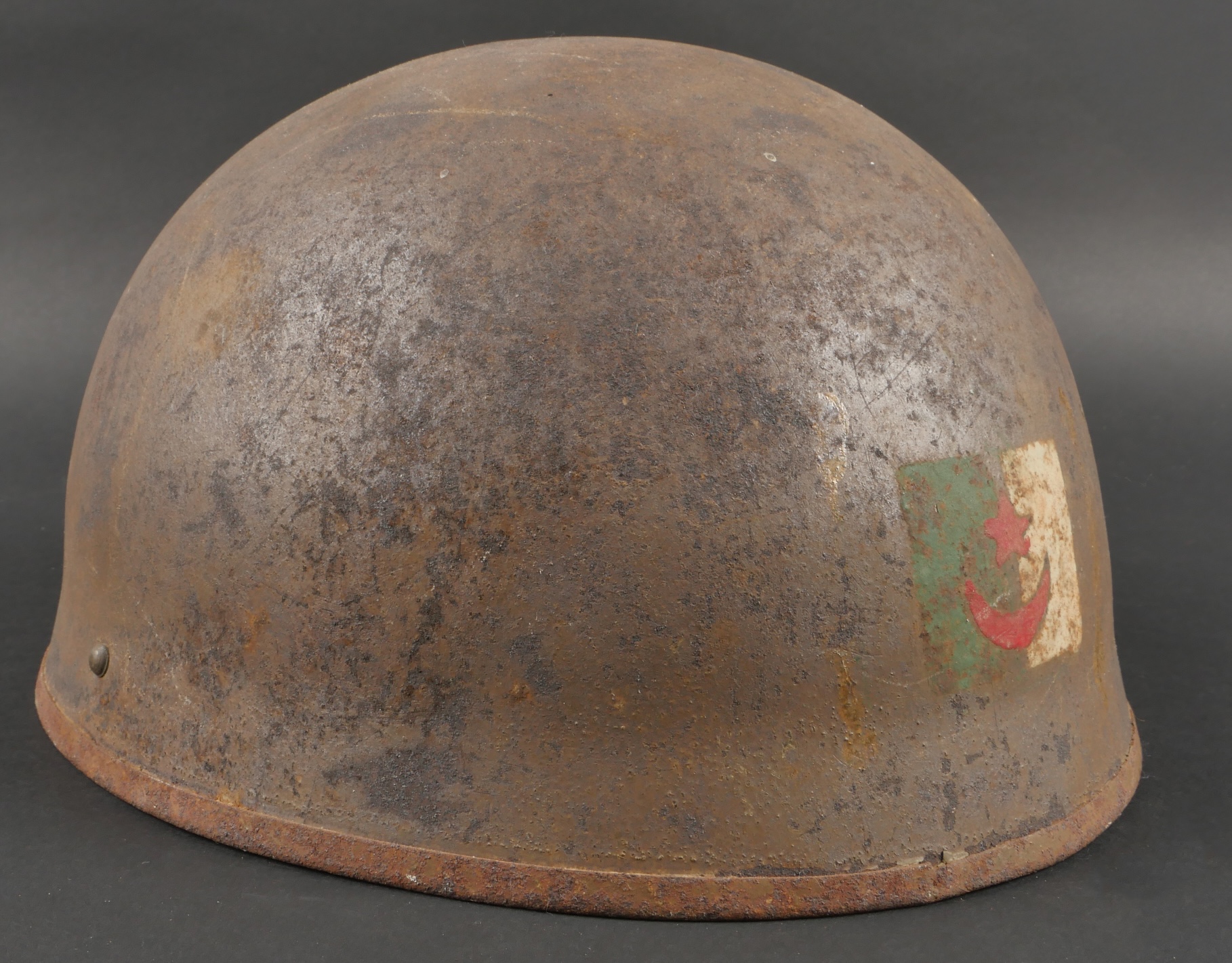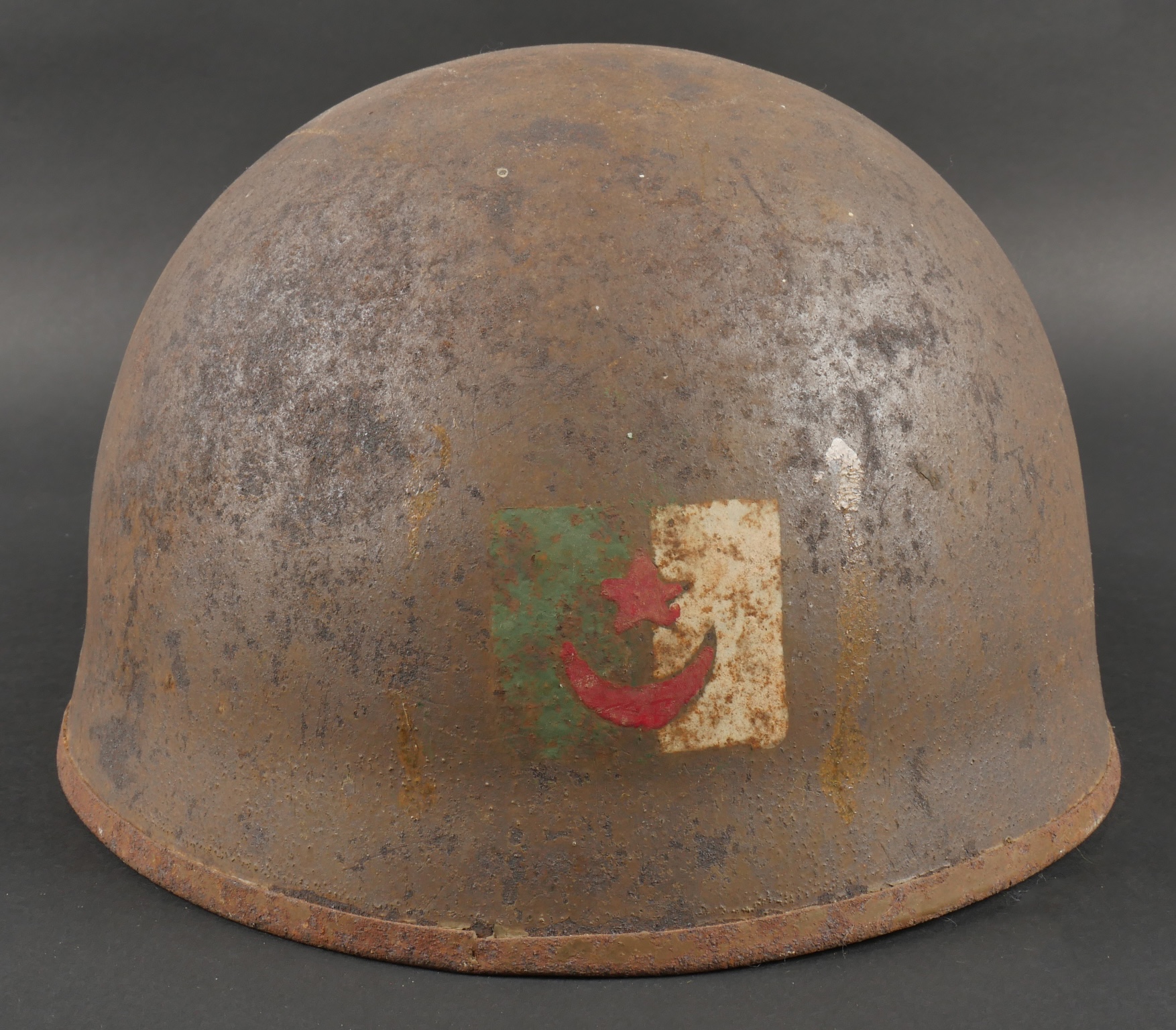 Casque tankiste anglais réutilisé FLN. Casque de tankiste britannique en peinture d’origine d’usine, coiffe en toile cirée de fabrication BMB 1944, jugulaire en toile présente. A... en savoir plus