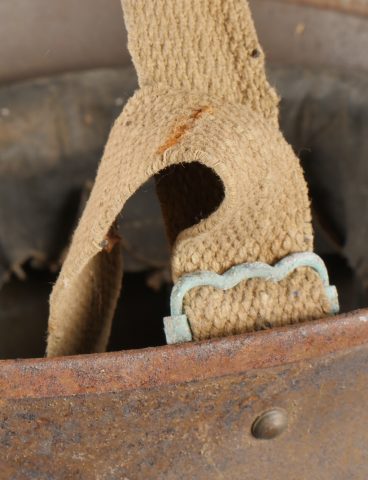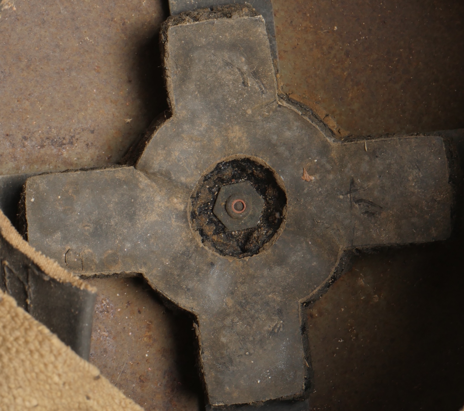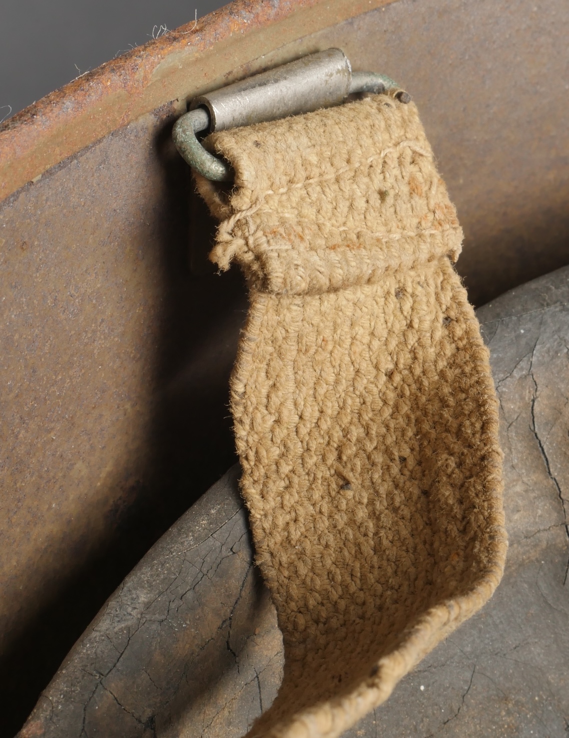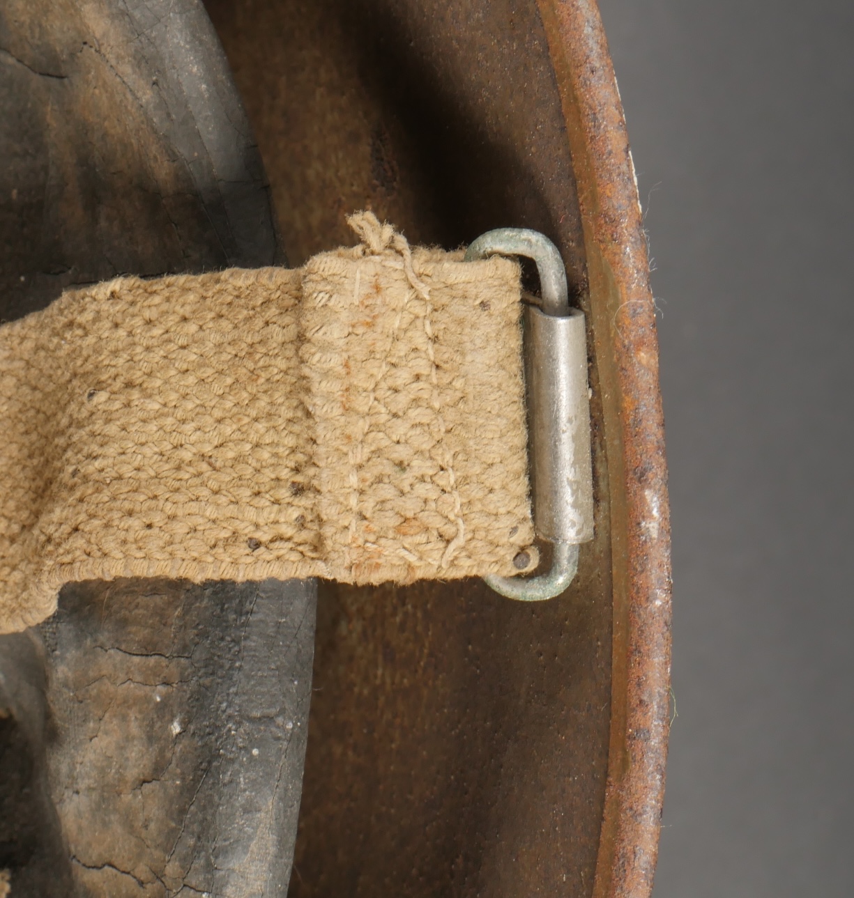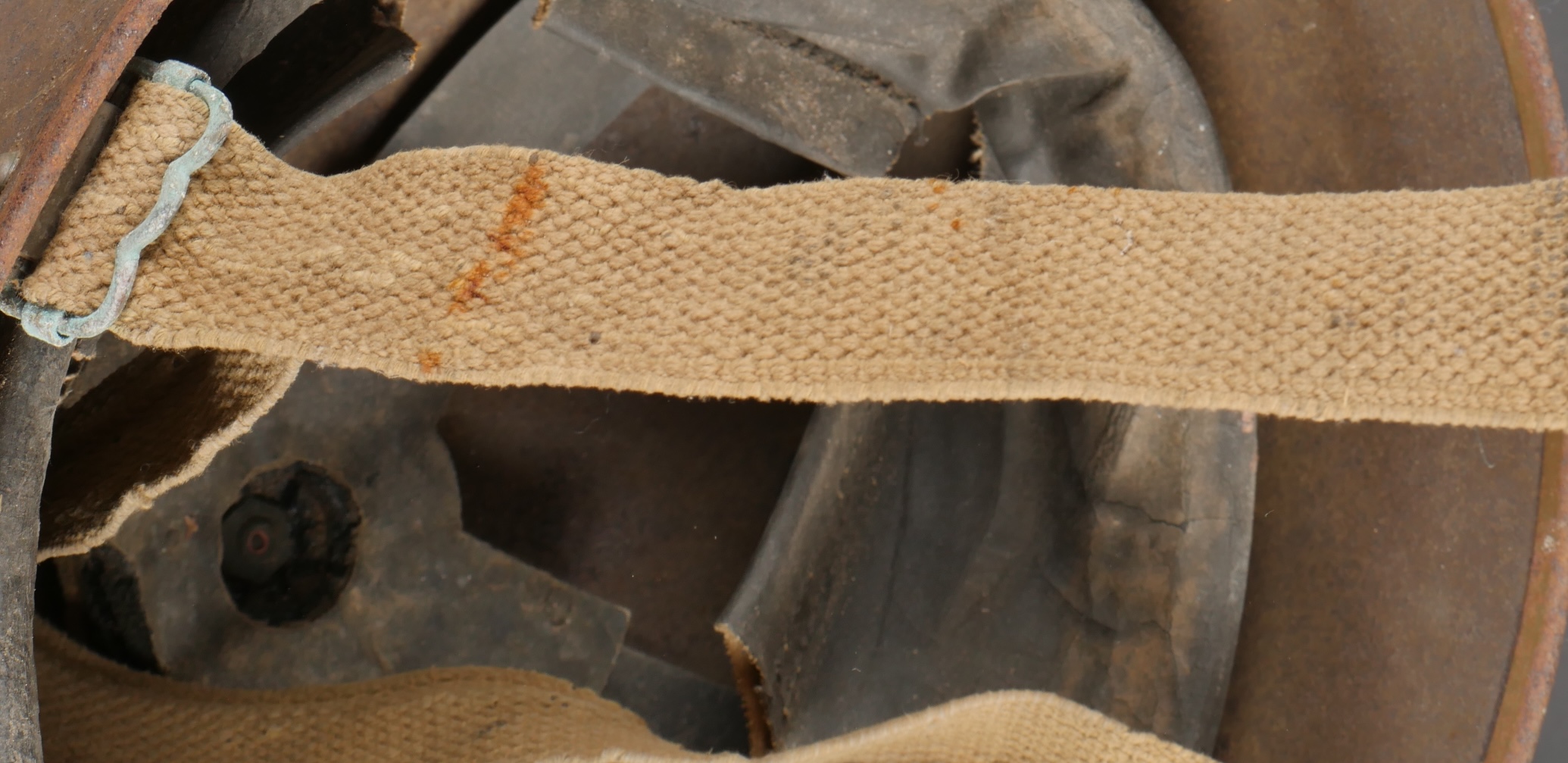 Casque tankiste anglais réutilisé FLN. Casque de tankiste britannique en peinture d’origine d’usine, coiffe en toile cirée de fabrication BMB 1944, jugulaire en toile présente. A... en savoir plus