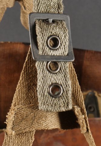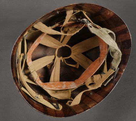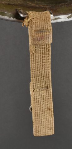Sous casque Américain standard M1 de fabrication Firestone, modifié par l’Armée Française par l’ajout de sangles en V , en coton kaki, rivetées. La mentonnière est du type TAP... en savoir plus