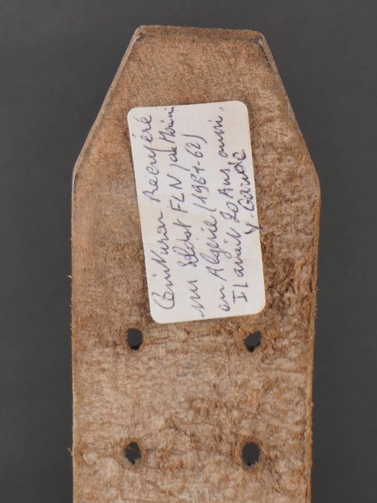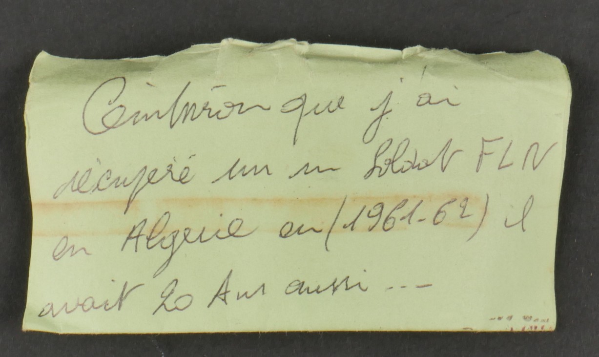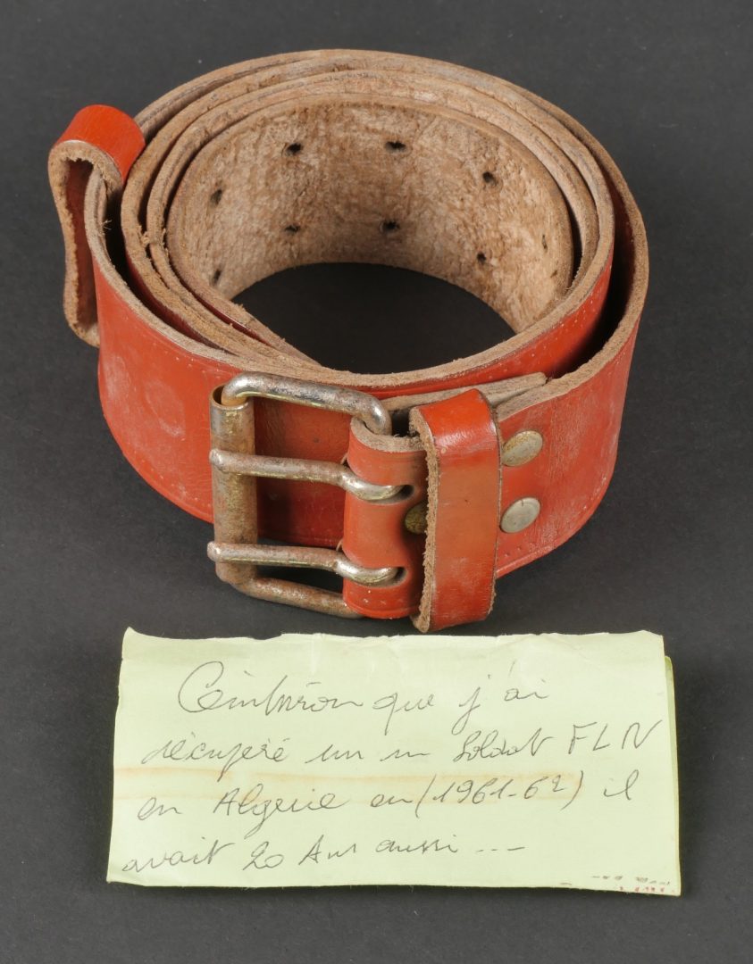 Ceinturon FLN. Ceinture en cuir copiée sur le modèle 1945 français portant une petite étiquette indiquant Ceinturon récupéré sur un soldat FLN par moimême en Algérie 196162, il avait... en savoir plus
