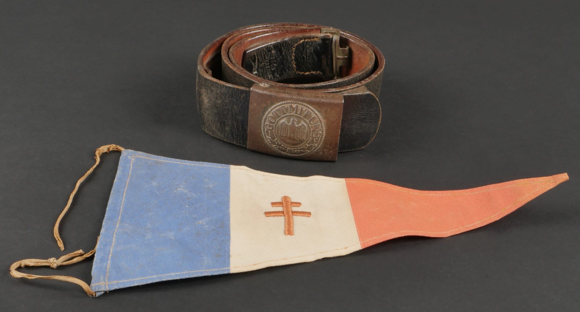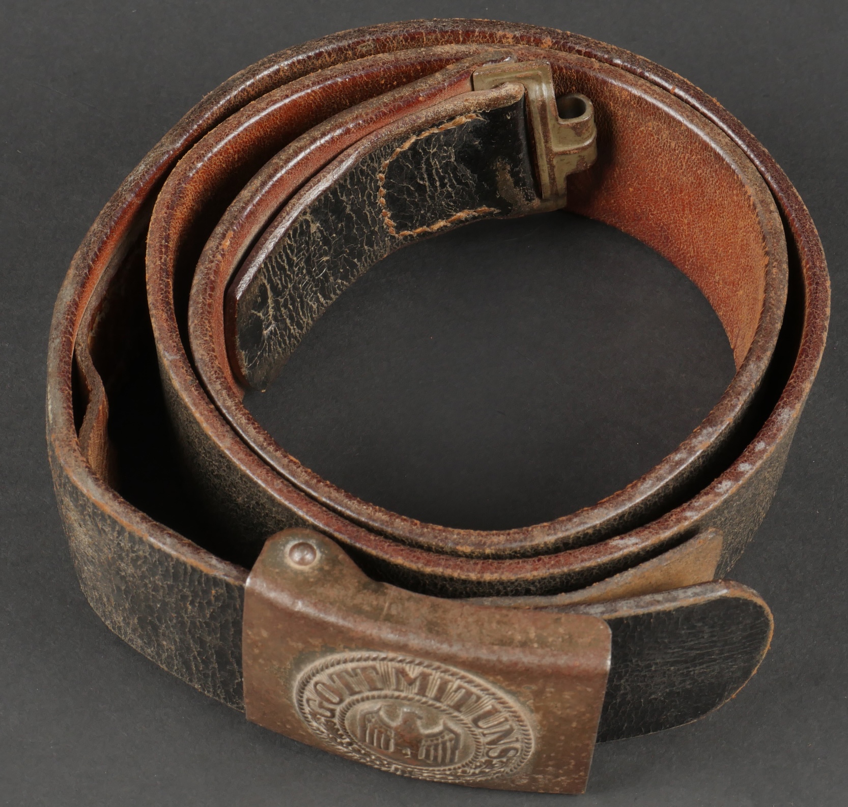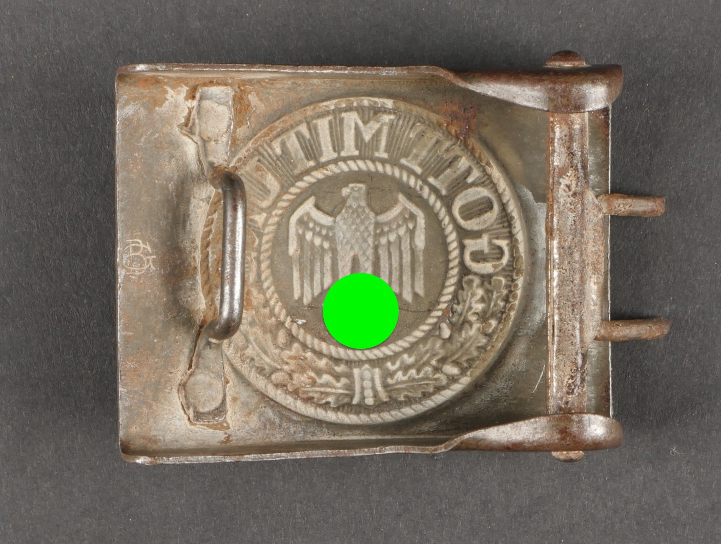 Ceinturon de guerre. Ceinturon allemand pour la Heer, boucle en fer avec sa patelette, croix gammée meulée, marquage fabricant BG 41. Ceinturon en cuir souple taille 100, crochet en fer, daté... en savoir plus