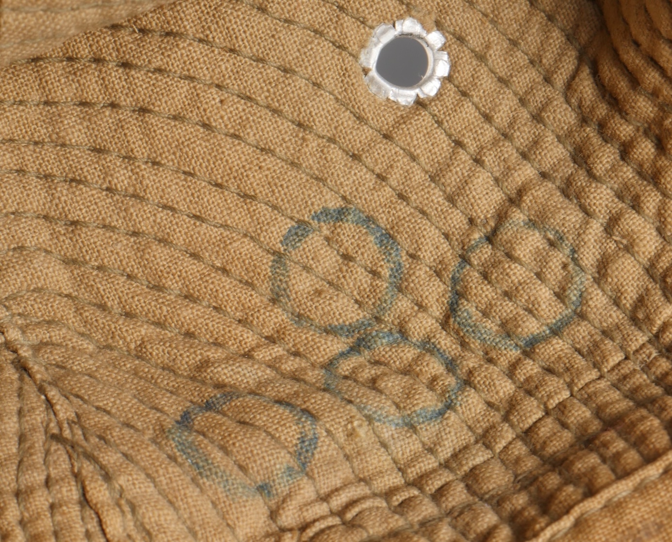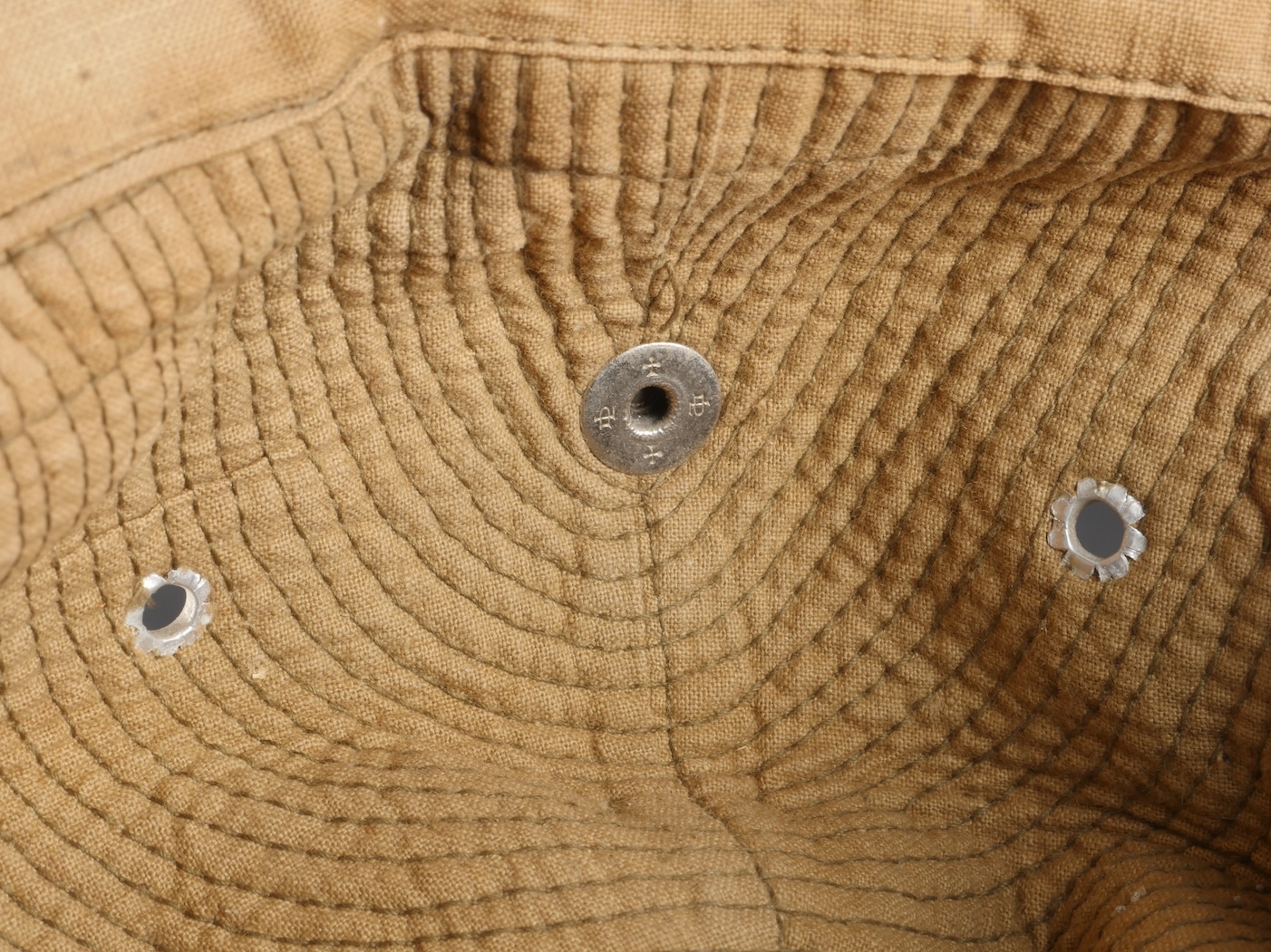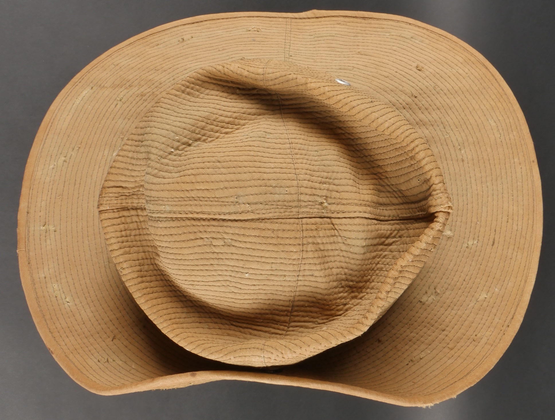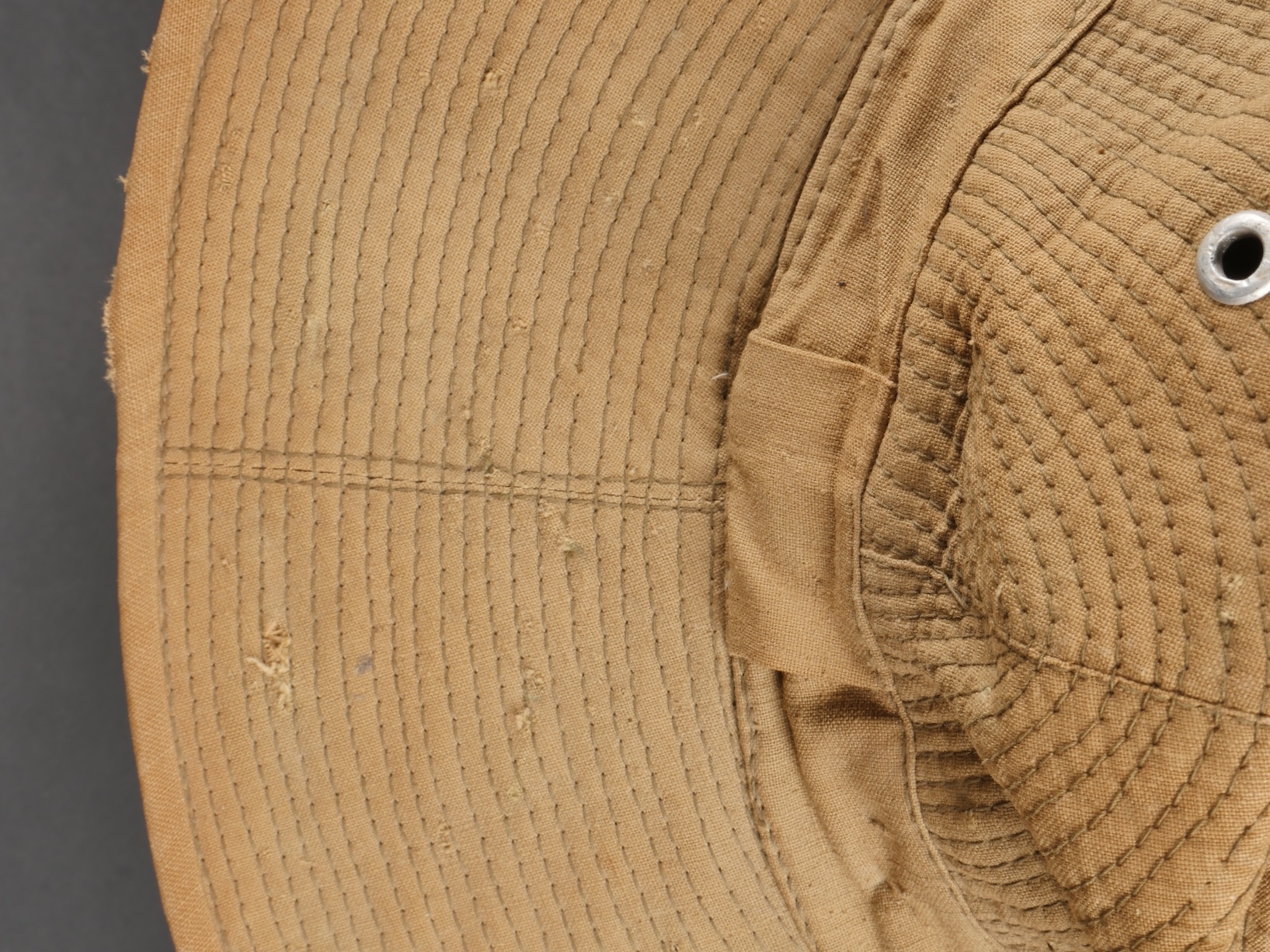 Chapeau de Brousse réglementaire modèle 1949, de confection Extrême Orient. Pour une fois ce chapeau, porte un marquage de fabricant Indochinois COMPTOIR DO MINH , taille 57. La grosse pression... en savoir plus
