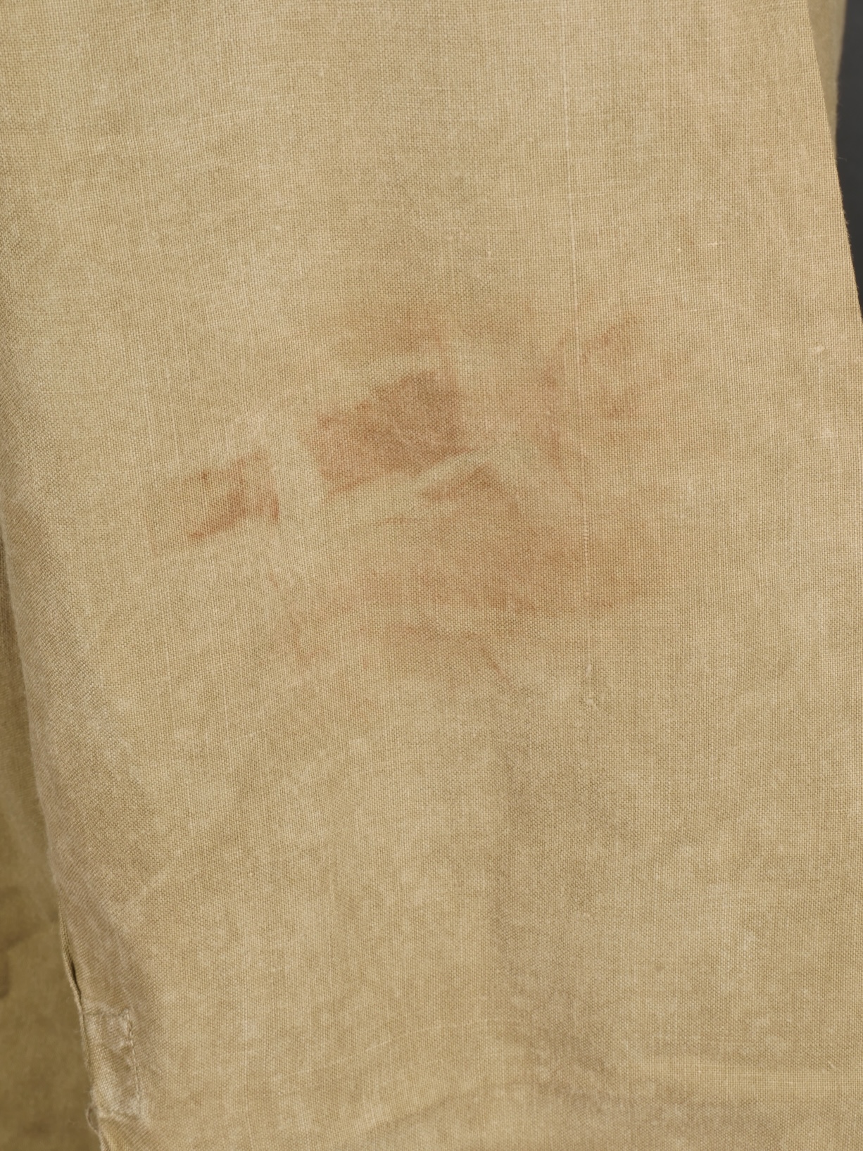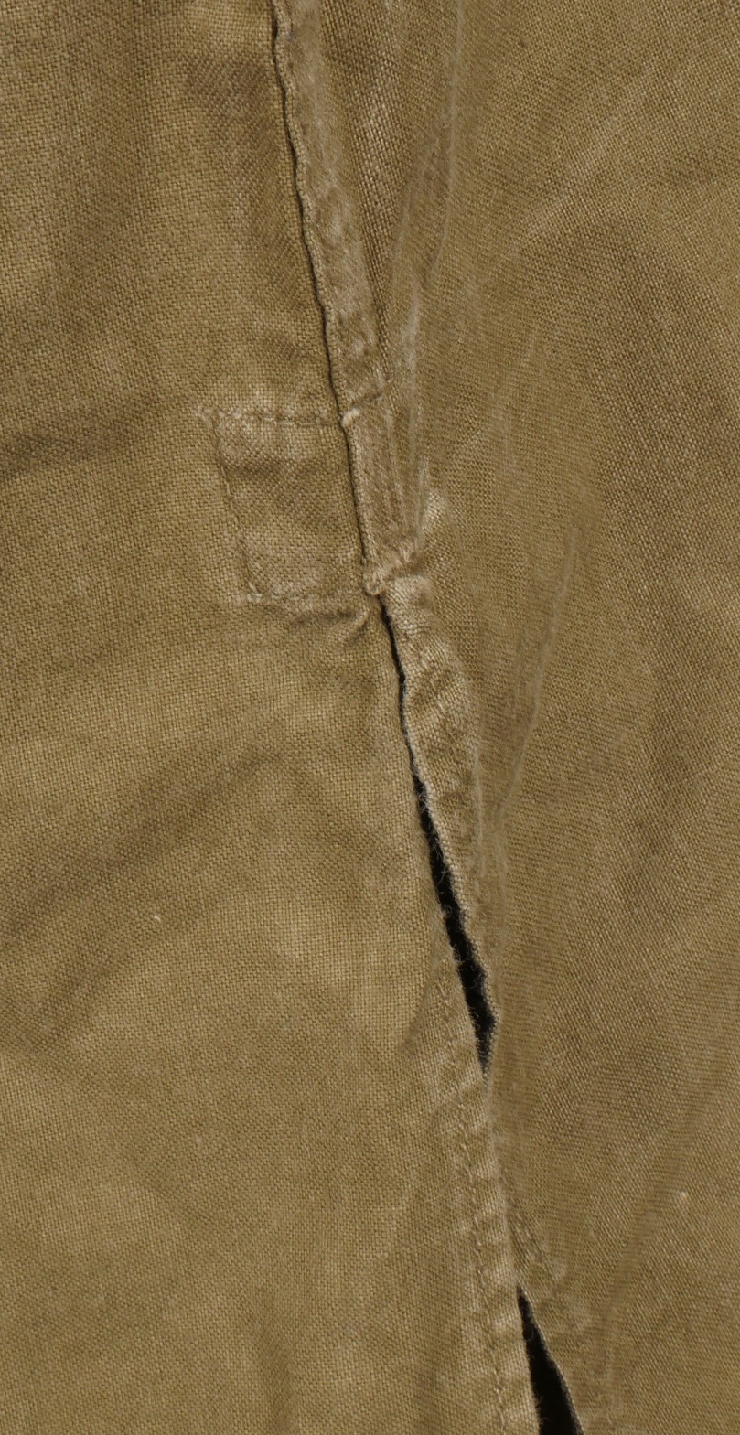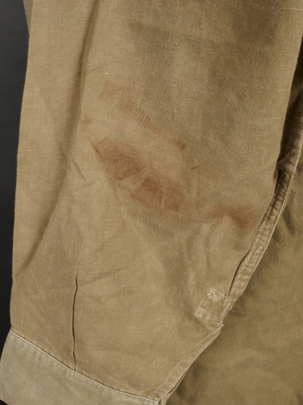 Chemise 1935. Modèle réglementaire en tissu kaki se fermant par trois boutons, boutons à l’arrière du col présents. Carré de drap sur la poitrine cousu d’origine. Bonne taille mannequin et bon état général. Shirt 1935. Regulation model in khaki fabric closing with three buttons, rear collar buttons present. Original stitched cloth patch on the chest. Good mannequin size and overall good condition.
