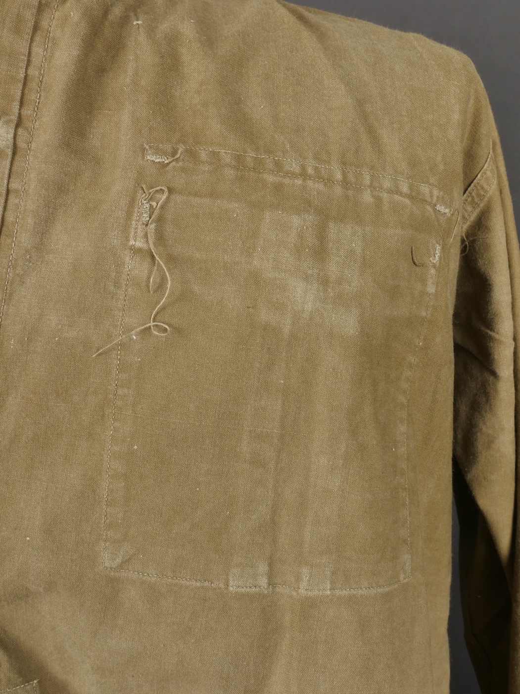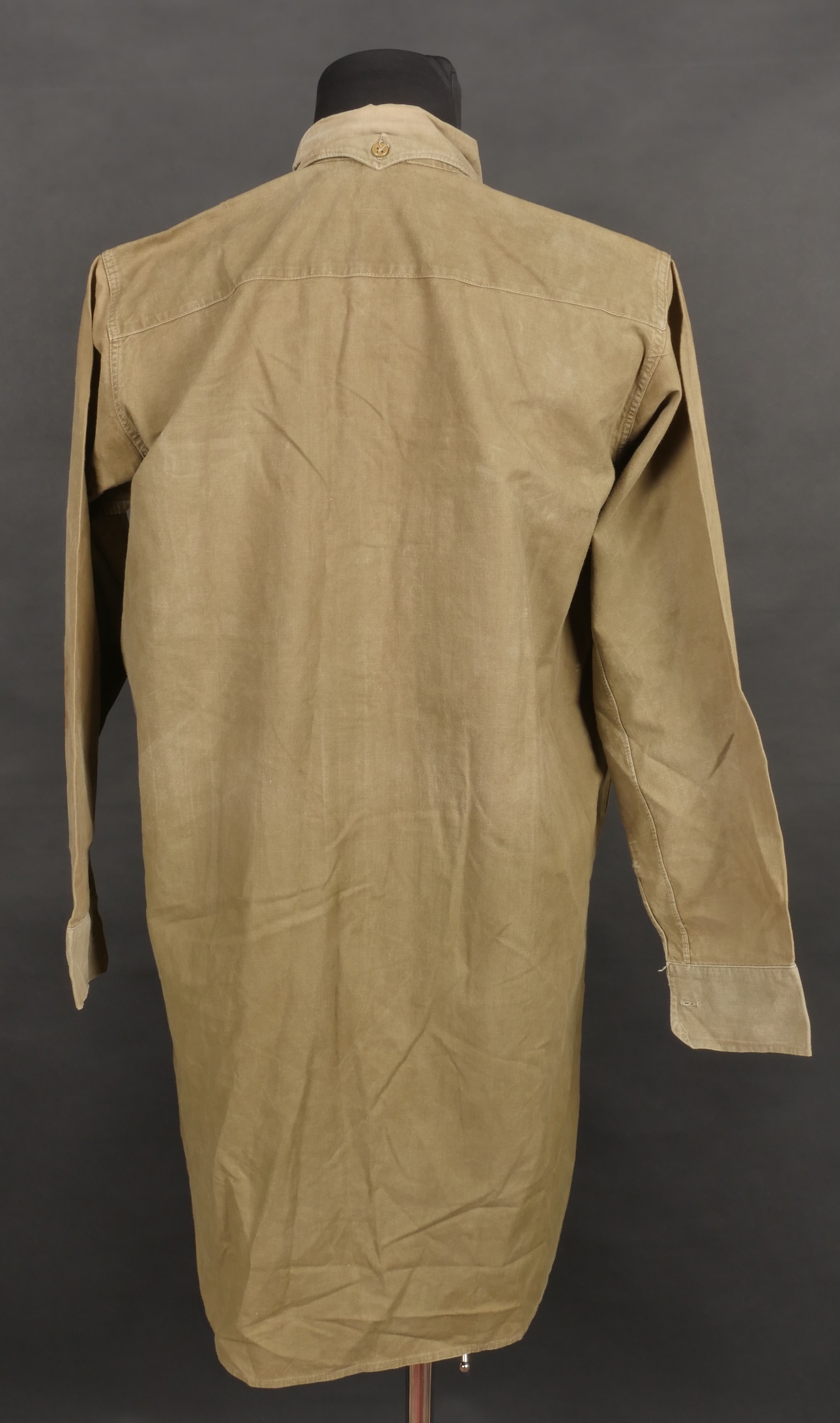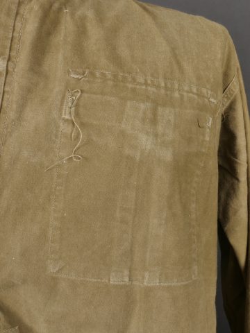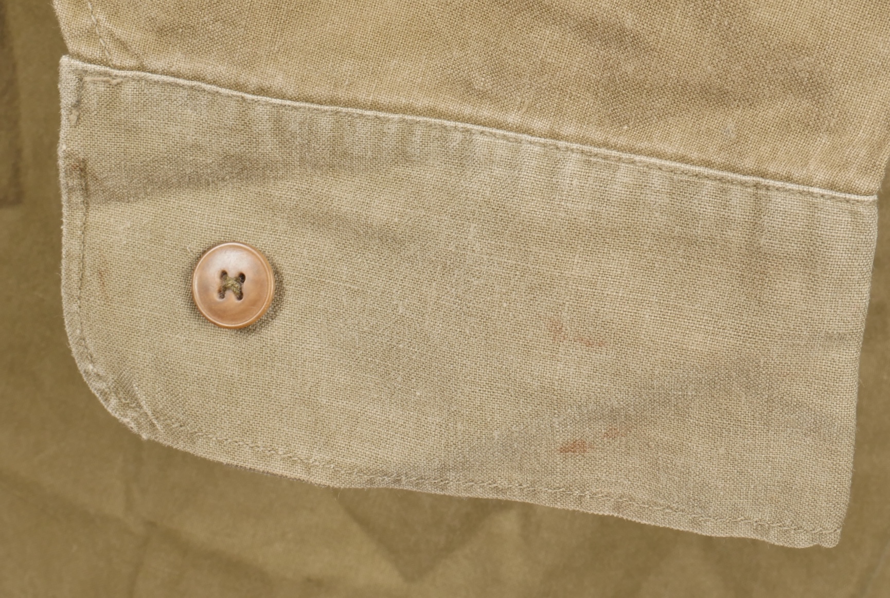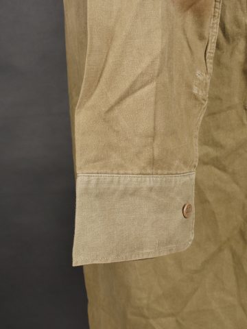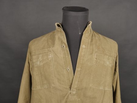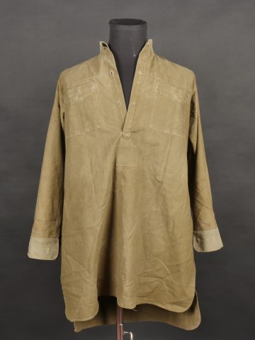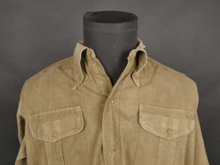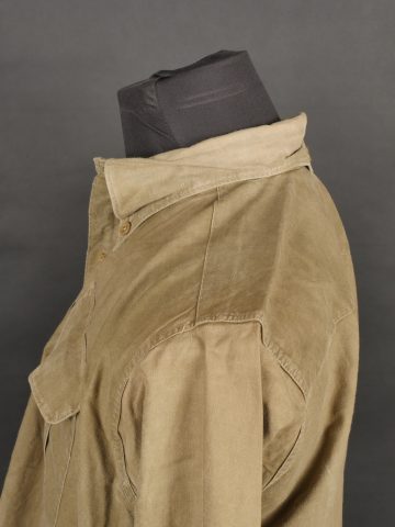Chemise 1935. Modèle réglementaire en tissu kaki se fermant par trois boutons, boutons à l’arrière du col présents. Carré de drap sur la poitrine cousu d’origine. Bonne taille... en savoir plus